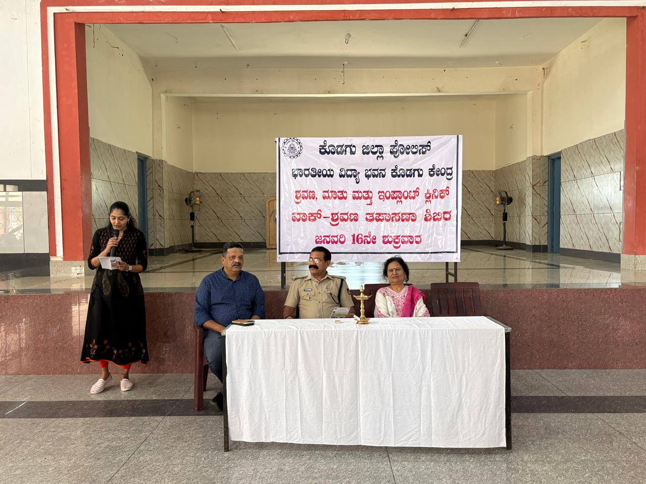ಮಡಿಕೇರಿ ಜ.17 NEWS DESK : ಭಾರತೀಯ ವಿದ್ಯಾ ಭವನ ಕೊಡಗು ಕೇಂದ್ರದ ವತಿಯಿಂದ ಕೊಡಗು ಜಿಲ್ಲಾ ಪೊಲೀಸ್ ಸಿಬ್ಬಂದಿಗಾಗಿ ಉಚಿತ ಶ್ರವಣ ಶಿಬಿರ ನಡೆಯಿತು. ಶಿಬಿರವನ್ನು ಮಡಿಕೇರಿಯ ಮೈತ್ರಿ ಸಭಾಂಗಣದಲ್ಲಿ ಹೆಚ್ಚುವರಿ ಪೊಲೀಸ್ ವರಿಷ್ಟಾಧಿಕಾರಿ ದಿನೇಶ್ ಬಿ ಉದ್ಘಾಟಿಸಿದರು. ಈ ಕಾರ್ಯಕ್ರಮವನ್ನು ಮೈಸೂರುವಿನಲ್ಲಿರುವ ಕೇಳುವಿಕೆ, ಮಾತು ಮತ್ತು ಇಂಪ್ಲಾಂಟ್ ಕ್ಲಿನಿಕ್ ಸಹಯೋಗದಲ್ಲಿ ಆಯೋಜಿಸಲಾಗಿತ್ತು. ಕೇಳುವಿಕೆ ಸಮಸ್ಯೆಗಳ ಕ್ಷೇತ್ರದಲ್ಲಿ ಖ್ಯಾತಿ ಪಡೆದ ತಜ್ಞರಾದ ಡಾ.ರಾಧಾ ಸಿಂಹಾದ್ರಿ ಶಿಬಿರದ ನೇತೃತ್ವ ವಹಿಸಿದ್ದರು. ಭಾರತೀಯ ವಿದ್ಯಾ ಭವನದ ಕೊಡಗು ಘಟಕದ ಕಾರ್ಯದರ್ಶಿ ಬಾಲಾಜಿ ಕಾಶ್ಯಪ್ ಉಪಸ್ಥಿತರಿದ್ದರು. ಪೊಲೀಸ್ ಸಿಬ್ಬಂದಿ ಅಧಿಕ ಸಂಖ್ಯೆಯಲ್ಲಿ ಶಿಬಿರದ ಪ್ರಯೋಜನ ಪಡೆದರು.