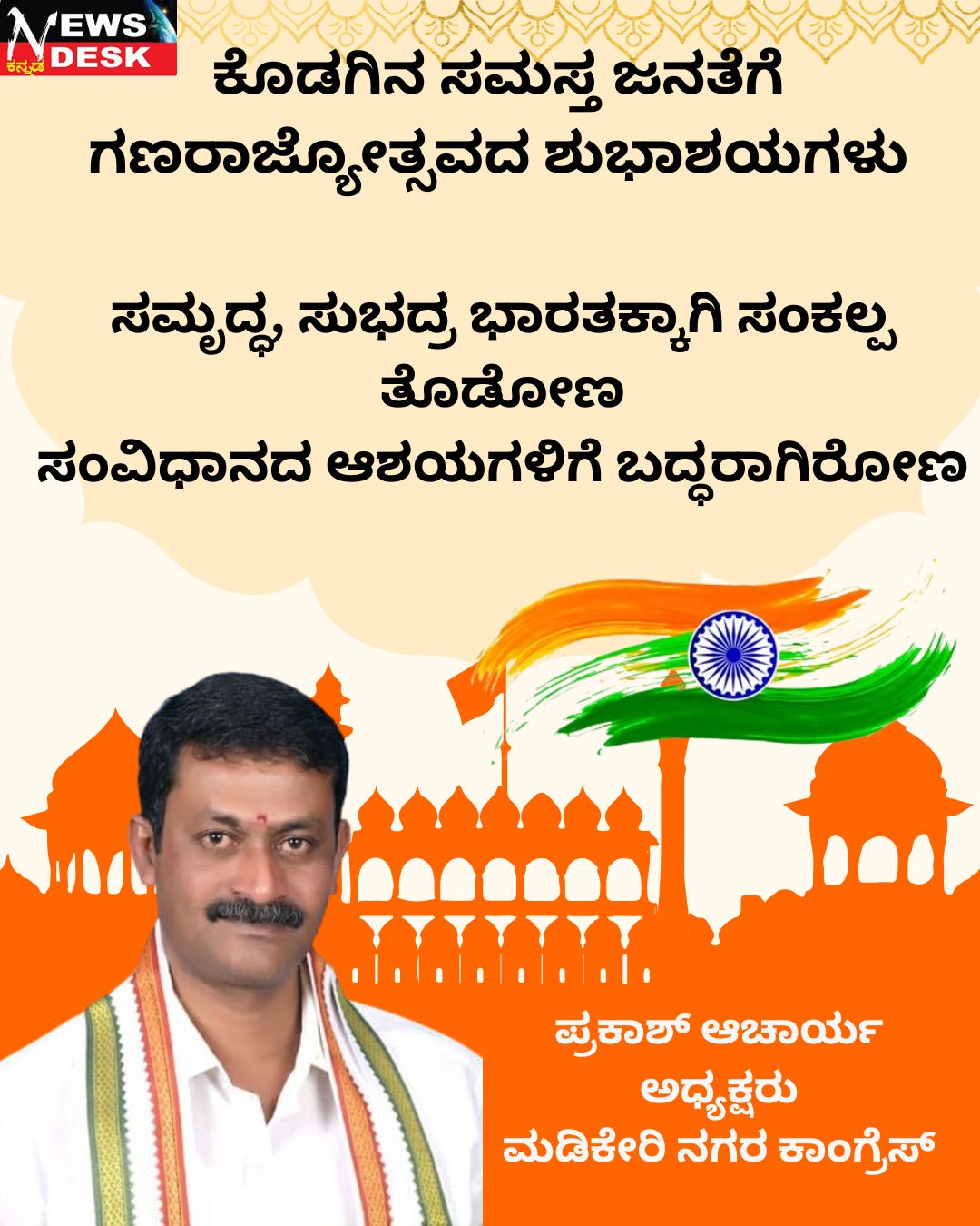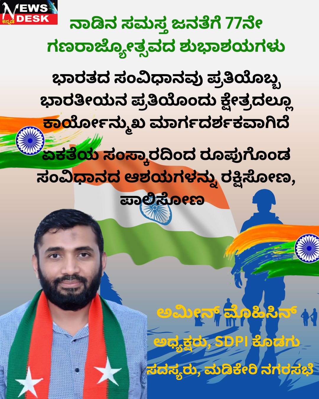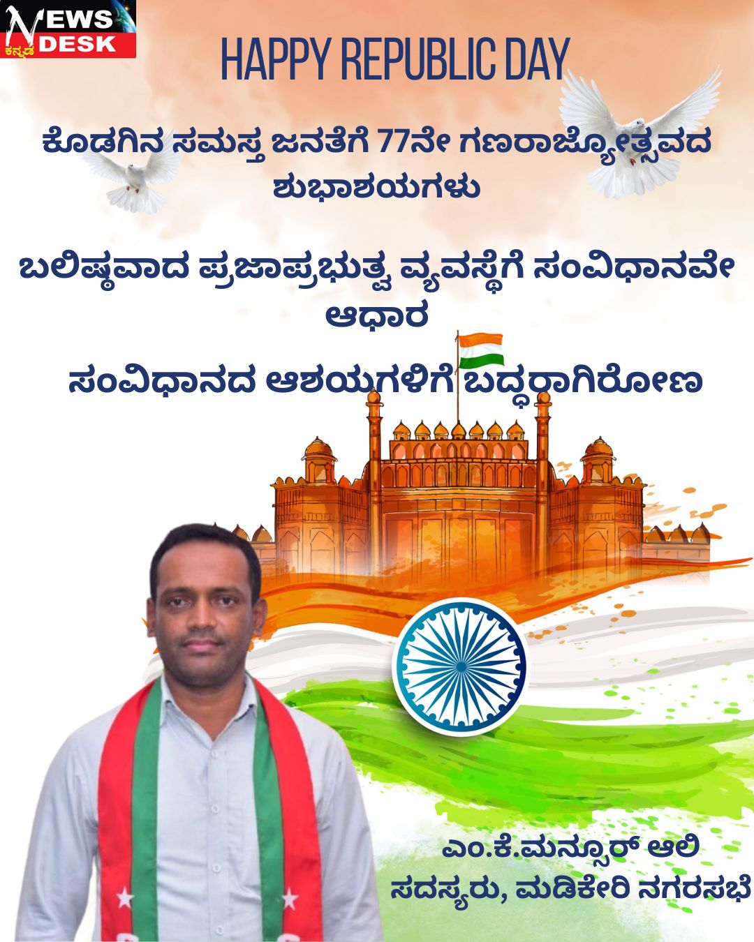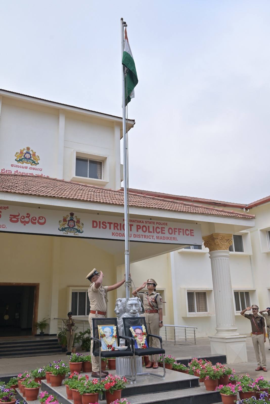 ಮಡಿಕೇರಿ ಜ.26 NEWS DESK : ಕೊಡಗು ಜಿಲ್ಲಾ ಪೊಲೀಸ್ ಕಚೇರಿ ಆವರಣದಲ್ಲಿ 77ನೇ ಗಣರಾಜ್ಯೋತ್ಸವವನ್ನು ಅರ್ಥಪೂರ್ಣವಾಗಿ ಆಚರಿಸಲಾಯಿತು. ಜಿಲ್ಲಾ ಪೊಲೀಸ್ ವರಿಷ್ಠಾಧಿಕಾರಿ ಆರ್.ಎನ್.ಬಿಂದುಮಣಿ ಧ್ವಜಾರೋಹಣ ನೆರವೇರಿಸಿದರು. ಈ ಸಂದರ್ಭ ಪೊಲೀಸ್ ಅಧಿಕಾರಿ ಸಿಬ್ಬಂದಿಗಳು, ಕಚೇರಿಯ ಲಿಪಿಕ ಸಿಬ್ಬಂದಿ ವರ್ಗದವರು ಭಾಗವಹಿಸಿದ್ದರು.