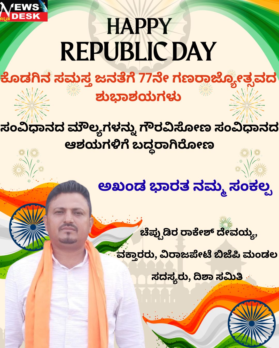 ವಿರಾಜಪೇಟೆ ಜ.26 NEWS DESK : ಹೆಗ್ಗಳ ಗ್ರಾಮದಲ್ಲಿರುವ ಸರ್ಕಾರಿ ಕಿರಿಯ ಪ್ರಾಥಮಿಕ ಶಾಲೆಯಲ್ಲಿ ಗಣರಾಜ್ಯೋತ್ಸವವನ್ನು ಸಂಭ್ರಮದಿಂದ ಆಚರಿಸಲಾಯಿತು. ಎಸ್ ಡಿ ಎಂ ಸಿ ಸದಸ್ಯ ಟಿ.ಆರ್.ವಿನೋದ್ ಧ್ವಜಾರೋಹಣ ನೆರವೇರಿಸಿದರು. ಈ ಸಂದರ್ಭ ಸಂವಿಧಾನದ ಪ್ರಸ್ತಾವನೆಯ ಪೂರ್ವ ಪೀಠಿಕೆಯ ಪ್ರತಿಜ್ಞೆಯನ್ನು ಸ್ವೀಕರಿಸಲಾಯಿತು. ವಿರಾಜಪೇಟೆಯ ಸಂತ ಅನ್ನಮ್ಮ ಪದವಿ ಕಾಲೇಜಿನ ಉಪನ್ಯಾಸಕರು ಹಾಗೂ ಎನ್ ಎಸ್ ಎಸ್ ಅಧಿಕಾರಿ ಬಿ.ಎನ್.ಶಾಂತಿಭೂಷಣ್ ಬೋರ್ಕರ್ ದಿನದ ಮಹತ್ವದ ಕುರಿತು ಮಾತನಾಡಿ, ಭಾರತವು ವಿಶ್ವದಲ್ಲಿಯೇ ಬೃಹತ್ ಪ್ರಜಾಪ್ರಭುತ್ವ ರಾಷ್ಟ್ರವಾಗಿದ್ದು, ಸಂವಿಧಾನವು ಅತ್ಯಂತ ಶ್ರೇಷ್ಠವಾಗಿದೆ. ಸಂವಿಧಾನವು ಪ್ರಜೆಗಳಿಗೆ ಹಕ್ಕುಗಳನ್ನು ನೀಡಿದ್ದು, ಕಾನೂನಿನ ಪರಿಪಾಲನೆ ಅತೀ ಮುಖ್ಯವಾಗಿದೆ ಎಂದರು. ಸ್ವಾತಂತ್ರ್ಯ, ಸಮಾನತೆ, ನ್ಯಾಯ, ಬ್ರಾತೃತ್ವ ಗಳು ಸಂವಿಧಾನದ ಪ್ರಮುಖ ಮೂಲಾಂಶಗಳಾಗಿದ್ದು, ಸಂವಿಧಾನದ ಮೌಲ್ಯಗಳಿಗೆ ಗೌರವವನ್ನು ಸೂಚಿಸಿ ಸದೃಢ ರಾಷ್ಟ್ರದ ನಿರ್ಮಾಣಕ್ಕೆ ಸರ್ವರೂ ಪಣ ತೊಡಬೇಕು ಎಂದು ಹೇಳಿದರು. ಶಾಲಾ ಮುಖ್ಯ ಶಿಕ್ಷಕಿ ಕಮಲಮ್ಮ ಮಾತನಾಡಿ, ಸಂವಿಧಾನವು ಪ್ರತಿಯೊಬ್ಬ ಭಾರತೀಯನ ಸಾರ್ವಭೌಮದ ಪ್ರತೀಕವಾಗಿದೆ. ಸಮಾನತೆಯ ನೆಲೆಗಟ್ಟನ್ನು ಕಲ್ಪಿಸಿ ಐಕ್ಯತೆಯನ್ನು ಮೂಡಿಸುತ್ತದೆ. ಸಂವಿಧಾನದ ಆಶಯದಂತೆ ಕಾನೂನನ್ನು ಪ್ರತಿಯೊಬ್ಬರು ಗೌರವಿಸಿ ಎಂದು ಕರೆ ನೀಡಿದರು. ಕಾರ್ಯಕ್ರಮದಲ್ಲಿ ಎಸ್ ಡಿ ಎಂ ಸಿ ಉಪಾಧ್ಯಕ್ಷೆ ಶಾಂತಿ, ಸ್ಥಳೀಯ ಮುಖಂಡರಾದ ವರ್ಗೀಸ್, ಸಹ ಶಿಕ್ಷಕಿ ಕಮರುನ್ನಿಸ, ನಿವೃತ್ತ ಯೋಧರಾದ ಬಿ.ಎಸ್.ಗೋಪಾಲ್ ರಾಜ್, ಸುಮಂತ್, ಎಲಿಯಮ್ಮ, ತಿಲೋತ್ತಮ ಹಾಗೂ ಶಾಲಾ ಮಕ್ಕಳು ಉಪಸ್ಥಿತರಿದ್ದರು. ನಂತರ ಶಾಲಾ ಮಕ್ಕಳಿಂದ ಸಾಂಸ್ಕೃತಿಕ ಕಾರ್ಯಕ್ರಮಗಳು ಜರುಗಿದವು.