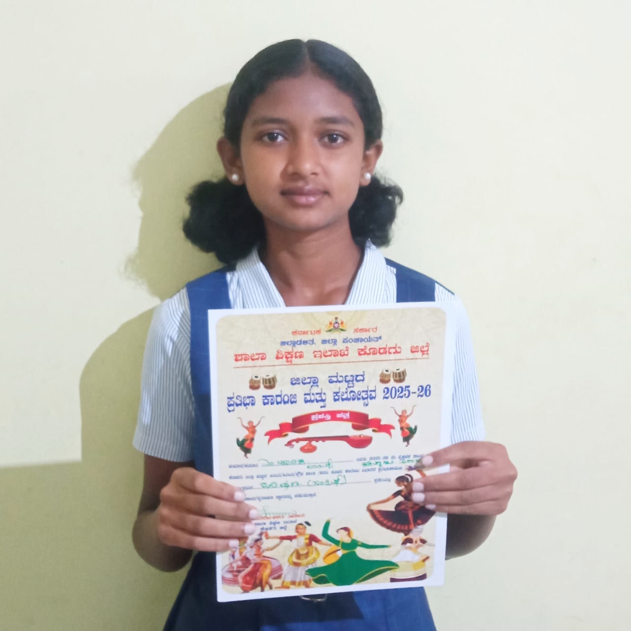 ಗೋಣಿಕೊಪ್ಪ ಜ.28 NEWS DESK : ಇಂಗ್ಲಿಷ್ ಭಾಷಣ ಸ್ಪರ್ಧೆಯಲ್ಲಿ ಕಳತ್ಮಾಡು ಲಯನ್ಸ್ ಶಾಲೆಯ ವಿದ್ಯಾರ್ಥಿ ಎಂ.ಚಾರಿಕ ರಾಜ್ಯಮಟ್ಟಕ್ಕೆ ಆಯ್ಕೆಯಾಗಿದ್ದಾರೆ. ಕುಶಾಲನಗರ ಸರ್ಕಾರಿ ಪದವಿಪೂರ್ವ ಕಾಲೇಜಿನಲ್ಲಿ ನಡೆದ ಪ್ರತಿಭಾಕಾರಂಜಿ ಮತ್ತು ಜಿಲ್ಲಾ ಮಟ್ಟದ ಕಲೋತ್ಸವದಲ್ಲಿ ಭಾಗವಹಿಸಿ, ಇಂಗ್ಲಿಷ್ ಭಾಷಣ ಸ್ಪರ್ಧೆಯಲ್ಲಿ ಪ್ರಥಮ ಸ್ಥಾನ ಪಡೆದುಕೊಂಡಿದ್ದಾರೆ. ಲಯನ್ಸ್ ಶಾಲೆಯಲ್ಲಿ ಎಂಟನೇ ತರಗತಿ ಓದುತ್ತಿರುವ ಚಾರಿಕ ಅತ್ತೂರು ಗದ್ದೆಮನೆ ನಿವಾಸಿ ಮದು ಮತ್ತು ವಿಶಾಲಕ್ಷಿ ದಂಪತಿಗಳ ಪುತ್ರಿ.