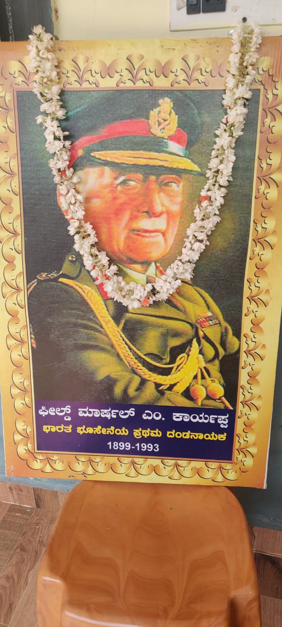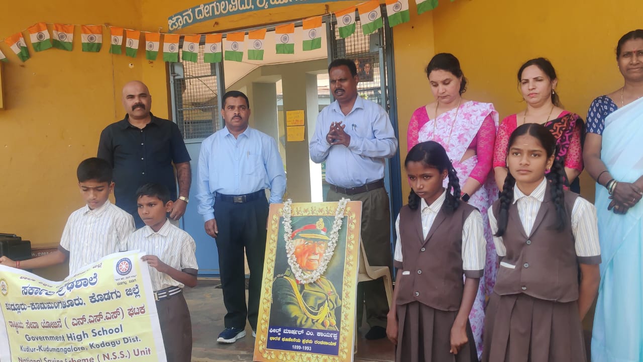ಸ್ಕೌಟ್ಸ್ ಮತ್ತು ಗೈಡ್ಸ್ ಸಂಸ್ಥೆ, ರಾಷ್ಟ್ರೀಯ ಸೇವಾ ಯೋಜನೆ ( ಎನ್.ಎಸ್.ಎಸ್.) ಘಟಕ, ವಿದ್ಯಾರ್ಥಿ ಸಂಘ ಹಾಗೂ ಎಸ್.ಡಿ.ಎಂ.ಸಿ. ಸಮಿತಿಯ ಆಶ್ರಯದಲ್ಲಿ ಸ್ವಾತಂತ್ರ್ಯ ಭಾರತದ ಸೇನಾ ಮಹಾದಂಡ ನಾಯಕ ಫೀಲ್ಡ್ ಮಾರ್ಷಲ್ ಕೆ.ಎಂ.ಕಾರ್ಯಪ್ಪ ಅವರ ಜನ್ಮ ದಿನಾಚರಣೆ ಆಚರಿಸಲಾಯಿತು. ಶಿಕ್ಷಕರು ಹಾಗೂ ವಿದ್ಯಾರ್ಥಿಗಳು ಕೆ.ಎಂ. ಕಾರ್ಯಪ್ಪ ಅವರ ಭಾವಚಿತ್ರಕ್ಕೆ ಪುಷ್ಪ ನಮನ ಸಲ್ಲಿಸಿ ಗೌರವ ನಮನ ಸಲ್ಲಿಸಿದರು. ಫೀಲ್ಡ್ ಮಾರ್ಷಲ್ ಕೆ.ಎಂ.ಕಾರ್ಯಪ್ಪ ಅವರು ಸೇನಾ ಕ್ಷೇತ್ರದಲ್ಲಿ ಸಲ್ಲಿಸಿದ ವಿಶಿಷ್ಠ ಸೇವೆ ಕುರಿತು ಮಾತನಾಡಿದ ಶಾಲಾ ಮುಖ್ಯ ಶಿಕ್ಷಕ ಟಿ.ಜಿ.ಪ್ರೇಮಕುಮಾರ್, ‘ಫೀಲ್ಡ್ ಮಾರ್ಷಲ್ ಕೆ.ಎಂ.ಕಾರ್ಯಪ್ಪ ಎಂದರೆ ಒಂದು ರೀತಿ ಸ್ಪೂರ್ತಿ ಹಾಗೂ ಚಿಲುಮೆ. ಶಿಸ್ತಿನ ಸಿಪಾಯಿ ಆಗಿದ್ದ ಫೀಲ್ಡ್ ಮಾರ್ಷಲ್ ಕಾರ್ಯಪ್ಪ ಅವರ ಆದರ್ಶ ಗುಣಗಳನ್ನು ವಿದ್ಯಾರ್ಥಿಗಳು ಮೈಗೂಡಿಸಿಕೊಳ್ಳಬೇಕು’ ಎಂದು ಹೇಳಿದರು. ಫೀಲ್ಡ್ ಮಾರ್ಷಲ್ ಕಾರ್ಯಪ್ಪ ಅವರ ಶಿಸ್ತು, ಶ್ರದ್ಧೆ ಮತ್ತು ಸಮಯಪ್ರಜ್ಞೆಯನ್ನು ಪ್ರತಿಯೊಬ್ಬರೂ ತಮ್ಮ ಜೀವನದಲ್ಲಿ ಅಳವಡಿಸಿಕೊಳ್ಳಬೇಕು ಎಂದರು. ಫೀಲ್ಡ್ ಮಾರ್ಷಲ್ ಕಾರ್ಯಪ್ಪ ಅವರು ಸದಾ ಹೇಳುತ್ತಿದ್ದ ರಾಷ್ಟ್ರ ಮೊದಲು, ನಂತರ ಉಳಿದ ಎಲ್ಲವೂ ಎಂಬ ತತ್ವವನ್ನು ನಾವೆಲ್ಲರೂ ಪರಿಪಾಲಿಸುವ ಮೂಲಕ ದೇಶವನ್ನು ಎಲ್ಲರೂ ಪ್ರೀತಿಸಬೇಕು ಎಂದು ಪ್ರೇಮಕುಮಾರ್ ಹೇಳಿದರು.