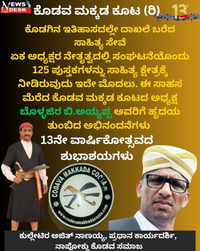 ಮಡಿಕೇರಿ, NEWS DESK ಫೆ.17: ಕರ್ನಾಟಕ ಬ್ಯಾರಿ ಸಾಹಿತ್ಯ ಅಕಾಡೆಮಿಯ ಆಶ್ರಯದಲ್ಲಿ ಕೊಡಗು ಜಿಲ್ಲಾ ಬ್ಯಾರಿ ವೆಲ್ಫೇರ್ ಟ್ರಸ್ಟ್ನ ಸಹಯೋಗದೊಂದಿಗೆ ಎಪ್ರಿಲ್ 28ರಂದು ಮಡಿಕೇರಿಯಲ್ಲಿ ಕೊಡಗು ಜಿಲ್ಲಾ ಬ್ಯಾರಿ ಸಾಹಿತ್ಯ ಸಮ್ಮೇಳನ ನಡೆಯಲಿದೆ. ಮೊನ್ನೆ ಮಡಿಕೇರಿಯಲ್ಲಿ ನಡೆದ ಕೊಡಗು ಜಿಲ್ಲಾ ಬ್ಯಾರಿ ವೆಲ್ಫೇರ್ ಟ್ರಸ್ಟ್ನ ಸಭೆಯಲ್ಲಿ ಈ ನಿರ್ಣಯ ಕೈಗೊಳ್ಳಲಾಗಿದ್ದು, ಸಮ್ಮೇಳನದ ಅಂಗವಾಗಿ ಮಹಿಳೆಯರು, ಪುರುಷರು ಮತ್ತು ಮಕ್ಕಳಿಗೆ ವಿವಿಧ ಸ್ಪರ್ಧೆಗಳನ್ನು ಏರ್ಪಡಿಸಲಾಗುವುದು.