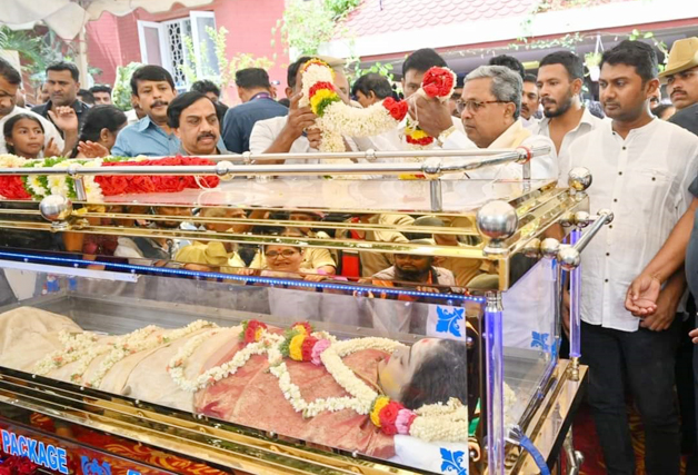 Facebook Twitter WhatsApp Email Telegram Copy Link ಬೆಂಗಳೂರು : ಮುಖ್ಯಮಂತ್ರಿಸಿದ್ದರಾಮಯ್ಯ ಅವರು ನಟ ವಿಜಯ ರಾಘವೇಂದ್ರ ಅವರ ಪತ್ನಿ ಸ್ಪಂದನಾ ಅವರ ಪಾರ್ಥಿವ ಶರೀರದ ಅಂತಿಮ ದರ್ಶನ ಪಡೆದು, ಕುಟುಂಬದವರಿಗೆ ಸಾಂತ್ವನ ಹೇಳಿದರು. ಈ ಸಂದರ್ಭ ಮುಖ್ಯಮಂತ್ರಿಗಳ ರಾಜಕೀಯ ಕಾರ್ಯದರ್ಶಿ ಗೋವಿಂದರಾಜು ಹಾಜರಿದ್ದರು.