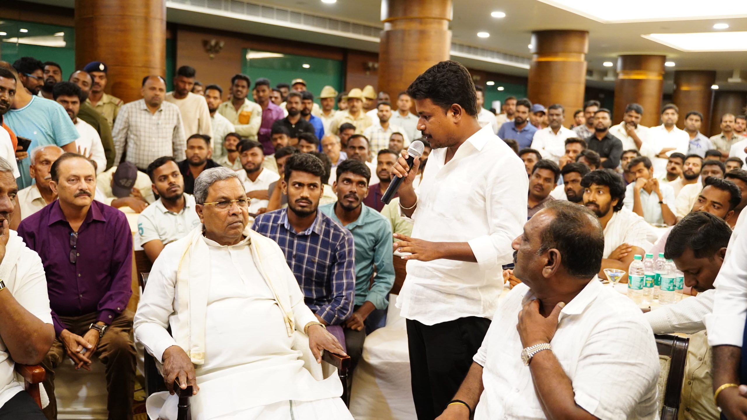 ಬೆಂಗಳೂರು ಆ.28 : ಮುಖ್ಯಮಂತ್ರಿ ಸಿದ್ದರಾಮಯ್ಯ ಅವರು ಮೈಸೂರಿನಲ್ಲಿ ಇಂದು ಸಂಜೆ ಮಾನಸ ಗಂಗೋತ್ರಿಯ ಆಯ್ದ ವಿದ್ಯಾರ್ಥಿ ಸಮೂಹದ ಜತೆ ಸಂವಾದ ನಡೆಸಿದರು. 200ಕ್ಕೂ ಹೆಚ್ಚು ವಿದ್ಯಾರ್ಥಿಗಳು ಸಂವಾದದಲ್ಲಿ ಪಾಲ್ಗೊಂಡು ತಮ್ಮ ಅನಿಸಿಕೆ, ಅಭಿಪ್ರಾಯಗಳನ್ನು ವ್ಯಕ್ತಪಡಿಸಿದರು. ಮಾಜಿ ಶಾಸಕ ಡಾ.ಯತೀಂದ್ರ ಸಿದ್ದರಾಮಯ್ಯ ಅವರು ಈ ವೇಳೆ ಉಪಸ್ಥಿತರಿದ್ದರು.