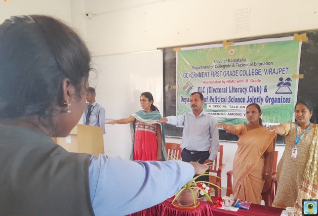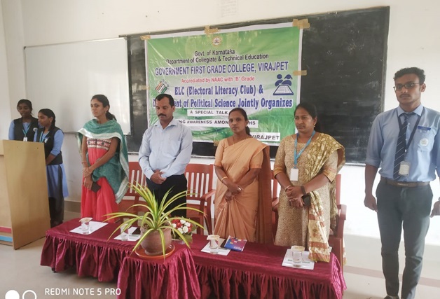ರಾಜ್ಯಶಾಸ್ತ್ರ ವಿಭಾಗದ ಮುಖ್ಯಸ್ಥರಾದ ಆರ್.ದಿವ್ಯ ಮತ್ತು ಚುನಾವಣಾ ಸಾಕ್ಷರತಾ ರಾಜ್ಯಶಾಸ್ತ್ರ ವಿಭಾಗದ ಸಹಾಯಕ ಪ್ರಾಧ್ಯಾಪಕರಾದ ಎಂ.ಬಿ.ದಿವ್ಯ ಹಾಜರಿದ್ದರು. ತೃತೀಯ ಬಿ.ಎ.ವಿದ್ಯಾರ್ಥಿಗಳಾದ ಚೇತನ್ ಸ್ವಾಗತಿಸಿದರು. ಅಜಿತ್ ನಿರೂಪಿಸಿದರು. ಮುತ್ತಮ್ಮ ವಂದಿಸಿದರು.