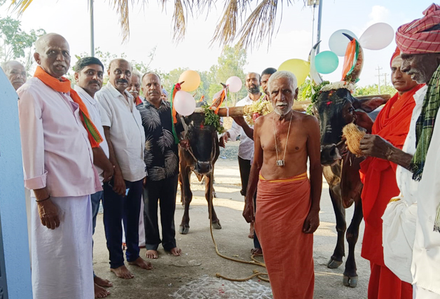 ಗ್ರಾಮದ ಬಸವೇಶ್ವರ ದೇವಸ್ಥಾನದಲ್ಲಿ ಅಲಂಕೃತ ಜಾನುವಾರುಗಳಿಗೆ ಸಾಮೂಹಿಕ ಪೂಜೆ ಸಲ್ಲಿಸಿ ಮಳೆಗಾಗಿ ಪ್ರಾರ್ಥಿಸಿದರು.