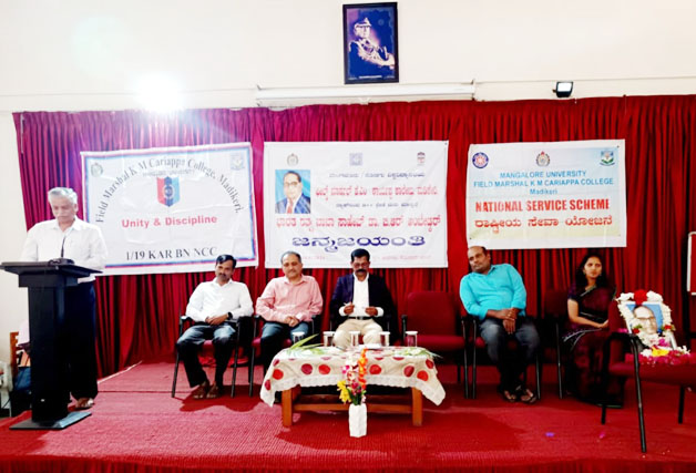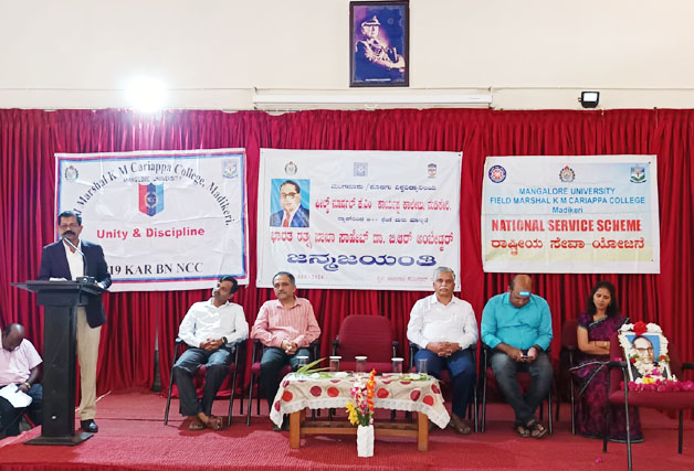 ನಗರದ ಫೀಲ್ಡ್ ಮಾರ್ಷಲ್ ಕೆ.ಎಂ ಕಾರ್ಯಪ್ಪ ಕಾಲೇಜಿನಲ್ಲಿ ಜರುಗಿದ ಭಾರತ ರತ್ನ ಡಾ. ಬಿ.ಆರ್ ಅಂಬೇಡ್ಕರ್ ಅವರ 133ನೇ ಜನ್ಮ ಜಯಂತಿ ಆಚರಣೆ ಕಾರ್ಯಕ್ರಮದ ಅಧ್ಯಕ್ಷತೆ ವಹಿಸಿ ಅವರು ಮಾತನಾಡಿದರು.