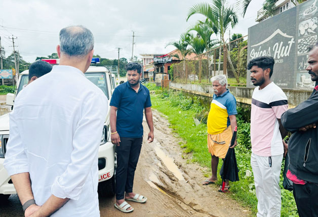 ವಿರಾಜಪೇಟೆ ಜೂ.11 NEWS DESK : ಮಳೆ ಬಂದಾಗ ಕದನೂರು ರಸ್ತೆಯ ಮೋರಿಗಳು ತುಂಬಿ ರಸ್ತೆಯಲ್ಲಿ ನೀರು ಹರಿಯುತ್ತಿದ್ದು, ಇದರಿಂದ ಪಾದಚಾರಿಗಳಿಗೆ ಹಾಗೂ ವಾಹನಗಳ ಸಂಚಾರಕ್ಕೆ ತೀವ್ರ ಅಡಚಣೆ ಉಂಟಾಗುತ್ತಿತ್ತು. ಈ ಬಗ್ಗೆ ಮಾಹಿತಿ ತಿಳಿದು ಸ್ಥಳಕ್ಕೆ ಭೇಟಿ ನೀಡಿದ ಮುಖ್ಯಮಂತ್ರಿಗಳ ಕಾನೂನು ಸಲಹೆಗಾರ ಹಾಗೂ ವಿರಾಜಪೇಟೆ ಕ್ಷೇತ್ರದ ಶಾಸಕ ಎ.ಎಸ್.ಪೊನ್ನಣ್ಣ ಸಂಬಂಧಪಟ್ಟ ಅಧಿಕಾರಿಗಳಿಗೆ ಶೀಘ್ರವಾಗಿ ಸಮಸ್ಯೆಯನ್ನು ಪರಿಹರಿಸಲು ಸೂಚನೆ ನೀಡಿದರು.