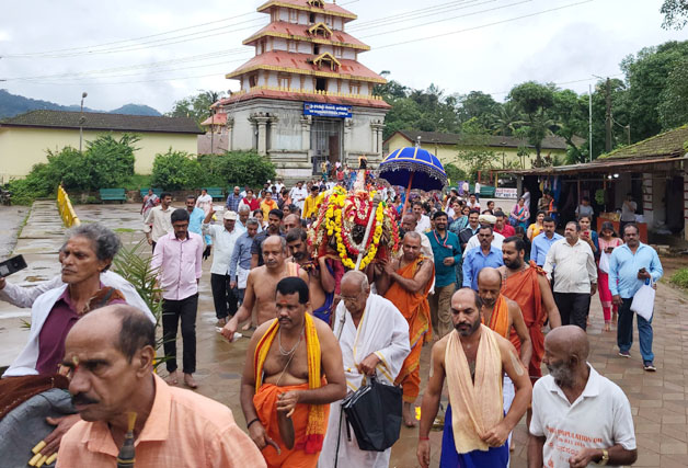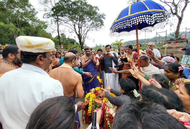 ಮಡಿಕೇರಿ NEWS DESK ಆ.4 : ಕ್ರೋಧಿ ಸಂವತ್ಸರದ ಗ್ರೀಷ್ಮ ಋತುವಿನ ದಕ್ಷಿಣಾಯನ ಕರ್ಕಾಟಕ ಮಾಸ ಆಷಾಢ ಕೃಷ್ಣಪಕ್ಷದ ಅಮಾವಾಸ್ಯೆಯ ದಿನವಾದ ಇಂದು ಭಾಗಮಂಡಲದ ಶ್ರೀ ಭಗಂಡೇಶ್ವರ ದೇವಾಲಯದಲ್ಲಿ “ಪೊಲಿಂಕಾನ ಉತ್ಸವ” ವನ್ನು ಶ್ರದ್ಧಾಭಕ್ತಿಯಿಂದ ಆಚರಿಸಲಾಯಿತು. ಶ್ರೀ ಭಗಂಡೇಶ್ವರ ದೇವಾಲಯದ ಪ್ರಧಾನ ಅರ್ಚಕರಾದ ಎಸ್.ರವಿಕುಮಾರ್ ಅವರ ನೇತೃತ್ವದಲ್ಲಿ “ಪೊಲಿಂಕಾನ ಉತ್ಸವ” ಮತ್ತು ಮಹಾಪೂಜೆ ನಡೆಯಿತು. ತುಂಬಿ ಹರಿಯುತ್ತಿರುವ ಕಾವೇರಿಗೆ ತ್ರಿವೇಣಿ ಸಂಗಮದಲ್ಲಿ ಬಾಗಿನ ಅರ್ಪಿಸಲಾಯಿತು. ದೇವಾಲಯದ ಕಾರ್ಯನಿರ್ವಾಹಣಾಧಿಕಾರಿಗಳಾದ ಚಂದ್ರಶೇಖರ್ ಎನ್.ಜಿ, ತಕ್ಕಮುಖ್ಯಸ್ಥರಾದ ಬಳ್ಳಡ್ಕ ಬಿ.ಸಿ.ಅಪ್ಪಾಜಿ, ಶ್ರೀ ತಲಕಾವೇರಿ ದೇವಾಲಯದ ತಕ್ಕಮುಖ್ಯಸ್ಥರಾದ ಕೋಡಿ ಯು.ಮೋಟಯ್ಯ, ಸಿಬ್ಬಂದಿ ವರ್ಗ ಹಾಗೂ ಭಕ್ತಾದಿಗಳು ಉತ್ಸವದಲ್ಲಿ ಪಾಲ್ಗೊಂಡಿದ್ದರು.