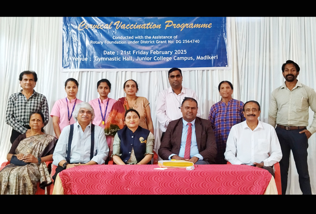 ಪೋಲಿಯೋ ಮುಕ್ತ ಭಾರತ ನಿರ್ಮಾಣ ಮಾಡುವಲ್ಲಿ ರೋಟರಿಯ ಪಾತ್ರ ಪ್ರಮುಖವಾಗಿದೆ. ಇದೀಗ ಟಿಬಿ ಮುಕ್ತ ಭಾರತ ಮಾಡಲು ಪಣತೊಟ್ಟಿದೆ ಎಂದು ಡಾ.ಸೋನಿಯಾ ಮೆಚ್ಚುಗೆ ವ್ಯಕ್ತಪಡಿಸಿದರು. ಪ್ರೌಢಶಾಲೆ ವಿಭಾಗದ ಉಪ ಪ್ರಾಂಶುಪಾಲೆ ಕೆ.ವಿ.ಶಶಿಕಲಾ ಮಾತನಾಡಿ, ಯುವ ಶಕ್ತಿಯನ್ನು ಜಾಗೃತಗೊಳಿಸಿ, ಪ್ರೋತ್ಸಾಹಿಸುವ ಕಾರ್ಯ ರೋಟರಿ ಸಂಸ್ಥೆಯಿಂದ ಆಗುತ್ತಿದೆ. ಈ ಸಂಸ್ಥೆ ಆರೋಗ್ಯವಂತ ವಿದ್ಯಾರ್ಥಿಗಳನ್ನು ತಯಾರು ಮಾಡುತ್ತಿರುವುದು ಶ್ಲಾಘನೀಯವೆಂದರು. ಗರ್ಭಕಂಠದ ಕ್ಯಾನ್ಸರ್ ಕುರಿತು ನಡೆಸಲಾಗುತ್ತಿರುವ ಜಾಗೃತಿ ಕಾರ್ಯಕ್ರಮದ ಸದುಪಯೋಗವನ್ನು ವಿದ್ಯಾರ್ಥಿನಿಯರು ಪಡೆದುಕೊಳ್ಳಬೇಕು. ಆ ಮೂಲಕ ಆರೋಗ್ಯವಂತ ಸಮಾಜ ನಿರ್ಮಾಣ ಮಾಡಬೇಕು ಎಂದು ತಿಳಿಸಿದರು. ರೋಟರಿ ಜಿಲ್ಲಾ ಮಾಜಿ ಗವರ್ನರ್ ರೋಟರಿಯನ್ ಸುರೇಶ್ ಚಂಗಪ್ಪ ಮಾತನಾಡಿ, ವಿದ್ಯಾರ್ಥಿ ಜೀವನದಿಂದಲೇ ಜವಾಬ್ದಾರಿಯುತ ವ್ಯಕ್ತಿಗಳಾಗಬೇಕು. ಜವಾಬ್ದಾರಿ ಇದ್ದಾಗ ಮಾತ್ರ ಸದೃಢ ಸಮಾಜ ನಿರ್ಮಾಣ ಮಾಡಲು ಸಾಧ್ಯ ಎಂದರು. ಪ್ರತಿಯೊಬ್ಬ ವ್ಯಕ್ತಿಗೆ ಉತ್ತಮ ಆರೋಗ್ಯ ಮುಖ್ಯ, ಆ ನಿಟ್ಟಿನಲ್ಲಿ ಆರೋಗ್ಯದ ಬಗ್ಗೆ ರೋಟರಿ ಹೊಂದಿರುವ ಕಾಳಜಿ ಶ್ಲಾಘನೀಯ. ಯಾವುದೇ ಮೌಢ್ಯಗಳು ಇದ್ದರೆ ಅದನ್ನು ಬಿಟ್ಟು ವಿದ್ಯಾರ್ಥಿಗಳು ಮುಂದೆ ಬರಬೇಕು. ಆಗ ಮಾತ್ರ ಆರೋಗ್ಯವಂತ ಪರಿಸರ ನಿರ್ಮಾಣ ಮಾಡಲು ಸಾಧ್ಯ ಎಂದು ಸಲಹೆ ನೀಡಿದರು. ಮಾಜಿ ಗವರ್ನರ್ ಡಾ.ರವಿ ಅಪ್ಪಾಜಿ ಮಾತನಾಡಿ, ಗರ್ಭಕಂಠದ ಕ್ಯಾನ್ಸರ್ ಬಗ್ಗೆ ಹೆಚ್ಚಿನ ಅರಿವು ಅಗತ್ಯ. ವಿದ್ಯಾರ್ಥಿನಿಯರು ಆರಂಭಿಕ ಹಂತದಲ್ಲೇ ಈ ಬಗ್ಗೆ ಜಾಗೃತರಾಗಬೇಕು, ಲಸಿಕೆಯ ಸದುಪಯೋಗ ಪಡೆದುಕೊಳ್ಳಬೇಕು ಎಂದರು. ಕಾರ್ಯಕ್ರಮದ ಅಧ್ಯಕ್ಷತೆ ವಹಿಸಿ ಮಾತನಾಡಿದ ರೋಟರಿ ಮಡಿಕೇರಿ ಅಧ್ಯಕ್ಷ ಸುದಯ್ ನಾಣಯ್ಯ, ರೋಟರಿ ಕ್ಲಬ್ ಮಡಿಕೇರಿ, ರೋಟರಿ ಕ್ಲಬ್ ಮೈಸೂರು ಹಾಗೂ ದಿವಾಕರ್ಸ್ ಸರ್ವಿಸ್ ಟ್ರಸ್ಟ್ ಸಹಯೋಗದಲ್ಲಿ ಲಸಿಕೆಯನ್ನು ನೀಡಲಾಗುತ್ತಿದೆ. ಈಗಾಗಲೇ ಶಾಲಾ ಕಾಲೇಜು ವಿದ್ಯಾರ್ಥಿಗಳಿಗೆ ಹಾಗೂ ಪೋಷಕರಿಗೆ ಈ ಬಗ್ಗೆ ಜಾಗೃತಿ ಮೂಡಿಸಲಾಗಿದೆ. ಪೋಷಕರಿಗೆ ಒಪ್ಪಿಗೆ ಪತ್ರವನ್ನು ವಿತರಿಸಲಾಗಿದ್ದು, ಸುಮಾರು 50 ವಿದ್ಯಾರ್ಥಿನಿಯರು ಲಸಿಕೆ ಪಡೆಯಲು ಮುಂದಾಗಿದ್ದಾರೆ. ಮುಂದಿನ ದಿನಗಳಲ್ಲಿ ಮತ್ತಷ್ಟು ವಿದ್ಯಾರ್ಥಿನಿಯರು ಈ ಬಗ್ಗೆ ಜಾಗೃತರಾಗಿ ಲಸಿಕೆ ಪಡೆಯುವಂತಾಗಬೇಕು ಎಂದು ಕರೆ ನೀಡಿದರು. ಕಾರ್ಯಕ್ರಮದಲ್ಲಿ ರೋಟರಿ ವೃತ್ತಿಪರ ನಿರ್ದೇಶಕ ಅನಿಲ್ ಕೃಷ್ಣಾನಿ, ಸದಸ್ಯೆ ಮಲ್ಲಿಗೆ ಪೈ, ಮೈಸೂರಿನ ಮದರ್ಹುಡ್ ಆಸ್ಪತ್ರೆಯ ಸಿಬ್ಬಂದಿಗಳು, ಪೋಷಕರು ಹಾಗೂ ವಿದ್ಯಾರ್ಥಿಗಳು ಉಪಸ್ಥಿತರಿದ್ದರು. ಸರಕಾರಿ ಪ್ರೌಢಶಾಲೆಯ ವಿದ್ಯಾರ್ಥಿಗಳಾದ ಶಿವಕುಮಾರ್, ಚಂದನ್, ವಿಶಾಲ್ ಪ್ರಾರ್ಥಿಸಿದರು. ರೋಟರಿ ಸದಸ್ಯೆ ಲಲಿತಾ ರಾಘವನ್ ವಂದಿಸಿದರು. ಮಡಿಕೇರಿ ಪ್ರೌಢಶಾಲೆಯ 39 ವಿದ್ಯಾರ್ಥಿನಿಯರು, ಕಡಗದಾಳು ಸರ್ಕಾರಿ ಪ್ರೌಢಶಾಲೆಯ 8, ಕಕ್ಕಬ್ಬೆ ಪ್ರೌಢಶಾಲೆಯ 1 ಹಾಗೂ ಬೇತು ಗ್ರಾಮದ ಎಕ್ಸೆಲ್ ಸ್ಕೂಲ್ ಆಫ್ ಎಜುಕೇಶನ್ ಶಾಲೆಯ 2 ವಿದ್ಯಾರ್ಥಿನಿಯರು ಸೇರಿದಂತೆ ಒಟ್ಟು 50 ವಿದ್ಯಾರ್ಥಿನಿಯರು ಲಸಿಕೆ ಪಡೆದುಕೊಂಡರು.