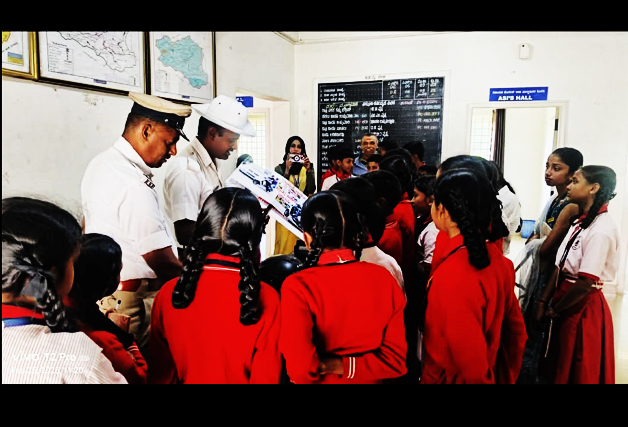 Facebook Twitter WhatsApp Email Telegram Copy Link ಮಡಿಕೇರಿ ಫೆ.27 NEWS DESK : ಮಡಿಕೇರಿ ಸಂಚಾರಿ ಪೊಲೀಸ್ ಠಾಣೆಯ ವತಿಯಿಂದ ಮಡಿಕೇರಿ ನಗರದ ರಾಜರಾಜೇಶ್ವರಿ ಶಾಲಾ ಮಕ್ಕಳಿಗೆ “ತೆರೆದ ಮನೆ” ಕಾರ್ಯಕ್ರಮ ನಡೆಯಿತು. ಕಾರ್ಯಕ್ರಮದಲ್ಲಿ ಮಡಿಕೇರಿ ಸಂಚಾರ ಠಾಣೆಯ ಅಧಿಕಾರಿ ಮತ್ತು ಸಿಬ್ಬಂದಿಗಳು ಸಂಚಾರ ಸುರಕ್ಷತೆ, ಸಂಚಾರಿ ನಿಯಮಗಳ ಬಗ್ಗೆ ಅರಿವು ಮೂಡಿಸಿದರು.