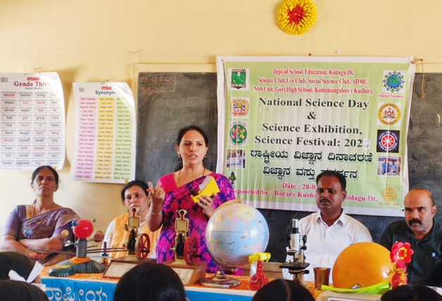 ಕುಶಾಲನಗರ ಫೆ.28 NEWS DESK :  ಉತ್ತರ ಕೊಡಗು ಜಿಲ್ಲೆಯ ಕುಶಾಲನಗರ ತಾಲ್ಲೂಕಿನ‌ ಕೂಡಿಗೆ ಕ್ಲಸ್ಟರ್ ವ್ಯಾಪ್ತಿಯ ಕೂಡುಮಂಗಳೂರು ( ಕೂಡ್ಲೂರು ) ಸರ್ಕಾರಿ ಪ್ರೌಢಶಾಲೆಯಲ್ಲಿ ವಿಜ್ಞಾನ ಸಂಘದ ವತಿಯಿಂದ ಕರ್ನಾಟಕ ರಾಜ್ಯ ವಿಜ್ಞಾನ ಪರಿಷತ್ತು ಘಟಕ, ಇಕೋ ಕ್ಲಬ್, ಎನ್.ಎಸ್.ಎಸ್.ಹಾಗೂ ಭಾರತ್ ಸ್ಕೌಟ್ಸ್ ಮತ್ತು ಗೈಡ್ಸ್ ಸಂಸ್ಥೆಯ ಸಹಯೋಗದೊಂದಿಗೆ “* *ವಿಕಸಿತ ಭಾರತ ನಿರ್ಮಾಣಕ್ಕಾಗಿ ವಿಜ್ಞಾನ ಮತ್ತು ನಾವೀನ್ಯತೆಯಲ್ಲಿ ಜಾಗತಿಕ ನಾಯಕತ್ವಕ್ಕಾಗಿ ಭಾರತೀಯ ಯುವ ಜನತೆಯ ಸಬಲೀಕರಣ*” ಎಂಬ ಧ್ಯೇಯ ವಾಕ್ಯದೊಂದಿಗೆ  ರಾಷ್ಟ್ರೀಯ ವಿಜ್ಞಾನ ದಿನಾಚರಣೆ-2025 ಹಾಗೂ ವಿಜ್ಞಾನ ಹಬ್ಬವನ್ನು ಅರ್ಥಪೂರ್ಣವಾಗಿ ಆಚರಿಸಲಾಯಿತು. ವಿಜ್ಞಾನ ದಿನಾಚರಣೆಯ ವೈಜ್ಞಾನಿಕ ಮನೋಭಾವನೆ ಬೆಳೆಸಿಕೊಳ್ಳುವ ಕುರಿತು ಭಾರತೀಯ ಸಂವಿಧಾನದ 51 ( ಎಚ್) ವಿಧಿಯ ಮಹತ್ವ ವೈಜ್ಞಾನಿಕ ಮನೋಭಾವನೆ ಬೆಳೆಸುವ ಕುರಿತಾದ ಪ್ರತಿಜ್ಞಾ ವಿಧಿ ಬೋಧಿಸಿ ವಿಜ್ಞಾನ ದಿನಾಚರಣೆಯ ಮಹತ್ವ ಕುರಿತು ಮಾತನಾಡಿದ ಶಾಲಾ ಮುಖ್ಯ ಶಿಕ್ಷಕರೂ ಆದ ವಿಜ್ಞಾನ ಕಾರ್ಯಕ್ರಮಗಳ ಸಂಘಟಕ ಟಿ.ಜಿ.ಪ್ರೇಮಕುಮಾರ್, ವಿಜ್ಞಾನ ಎಲ್ಲರಿಗೂ ಅಗತ್ಯವಾಗಿದೆ. ಭಾರತವು ವಿಶ್ವಮಟ್ಟದಲ್ಲಿ ವಿಜ್ಞಾನದ ಪ್ರಗತಿಗೆ ತನ್ನದೇ ಆದ ವಿಶೇಷ ಕೊಡುಗೆ ನೀಡುತ್ತಾ ಬಂದಿದೆ. ದೇಶೀಯ ವಿಜ್ಞಾನ ಮತ್ತು ತಂತ್ರಜ್ಞಾನ ಬಳಕೆ ಮಾಡುವ ಮೂಲಕ ಭಾರತವು ವಿಜ್ಞಾನ ಮತ್ತು ತಂತ್ರಜ್ಞಾನ ಕ್ಷೇತ್ರದಲ್ಲಿ ಉತ್ತಮ ಸಾಧನೆ ಮಾಡಿದೆ ಎಂದರು. ವಿದ್ಯಾರ್ಥಿಗಳು ಶ್ರೇಷ್ಠ ವಿಜ್ಞಾನಿ ಸರ್ ಸಿ.ವಿ.ರಾಮನ್ ರಂತಹ ವಿಜ್ಞಾನಿಗಳ ಸಾಧನೆ ಮತ್ತು ಸಂಶೋಧನೆ ಬಗ್ಗೆ ಹೆಚ್ಚಿನ ಜ್ಞಾನ ಹೊಂದಬೇಕು ಎಂದರು. ವಿಜ್ಞಾನ ಮತ್ತು ತಂತ್ರಜ್ಞಾನ ಕಲಿಕೆಯಲ್ಲಿ ಹೆಚ್ಚಿನ ಆಸಕ್ತಿ ಬೆಳೆಸಿಕೊಂಡು ವಿಜ್ಞಾನ ಮತ್ತು ತಂತ್ರಜ್ಞಾನದ ಕ್ಷೇತ್ರದಲ್ಲಿ ಸಂಶೋಧನೆ ಮತ್ತು ಆವಿಷ್ಕಾರಗಳಲ್ಲಿ ತಮ್ಮನ್ನು ತೊಡಗಿಸಿಕೊಂಡು ವಿಜ್ಞಾನ ಕ್ಷೇತ್ರದಲ್ಲಿ ಉತ್ತಮ ಸಾಧನೆ ಮಾಡಬೇಕು ಎಂದರು. ವಿಜ್ಞಾನ ಮತ್ತು ತಂತ್ರಜ್ಞಾನ ದಿನೇ ದಿನೇ ಬೆಳೆಯುತ್ತಿರುವುದರಿಂದ ಭಾರತ ದೇಶವು ವಿಜ್ಞಾನ ಕ್ಷೇತ್ರದಲ್ಲಿ ಹೆಚ್ಚಿನ ಸಾಧನೆ ಮಾಡಲು ಸಾಧ್ಯವಾಗಿದೆ ಎಂದು ಪ್ರೇಮಕುಮಾರ್ ಹೇಳಿದರು. ರಾಷ್ಟ್ರೀಯ ವಿಜ್ಞಾನ ದಿನದ ಅಂಗವಾಗಿ ಏರ್ಪಡಿಸಿದ್ದ ವಿಜ್ಞಾನ ಮಾದರಿಗಳ ಕುರಿತು ಮಾಹಿತಿ ನೀಡಿದ ವಿಜ್ಞಾನ ಸಂಘದ ಉಸ್ತುವಾರಿ ಶಿಕ್ಷಕಿ ಬಿ.ಡಿ.ರಮ್ಯ ಅವರು ಸರ್ ಸಿ.ವಿ.ರಾಮನ್ ಅವರ ರಾಮನ್ ಪರಿಣಾಮಗಳು ( ರಾಮನ್ ಎಫೆಕ್ಟ್ ) ವೈಜ್ಞಾನಿಕ ಸಂಶೋಧನೆ ಕುರಿತು ವಿವರಿಸಿದರು. ದೇಶದ ಅಭಿವೃದ್ಧಿಗೆ ಭಾರತೀಯ ವಿಜ್ಞಾನಿಗಳ ಕೊಡುಗೆಯನ್ನು ಗುರುತಿಸಲು ಪ್ರತಿ ವರ್ಷ ಫೆ.28 ರಂದು ರಾಷ್ಟ್ರೀಯ ವಿಜ್ಞಾನ ದಿನವನ್ನಾಗಿ ಆಚರಿಸಲಾಗುತ್ತದೆ ಎಂದರು. ಜಿಲ್ಲಾ ಪ್ರೌಢಶಾಲಾ ಸಹ ಶಿಕ್ಷಕರ ಸಂಘದ ಸಂಘಟನಾ ಕಾರ್ಯದರ್ಶಿ ಎಂ.ಟಿ.ದಯಾನಂದ ಪ್ರಕಾಶ್ ಮಾತನಾಡಿ, ವಿದ್ಯಾರ್ಥಿಗಳು ವಿಜ್ಞಾನ ಕಲಿಕೆಯಲ್ಲಿ ಹೆಚ್ಚಿನ ಆಸಕ್ತಿ ಬೆಳೆಸಿಕೊಳ್ಳಬೇಕು ಎಂದರು. ಎನ್.ಎಸ್.ಎಸ್.ಕಾರ್ಯಕ್ರಮ ಅಧಿಕಾರಿ ಕೆ.ಟಿ.ಸೌಮ್ಯ ಹಾಗೂ ಸರ್ಕಾರಿ ಹಿರಿಯ ಪ್ರಾಥಮಿಕ ಶಾಲೆಯ ಶಿಕ್ಷಕಿ ನಳಿನಿ ಇದ್ದರು. ವಿಜ್ಞಾನ ದಿನಾಚರಣೆ ಮತ್ತು ವಿಜ್ಞಾನ ವಸ್ತುಗಳ ಮಾದರಿ ಪ್ರದರ್ಶನದ ಕಾರ್ಯಕ್ರಮದಲ್ಲಿ ಸ್ಥಳೀಯ ಕೂಡ್ಲೂರು ಸರ್ಕಾರಿ ಪ್ರಾಥಮಿಕ ಹಾಗೂ ಪ್ರೌಢಶಾಲಾ ವಿದ್ಯಾರ್ಥಿಗಳು ಪಾಲ್ಗೊಂಡಿದ್ದರು.