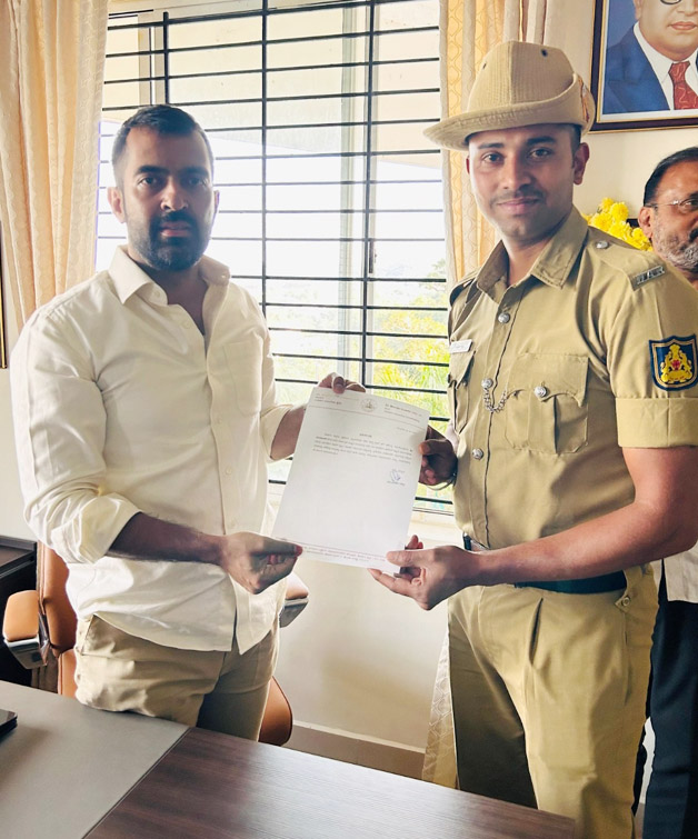 ಶಾಸಕರಿಂದ ಶ್ಲಾಘನೆ :: ಅಖಿಲ ಭಾರತ ಪೊಲೀಸ್ ಕರ್ತವ್ಯ ಕೂಟ ದಲ್ಲಿ ಕರ್ನಾಟಕವನ್ನು ಪ್ರತಿನಿಧಿಸಿದ ಕೊಡಗು ಜಿಲ್ಲೆ ಡಿಎಆರ್ ಘಟಕದ ಹೆಡ್ ಕಾನ್ಸ್ಟೇಬಲ್ ಮನಮೋಹನ್ ಅವರ ಗರಡಿಯಲ್ಲಿ ತರಬೇತಿ ಪಡೆಯುತ್ತಿರುವ ಶ್ವಾನ “ಕಾಪರ್“ ಬೆಳ್ಳಿಯ ಪದಕ (ದ್ವಿತೀಯ ಬಹುಮಾನ) ಪಡೆದಿರುವ ನಿಟ್ಟಿನಲ್ಲಿ ಮನಮೋಹನ್ ಅವರನ್ನು ಶಾಸಕ ಡಾ.ಮಂತರ್ ಗೌಡ ಮಡಿಕೇರಿಯ ಶಾಸಕರ ಕಚೇರಿಯಲ್ಲಿ ಪ್ರಶಂಸನಾ ಪತ್ರ ನೀಡಿ ಅಭಿನಂದಿಸಿದರು.