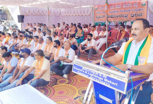*ವಿವಿಧ ಬೇಡಿಕೆಗಳ ಈಡೇರಿಕೆಗಾಗಿ ಅಹೋರಾತ್ರಿ ಧರಣಿ ಆರಂಭಿಸಿದ ಕೊಡಗು ಜಿಲ್ಲಾ ಬಿಜೆಪಿ*