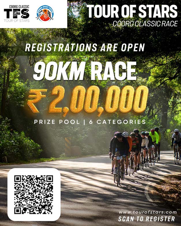ಮಡಿಕೇರಿ ಏ.17 NEWS DESK : ಮುದ್ದಂಡ ಕಪ್ ಹಾಕಿ ಉತ್ಸವದಲ್ಲಿ ರೋಚಕ ಹಾಕಿ ಪಂದ್ಯಗಳೊಂದಿಗೆ ವೈವಿಧ್ಯಮಯ ಕಾರ್ಯಕ್ರಮಗಳು ಕೂಡ ನಡೆಯುತ್ತಿದ್ದು, ಏ.26ರಂದು ಟೂರ್ ಆಫ್ ಸ್ಟಾರ್ಸ್ ಕೂರ್ಗ್ ಕ್ಲಾಸಿಕ್ ರೇಸ್ ಸೈಕ್ಲೋಥಾನ್ ನ್ನು ಆಯೋಜಿಸಲಾಗಿದೆ. ಈ ಕುರಿತು ಪತ್ರಿಕಾ ಪ್ರಕಟಣೆ ನೀಡಿರುವ ಮುದ್ದಂಡ ಕಪ್ ಹಾಕಿ ಉತ್ಸವ ಸಮಿತಿಯ ಅಧ್ಯಕ್ಷ ಮುದ್ದಂಡ ರಶಿನ್ ಸುಬ್ಬಯ್ಯ ಅವರು ಖ್ಯಾತ ಸೈಕಲ್ ಪಟುಗಳು ಸೇರಿದಂತೆ ನೂರಾರು ಮಂದಿ ಸೈಕ್ಲೋಥಾನ್ ರೇಸ್ ನಲ್ಲಿ ಪಾಲ್ಗೊಳ್ಳಳಿದ್ದಾರೆ. 100 ಕಿ.ಮೀ ಮತ್ತು 30 ಕಿ.ಮೀ ವಿಭಾಗಗಳಲ್ಲಿ (5 ವಿಭಾಗಗಳು ಎಲೈಟ್ / ಹವ್ಯಾಸಿ) ಸ್ಪರ್ಧೆ ನಡೆಯಲಿದೆ. ವಿಜೇತರಿಗೆ ನಗದು ಬಹುಮಾನ ಮತ್ತು ಪಾರಿತೋಷಕ ನೀಡಲಾಗುವುದು. ಮಡಿಕೇರಿ, ಮೂರ್ನಾಡು, ವಿರಾಜಪೇಟೆ, ಗೋಣಿಕೊಪ್ಪ, ಪಾಲಿಬೆಟ್ಟ ಮಾರ್ಗದಲ್ಲಿ ಈ ಜಾಥಾ ಸಾಗಲಿದೆ. ಆಸಕ್ತರು ಏ.22ರ ಒಳಗಾಗಿ https://www.tourofstars.com/register ನೋಂದಾಯಿಸಿಕೊಳ್ಳಬಹುದಾಗಿದೆ.