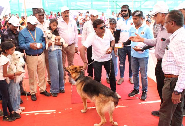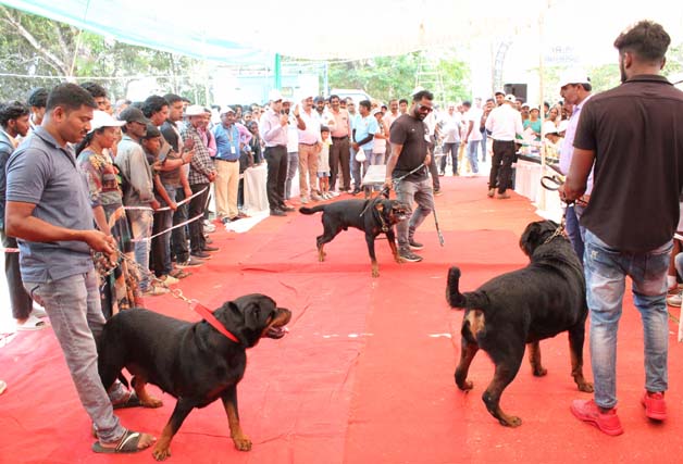 ::: ವಿವಿಧ ತಳಿಯ ಶ್ವಾನಗಳ ಆಕರ್ಷಣೆ ::: ಶ್ವಾನ ಪ್ರದರ್ಶನದಲ್ಲಿ ರಾಟ್ ವಿಲ್ಲರ್, ಗ್ರೇಟ್ಡೇನ್, ಮ್ಯಾಸ್ಟಿಫ್, ಸೈಬೀರಿಯನ್ ಹಸ್ಕಿ, ಪಗ್, ಬುಲ್ಡಾಗ್, ಗೋಲ್ಡನ್ ರೆಟ್ರೀವರ್, ಬೀಗಲ್, ಲ್ಯಾರ್ಬಡರ್, ಜರ್ಮನ್ ಶಫರ್ಡ್, ಮುಧೋಳ್ ಹೌಂಡ್ ಸೇರಿದಂತೆ 17 ವಿವಿಧ ತಳಿಯ ಅಧಿಕ ಸಂಖ್ಯೆಯ ಶ್ವಾನಗಳು ಆಕರ್ಷಿಸಿದವು.