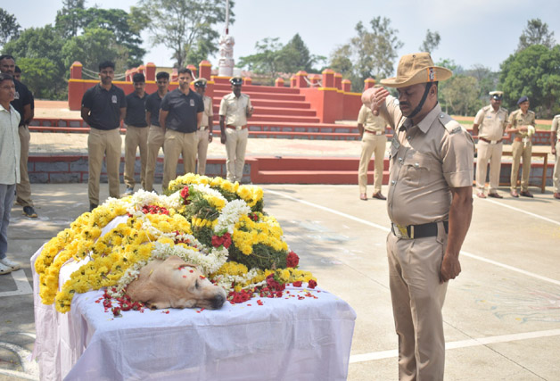 ಮಡಿಕೇರಿ ಏ.29 NEWS DESK : ಕೊಡಗು ಜಿಲ್ಲಾ ಪೊಲೀಸ್ ಘಟಕದ ಶ್ವಾನದಳ ವಿಭಾಗದಲ್ಲಿ 8 ವರ್ಷ 2 ತಿಂಗಳು ಅತ್ಯುತ್ತಮವಾಗಿ ಸೇವೆ ಸಲ್ಲಿಸಿದ ಶ್ವಾನ ಪೃಥ್ವಿ ಹೃದಯಾಘಾತದಿಂದ ನಿಧನ ಹೊಂದಿದೆ. ಜಿಲ್ಲಾ ಪೊಲೀಸ್ ವರಿಷ್ಠಾಧಿಕಾರಿ ಕೆ.ರಾಮರಾಜನ್ ಸೇರಿದಂತೆ ಪೊಲೀಸ್ ಅಧಿಕಾರಿಗಳು ಹಾಗೂ ಸಿಬ್ಬಂದಿಗಳು ಇಂದು ನಗರದ ಪೊಲೀಸ್ ಮೈದಾನದಲ್ಲಿ ಮೃತ ಪೃಥ್ವಿಗೆ ಅಂತಿಮ ಗೌರವ ಸಲ್ಲಿಸಿ ಅಮೋಘ ಸೇವೆಯನ್ನು ಸ್ಮರಿಸಿದರು. ನಂತರ ಸಕಲ ಪೊಲೀಸ್ ಗೌರವಗಳೊಂದಿಗೆ ಅಂತಿಮ ಸಂಸ್ಕಾರ ನೆರವೇರಿಸಲಾಯಿತು. ಪೊಲೀಸ್ ಸಿಬ್ಬಂದಿ ಶಿವ ಎಂ.ಆರ್ ಅವರು ಪೃಥ್ವಿಯ ಹ್ಯಾಂಡ್ಲರ್ ಆಗಿ ಉತ್ತಮವಾಗಿ ಕರ್ತವ್ಯ ನಿರ್ವಹಿಸಿದ್ದಾರೆ.