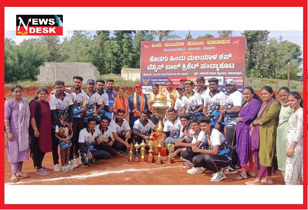 ಸುಂಟಿಕೊಪ್ಪ ಮೇ 20 NEWS DESK : ಕೊಡಗು ಹಿಂದೂ ಮಲಯಾಳಿ ಕ್ರಿಕೆಟ್ ಪಂದ್ಯಾವಳಿಯ ಪುರುಷರ ವಿಭಾಗದಲ್ಲಿ ಯಂಗ್ ಚಾಲೆಂಜರ್ ಐಗೂರು ತಂಡವು ಪ್ರಶಸ್ತಿಯನ್ನು ಮುಡಿಗೇರಿಸಿಕೊಂಡಿತು. ಮಾದಾಪುರ ಹಿಂದೂ ಮಾಲಯಾಳಿ ಕುಟುಂಬದ ವತಿಯಿಂದ ಮಾದಾಪುರ ಸರಕಾರಿ ಹಿರಿಯ ಪ್ರಾಥಮಿಕ ಶಾಲಾ ಮೈದಾನದಲ್ಲಿ ಆಯೋಜಿಸಲಾಗಿದ್ದ ಕೊಡಗು ಹಿಂದೂ ಮಲಯಾಳಿ ಕಪ್ ಟೆನ್ನಿಸ್ ಬಾಲ್ ಕ್ರಿಕೆಟ್ ಪಂದ್ಯಾವಳಿಯಲ್ಲಿ ಪುರುಷರ ವಿಭಾಗದಲ್ಲಿ ಐಗೂರು ಯಂಗ್ ಚಾಲೆಂಜರ್ಸ್ ಹಾಗೂ ಇಲೆವನ್ ಸ್ಟಾರ್ ಕಂಬಿಬಾಣೆ ತಂಡಗಳ ರೋಚಕ ಪಂದ್ಯಾವಳಿಯು ನಡೆದು ಮೊದಲು ಬ್ಯಾಟ್ ಕಂಬಿಬಾಣೆ ತಂಡ 6 ಓವರ್‍ಗಳ ಸಿಮೀತ ಪಂದ್ಯಾವಳಿಯಲ್ಲಿ 48 ರನ್‍ಗಳಿಗೆ ತನ್ನೆಲ್ಲಾ ವಿಕೆಟ್‍ಗಳನ್ನು ಕಳೆದುಕೊಂಡಿತು. ನಂತರ ಬ್ಯಾಂಟಿಗ್‍ಗೆ ಇಳಿದ ಯಂಗ್ ಚಾಲೆಂಜರ್ಸ್ ತಂಡವು 5 ವಿಕೆಟ್‍ಗಳನ್ನು ಕಳೆದುಕೊಂಡು ಇನ್ನು 3 ಎಸೆತ ಬಾಕಿ ಇರುವಂತೆ 49 ರನ್‍ಗಳಿಸಿ ಗೆಲುವು ಸಾಧಿಸುವ ಮೂಲಕ 33,000 ನಗದು ಹಾಗೂ ಆಕರ್ಷಕ ಟ್ರೋಫಿಯನ್ನು ತನ್ನದಾಗಿಸಿಕೊಂಡಿತು. ರನ್ರ್ಸ್ ತಂಡವು ರೂ 22,000 ಹಾಗೂ ಟ್ರೋಫಿಯನ್ನು ಪಡೆದುಕೊಂಡರು. ಐಗೂರು ತಂಡದ ಅಭಿಜಿತ್ ಬಿ ಜೌಟಗದ್ದೆ 27 ರನ್ ಬಾರಿಸುವ ಮೂಲಕ ಉತ್ತಮ ಬ್ಯಾಟ್ಸ್‍ಮ್ಯಾನ್ ಬಹುಮಾನ ಪಡೆದುಕೊಂಡರು. ಮಹಿಳಾ ಕ್ರಿಕೆಟ್‍ನಲ್ಲಿ ಮಲ್ದಾರೆ ಪ್ರಥಮ, ಹಟ್ಟಿಹೊಳೆ ದ್ವಿತೀಯ ಸ್ಥಾನವನ್ನು ಪಡೆದುಕೊಂಡರು. ಮಹಿಳಾ ಹಗ್ಗ ಜಗ್ಗಾಟದಲ್ಲಿ ಐಗೂರು ಭಜರಂಗಿ ಪ್ರಥಮ, ಮಾಲ್ದಾರೆ ದ್ವಿತೀಯ ಸ್ಥಾನ ಪಡೆದುಕೊಂಡರು.