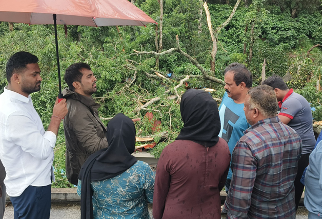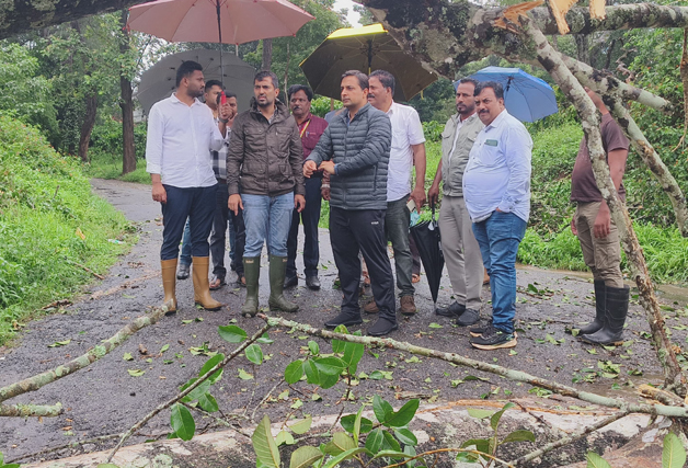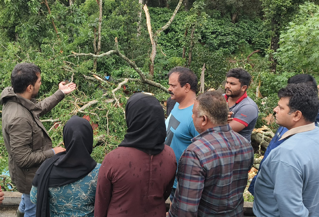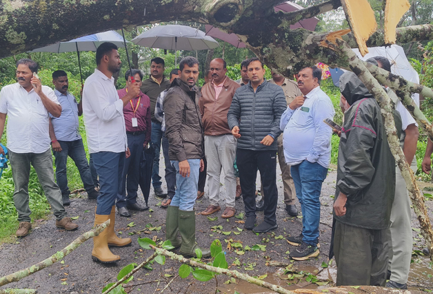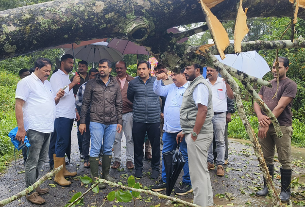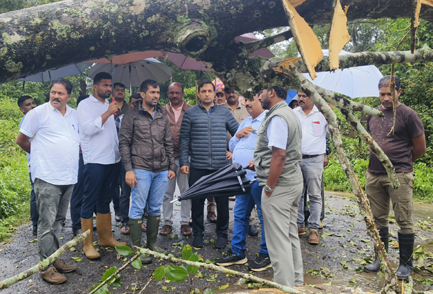 ಮಡಿಕೇರಿ ಮೇ 26 NEWS DESK : ಭಾರೀ ಗಾಳಿ, ಮಳೆಯಿಂದ ಹಾನಿಯಾದ ಪ್ರದೇಶಕ್ಕೆ ಮಡಿಕೇರಿ ಕ್ಷೇತ್ರದ ಶಾಸಕ ಡಾ.ಮಂತರ್ ಗೌಡ ಭೇಟಿ ನೀಡಿ ಪರಿಶೀಲಿಸಿದರು. ಕುಶಾಲನಗರದ 7 ನೇ ಹೊಸಕೋಟೆ ಪಂಚಾಯತ್ ವ್ಯಾಪ್ತಿಗೆ ಸೇರಿದ ಉರುಗುಪ್ಪ, 3ನೆ ವಾರ್ಡ್ ನ ಮೊಹಮದ್ ಅವರ ಮನೆಯ ಮೇಲೆ ಮರ ಬಿದ್ದು ಹಾನಿಯಾದ ಸ್ಥಳಕ್ಕೆ ಭೇಟಿ ನೀಡಿ ಪರಿಶೀಲನೆ ನಡೆಸಿದ ಶಾಸಕರು ಪರಿಹಾರಕ್ಕೆ ಸೂಚನೆ ನೀಡಿದರು. ಅಲ್ಲದೇ ವಾಲ್ನೂರು-ತ್ಯಾಗತೂರ್ ನ ಅತ್ತಿ ಮಂಗಲ ಜಂಕ್ಷನ್ ನಲ್ಲಿ ರಸ್ತೆಗೆ ಭಾರೀ ಗಾತ್ರದ ಮರ ಬಿದ್ದು ಹಾನಿಯಾದ ಹಾನಿಯಾಗಿರುವುದನ್ನು ಪರಿಶೀಲಿಸಿ, ಅಗತ್ಯ ಕ್ರಮ ಕೈಗೊಳ್ಳುವಂತೆ ಜಿಲ್ಲಾಧಿಕಾರಿಗಳಿಗೆ ಸೂಚಿಸಿದರು. ಈ ಸಂದರ್ಭ ಜಿಲ್ಲಾಧಿಕಾರಿ ವೆಂಕಟರಾಜಾ, ಕುಶಾಲನಗರ ಕಾಂಗ್ರೆಸ್ ಮುಖಂಡ ವಿ.ಪಿ.ಶಶಿಧರ್, ಕುಶಾಲನಗರ ತಹಶೀಲ್ದಾರ್ ಹಾಗೂ ಪಂಚಾಯಿತಿ ಪಿಡಿಒ, ಅರಣ್ಯ ಅಧಿಕಾರಿಗಳು, ಸ್ಥಳೀಯರು ಮುಖಂಡರು ಇದ್ದರು.