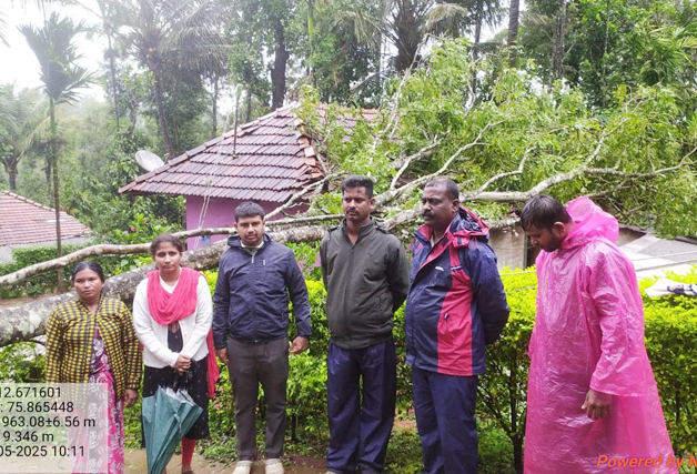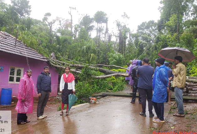 ಮಡಿಕೇರಿ ಮೇ 27 NEWS DESK : ಮಳೆ ಗಾಳಿಯಿಂದಾಗಿ ಶನಿವಾರಸಂತೆ ಹೋಬಳಿ ಕೋರಲಳ್ಳಿ ಗ್ರಾಮದ ಲಲಿತ ಎಂಬುವವರ ಮನೆ ಮೇಲೆ ಮರ ಬಿದ್ದು  ಹಾನಿಯಾಗಿದೆ. ಅರಣ್ಯ ಇಲಾಖಾ ಸಿಬ್ಬಂದಿಗಳು ಸ್ಥಳಕ್ಕೆ ಭೇಟಿ ನೀಡಿ ಮರವನ್ನು ತೆರವುಗೊಳಿಸಿದರು.
