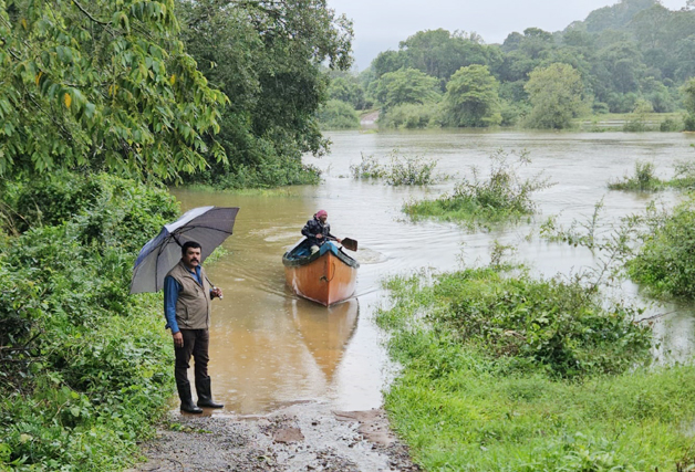 Facebook Twitter WhatsApp Email Telegram Copy Link ಮಡಿಕೇರಿ ಮೇ 27 NEWS DESK : ಭಾಗಮಂಡಲ ಹೋಬಳಿಯ ಬೇಂಗೂರು ವ್ಯಾಪ್ತಿಯ ದೋಣಿಕಾಡು ಎಂಬಲ್ಲಿ ಮಳೆಯಿಂದಾಗಿ ರಸ್ತೆಯು ಜಲಾವೃತವಾಗಿದ್ದು, ಸಾರ್ವಜನಿಕರ ಅನುಕೂಲಕ್ಕಾಗಿ ದೋಣಿಯನ್ನು ವ್ಯವಸ್ಥೆ ಕಲ್ಪಿಸಲಾಗಿದೆ.