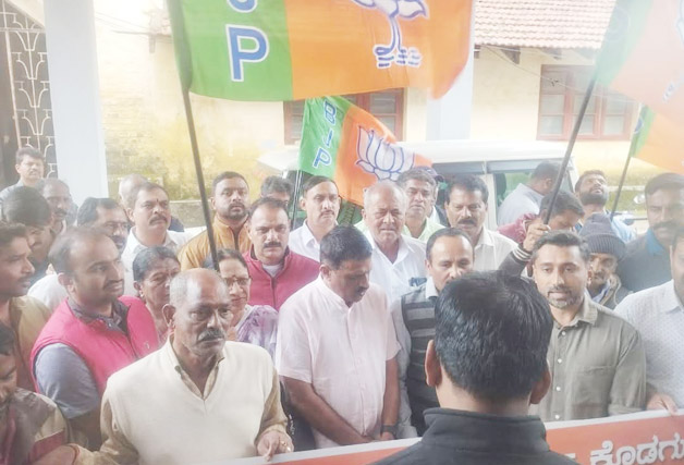 ಮಡಿಕೇರಿ ಮೇ 30 NEWS DESK : ಬಡ ರೋಗಿಗಳ ಅನುಕೂಲಕ್ಕಾಗಿ ಕೇಂದ್ರ ಸರ್ಕಾರ ಜಾರಿಗೆ ತಂದಿರುವ ಜನೌಷಧಿ ಕೇಂದ್ರಗಳನ್ನು ಮುಚ್ಚುವ ಪ್ರಸ್ತಾಪವನ್ನು ರಾಜ್ಯ ಸರ್ಕಾರ ಕೈಬಿಡಬೇಕೆಂದು ಒತ್ತಾಯಿಸಿ ಕೊಡಗು ಜಿಲ್ಲಾ ಬಿಜೆಪಿ ನೇತೃತ್ವದಲ್ಲಿ ಸೋಮವಾರಪೇಟೆ ಬಿಜೆಪಿ ಮಂಡಲ ಪ್ರತಿಭಟನೆ ನಡೆಸಿತು. ಸೋಮವಾರಪೇಟೆ ಸರ್ಕಾರಿ ಆಸ್ಪತ್ರೆ ಎದುರು ಜಮಾಯಿಸಿದ ಬಿಜೆಪಿ ಪ್ರಮುಖರು ಹಾಗೂ ಕಾರ್ಯಕರ್ತರು ಮೌನ ಪ್ರತಿಭಟನೆಯ ಮೂಲಕ ತಮ್ಮ ಅಸಮಾಧಾನವನ್ನು ವ್ಯಕ್ತಪಡಿಸಿದರು. ಪ್ರಧಾನಮಂತ್ರಿ ನರೇಂದ್ರ ಮೋದಿ ಅವರು ಬಡವರ ಹಾಗೂ ಮಧ್ಯಮ ವರ್ಗದ ರೋಗಿಗಳ ಆರೋಗ್ಯವನ್ನು ಕಾಪಾಡಬೇಕು ಎನ್ನುವ ಉದ್ದೇಶದಿಂದ ಕಡಿಮೆ ಬೆಲೆಯ ಔಷಧಿಗಳ ಮಾರಾಟಕ್ಕಾಗಿ ಕ್ರಮ ಕೈಗೊಂಡಿದ್ದಾರೆ. ಸರ್ಕಾರಿ ಆಸ್ಪತ್ರೆಗಳ ಆವರಣದಲ್ಲೇ ಜನೌಷಧಿ ಕೇಂದ್ರಗಳನ್ನು ಸ್ಥಾಪಿಸಿದ್ದಾರೆ. ಕೇಂದ್ರ ಸರ್ಕಾರದ ಬಡವರ ಪರವಾದ ಕಾಳಜಿಯನ್ನು ಸಹಿಸದ ರಾಜ್ಯ ಕಾಂಗ್ರೆಸ್ ಸರ್ಕಾರ ಜನೌಷಧಿ ಕೇಂದ್ರಗಳನ್ನು ಮುಚ್ಚುವ ಪ್ರಸ್ತಾಪ ಮಾಡಿದೆ ಎಂದು ಪ್ರತಿಭಟನಾಕಾರರು ಆರೋಪಿಸಿದರು. ಯಾವುದೇ ಕಾರಣಕ್ಕೂ ಜನೌಷಧಿ ಕೇಂದ್ರಗಳನ್ನು ಮುಚ್ಚಲು ಬಿಡುವುದಿಲ್ಲ, ಒಂದು ವೇಳೆ ಮುಚ್ಚಲು ಮುಂದಾದರೆ ರಾಜ್ಯವ್ಯಾಪಿ ಹೋರಾಟವನ್ನು ತೀವ್ರಗೊಳಿಸುವುದಾಗಿ ಪ್ರಮುಖರು ಎಚ್ಚರಿಕೆ ನೀಡಿದರು. ತಾಲ್ಲೂಕು ವೈದ್ಯಾಧಿಕಾರಿಗಳಿಗೆ ಮನವಿ ಪತ್ರ ಸಲ್ಲಿಸಿದ ಪ್ರತಿಭಟನಾಕಾರರು ನಂತರ ಮೆರವಣಿಗೆ ಮೂಲಕ ತಹಶೀಲ್ದಾರ್ ಕಚೇರಿಗೆ ತೆರಳಿ ಸರ್ಕಾರಕ್ಕೆ ಮನವಿ ನೀಡಿದರು. ಜಿಲ್ಲಾ ಬಿಜೆಪಿ ಅಧ್ಯಕ್ಷ ನಾಪಂಡ ರವಿ ಕಾಳಪ್ಪ, ಮಾಜಿ ಸಚಿವ ಎಂ.ಪಿ.ಅಪ್ಪಚ್ಚು ರಂಜನ್, ವಿಧಾನ ಪರಿಷತ್ ಮಾಜಿ ಸದಸ್ಯ ಎಸ್.ಜಿ.ಮೇದಪ್ಪ, ಬಿಜೆಪಿ ಜಿಲ್ಲಾ ಪ್ರಧಾನ ಕಾರ್ಯದರ್ಶಿ ಮಹೇಶ್ ಜೈನಿ, ಸೋಮವಾರಪೇಟೆ ಮಂಡಲ ಅಧ್ಯಕ್ಷ ಗೌತಮ್ ಗೌಡ, ಪ್ರಧಾನ ಕಾರ್ಯದರ್ಶಿ ಶರತ್, ಮಡಿಕೇರಿ ಮಂಡಲ ಅಧ್ಯಕ್ಷ ಉಮೇಶ್ ಸುಬ್ರಮಣಿ, ಜಿಲ್ಲಾ ಯುವ ಮೋರ್ಚಾ ಅಧ್ಯಕ್ಷ ಮಹೇಶ್ ತಿಮ್ಮಯ್ಯ, ಜಿಲ್ಲಾ ಉಪಾಧ್ಯಕ್ಷರು ಹುಲ್ಲೂರಿಕೊಪ್ಪದ ಮಾದಪ್ಪ, ಪ್ರಮುಖರಾದ ಆರ್.ಕೆ.ಚಂದ್ರು, ತಿಮ್ಮಯ್ಯ, ದರ್ಶನ್, ಜಗದೀಶ್ ಬಿ.ಕೆ, ಕವನ್ ಕಾವೇರಪ್ಪ, ಸೋಮೇಶ್, ಜಿ.ಪಂ ಮಾಜಿ ಉಪಾಧ್ಯಕ್ಷೆ ಲೋಕೇಶ್ವರಿ ಗೋಪಾಲ್ ಮತ್ತಿತರ ಕಾರ್ಯಕರ್ತರು ಪ್ರತಿಭಟನೆಯಲ್ಲಿ ಪಾಲ್ಗೊಂಡಿದ್ದರು.