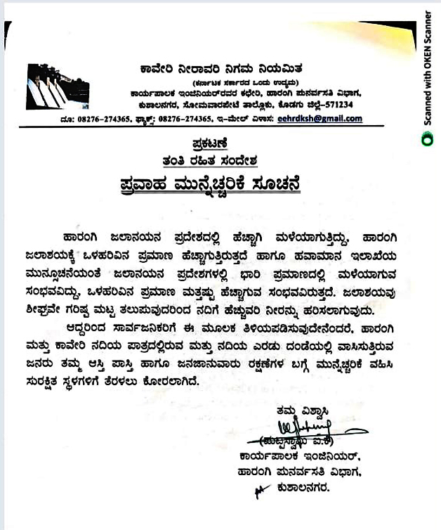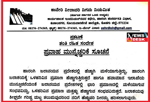 ಮಡಿಕೇರಿ ಜೂ.3 NEWS DESK : ಹಾರಂಗಿ ಜಲಾನಯನ ಪ್ರದೇಶದಲ್ಲಿ ಹೆಚ್ಚಾಗಿ ಮಳೆಯಾಗುತ್ತಿದ್ದು, ಹಾರಂಗಿ ಜಲಾಶಯಕ್ಕೆ ಒಳಹರಿವಿನ ಪ್ರಮಾಣ ಹೆಚ್ಚಾಗುತ್ತಿರುತ್ತದೆ ಹಾಗೂ ಹವಾಮಾನ ಇಲಾಖೆಯ ಮುನ್ಸೂಚನೆಯಂತೆ ಜಲಾನಯನ ಪ್ರದೇಶಗಳಲ್ಲಿ ಭಾರಿ ಪ್ರಮಾಣದಲ್ಲಿ ಮಳೆಯಾಗುವ ಸಂಭವವಿದ್ದು, ಒಳಹರಿವಿನ ಪ್ರಮಾಣ ಮತ್ತಷ್ಟು ಹೆಚ್ಚಾಗುವ ಸಂಭವವಿರುತ್ತದೆ. ಜಲಾಶಯವು ಶೀಘ್ರವೇ ಗರಿಷ್ಟ ಮಟ್ಟ ತಲುಪುವುದರಿಂದ ನದಿಗೆ ಹೆಚ್ಚುವರಿ ನೀರನ್ನು ಹರಿಸಲಾಗುವುದು. ಆದ್ದರಿಂದ ಹಾರಂಗಿ ಮತ್ತು ಕಾವೇರಿ ನದಿಯ ಪಾತ್ರದಲ್ಲಿರುವ ಮತ್ತು ನದಿಯ ಎರಡು ದಂಡೆಯಲ್ಲಿ ವಾಸಿಸುತ್ತಿರುವ ಜನರು ತಮ್ಮ ಆಸ್ತಿ ಪಾಸ್ತಿ ಹಾಗೂ ಜನಜಾನುವಾರು ರಕ್ಷಣೆಗಳ ಬಗ್ಗೆ ಮುನ್ನೆಚ್ಚರಿಕೆ ವಹಿಸಿ ಸುರಕ್ಷಿತ ಸ್ಥಳಗಳಿಗೆ ತೆರಳಲು ಹಾರಂಗಿ ಪುನರ್ವಸತಿ ವಿಭಾಗದ ಕಾರ್ಯಪಾಲಕ ಇಂಜಿನಿಯರ್ ಕೋರಿದ್ದಾರೆ.
