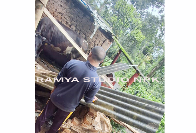 ನಾಪೋಕ್ಲು ಜೂ.17 NEWS DESK : ದನದ ಕೊಟ್ಟಿಗೆ ಕುಸಿದು ಅಪಾರ ನಷ್ಟ ಉಂಟಾಗಿರುವ ಘಟನೆ ಹೋದವಾಡ ಗ್ರಾಮದಲ್ಲಿ ನಡೆದಿದೆ. ಹೊದ್ದೂರು ಗ್ರಾಮ ಪಂಚಾಯಿತಿ ವ್ಯಾಪ್ತಿಯ ಹೊದವಾಡ ಗ್ರಾಮದ ನಿವಾಸಿ ಬಿ.ಬಿ.ದರ್ನಪ್ಪ ಎಂಬವರ ದನದ ಕೊಟ್ಟಿಗೆ ಮಳೆ ಗಾಳಿಗೆ ಕುಸಿದು ಬಿದ್ದು ನಷ್ಟ ಸಂಭವಿಸಿದೆ. ಕೊಟ್ಟಿಗೆಯಲ್ಲಿದ್ದ ಜಾನುವಾರುಗಳಿಗೆ ಸಣ್ಣ ಪುಟ್ಟ ಗಾಯಗಳಾಗಿದ್ದು, ಜಾನುವಾರುಗಳನ್ನು ರಕ್ಷಿಸಿ ಜೀವಪಾಯದಿಂದ ಪಾರು ಮಾಡಿದ್ದಾರೆ. ಘಟನಾ ಸ್ಥಳಕ್ಕೆ ಹೊದ್ದೂರು ಗ್ರಾಮ ಪಂಚಾಯಿತಿ ಕಾರ್ಯದರ್ಶಿ ಚಂದ್ರಶೇಖರ ಹಾಗೂ ಸಿಬ್ಬಂದಿಗಳು ಭೇಟಿ ನೀಡಿ ಪರಿಶೀಲಿಸಿ ಕ್ರಮ ಕೈಗೊಂಡಿದ್ದಾರೆ.