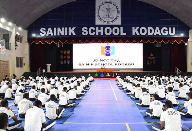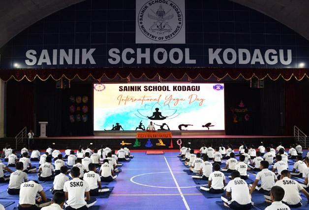ಕುಶಾಲನಗರ ಜೂ.21 NEWS DESK : ಕೊಡಗು ಸೈನಿಕ ಶಾಲೆಯಲ್ಲಿ 11ನೇ ಅಂತಾರಾಷ್ಟ್ರೀಯ ಯೋಗ ದಿನಾಚರಣೆಯನ್ನು “ಒಂದು ಭೂಮಿ, ಒಂದು ಆರೋಗ್ಯಕ್ಕಾಗಿ ಯೋಗ” ಎಂಬ ಶೀರ್ಷಿಕೆಯಡಿಯಲ್ಲಿ ಅರ್ಥಪೂರ್ಣವಾಗಿ ಆಚರಿಸಲಾಯಿತು. ಎನ್ಸಿಸಿ ಘಟಕದ ವತಿಯಿಂದ ಶಾಲೆಯ ಕುವೆಂಪು ವಿವಿಧೋದ್ದೇಶ ಸಭಾಂಗಣದಲ್ಲಿ ನಡೆದ ಕಾರ್ಯಕ್ರಮದಲ್ಲಿ ದೈಹಿಕ ಶಿಕ್ಷಕ ಸಿ.ಎಚ್.ಎಮ್ ಅನೂಪ್ ಚೌಹಾನ್ ಯೋಗಾಸನದ ವಿವಿಧ ಆಸನಗಳ ಪ್ರದರ್ಶನ ನೀಡಿ ಭಾಗವಹಿಸಿದವರಿಗೆ ಮಾರ್ಗದರ್ಶನ ನೀಡಿದರು. ಯೋಗಾಸನವು ಆರೋಗ್ಯದಲ್ಲಿ ಸ್ಥಿರತೆ, ಶಿಸ್ತು ಹಾಗೂ ಆನಂದಮಯ ಜೀವನಕ್ಕೆ ಅತಿ ಅವಶ್ಯಕವೆಂಬ ಅರಿವನ್ನು ವಿದ್ಯಾರ್ಥಿಗಳಲ್ಲಿ ಮೂಡಿಸಲಾಯಿತು. ಇದರೊಂದಿಗೆ ವಿದ್ಯಾರ್ಥಿಗಳು ತಮ್ಮ ದೈನಂದಿನ ಬದುಕಿನಲ್ಲಿ ಯೋಗವನ್ನು ಅಳವಡಿಸಿಕೊಳ್ಳುವ ಅಗತ್ಯತೆಯೊಂದಿಗೆ ಪ್ರಕೃತಿಯೊಂದಿಗೆ ಸಹ-ಜೀವನ ನಡೆಸಬೇಕೆನ್ನುವ ಜಾಗೃತಿಯನ್ನು ಮೂಡಿಸಲಾಯಿತು. ಕಾರ್ಯಕ್ರಮದಲ್ಲಿ ಶಾಲೆಯ ಪ್ರಾಂಶುಪಾಲ ಕರ್ನಲ್ ಅಮರ್ ಜೀತ್ ಸಿಂಗ್, ಆಡಳಿತಾಧಿಕಾರಿ ವಿಂಗ್ ಕಮಾಂಡರ್ ಪಿ.ಪ್ರಕಾಶ್ ರಾವ್, ಎನ್.ಸಿ.ಸಿ ಜೆಡಿ ಕಂಪನಿಯ ಕಮಾಂಡಿಂಗ್ ಅಧಿಕಾರಿ ಸ್ಕ್ವಾಡ್ರನ್ ಲೀಡರ್ ಮೊಹಮ್ಮದ್ ಶಾಜಿ, ಉಪಪ್ರಾಂಶುಪಾಲರು, ಎನ್ಸಿಸಿ ಘಟಕದ ಅಧಿಕಾರಿಗಳು ಹಾಗೂ ಶಾಲಾ ವೈದ್ಯಾಧಿಕಾರಿ ಡಾ. ಚಿನ್ಮಯ್ ಮತ್ತು ಶಾಲೆಯ ಎಲ್ಲಾ ವಿದ್ಯಾರ್ಥಿಗಳು ಬೋಧಕ-ಬೋಧಕೇತರ ವರ್ಗದವರು, ಎನ್ಸಿಸಿ ಸಿಬ್ಬಂದಿ ವರ್ಗ ಹಾಜರಿದ್ದರು.