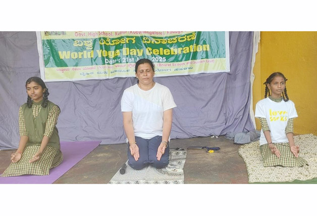 ಕೂಡಿಗೆ ಜೂ.21 NEWS DESK : ಕುಶಾಲನಗರ ತಾಲ್ಲೂಕಿನ ಕೂಡುಮಂಗಳೂರು(ಕೂಡ್ಲೂರು) ಸರ್ಕಾರಿ ಪ್ರೌಢಶಾಲೆಯಲ್ಲಿ ಶಾಲೆಯ ಎನ್.ಎಸ್.ಎಸ್.ಘಟಕ, ಭಾರತ್ ಸ್ಕೌಟ್ಸ್, ಗೈಡ್ಸ್ ಘಟಕ ಹಾಗೂ ರೆಡ್ ರಿಬ್ಬನ್ ಕ್ಲಬ್ ಆಶ್ರಯದಲ್ಲಿ “ಒಂದು ಭೂಮಿಗೆ, ಒಂದು ಆರೋಗ್ಯಕ್ಕಾಗಿ ಯೋಗ” ಎಂಬ ಘೋಷವಾಕ್ಯ (ಥೀಮ್) ದೊಂದಿಗೆ ವಿಶ್ವ ಯೋಗ ದಿನಾಚರಣೆಯನ್ನು ಆಚರಿಸಲಾಯಿತು. ಶಾಲಾ ವಿದ್ಯಾರ್ಥಿಗಳು ದೈಹಿಕ ಶಿಕ್ಷಣ ಶಿಕ್ಷಕಿ ಕೆ.ಟಿ.ಸೌಮ್ಯ ಮಾರ್ಗದರ್ಶನದಲ್ಲಿ ವಿವಿಧ ಪ್ರಾಣಾಯಾಮದೊಂದಿಗೆ ವಿವಿಧ ಭಂಗಿಗಳ ಆಸನಗಳ ಮೂಲಕ ಯೋಗ ಪ್ರದರ್ಶಿಸಿ ಗಮನ ಸೆಳೆದರು. ಮಕ್ಕಳು ವಿವಿಧ ಭಂಗಿಯ ಯೋಗಾಸನಗಳನ್ನು ಪ್ರದರ್ಶಿಸಿದರು. ಯೋಗ ದಿನದ ಮಹತ್ವ ಕುರಿತು ಮಾತನಾಡಿದ ಶಾಲಾ ಮುಖ್ಯ ಶಿಕ್ಷಕ ಟಿ.ಜಿ.ಪ್ರೇಮಕುಮಾರ್, ಯೋಗವು ನಮ್ಮ ಮನಸ್ಸು, ದೇಹ ಮತ್ತು ಭೂಮಿಯನ್ನು ಸಂಪರ್ಕಿಸುವ ಮೂಲಕ ದೈಹಿಕ, ಮಾನಸಿಕ ಆರೋಗ್ಯ ದೃಢತೆಗೆ ಸಹಕಾರಿಯಾಗಿದೆ ಎಂದರು.