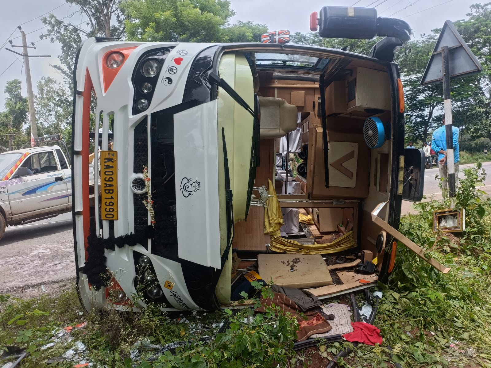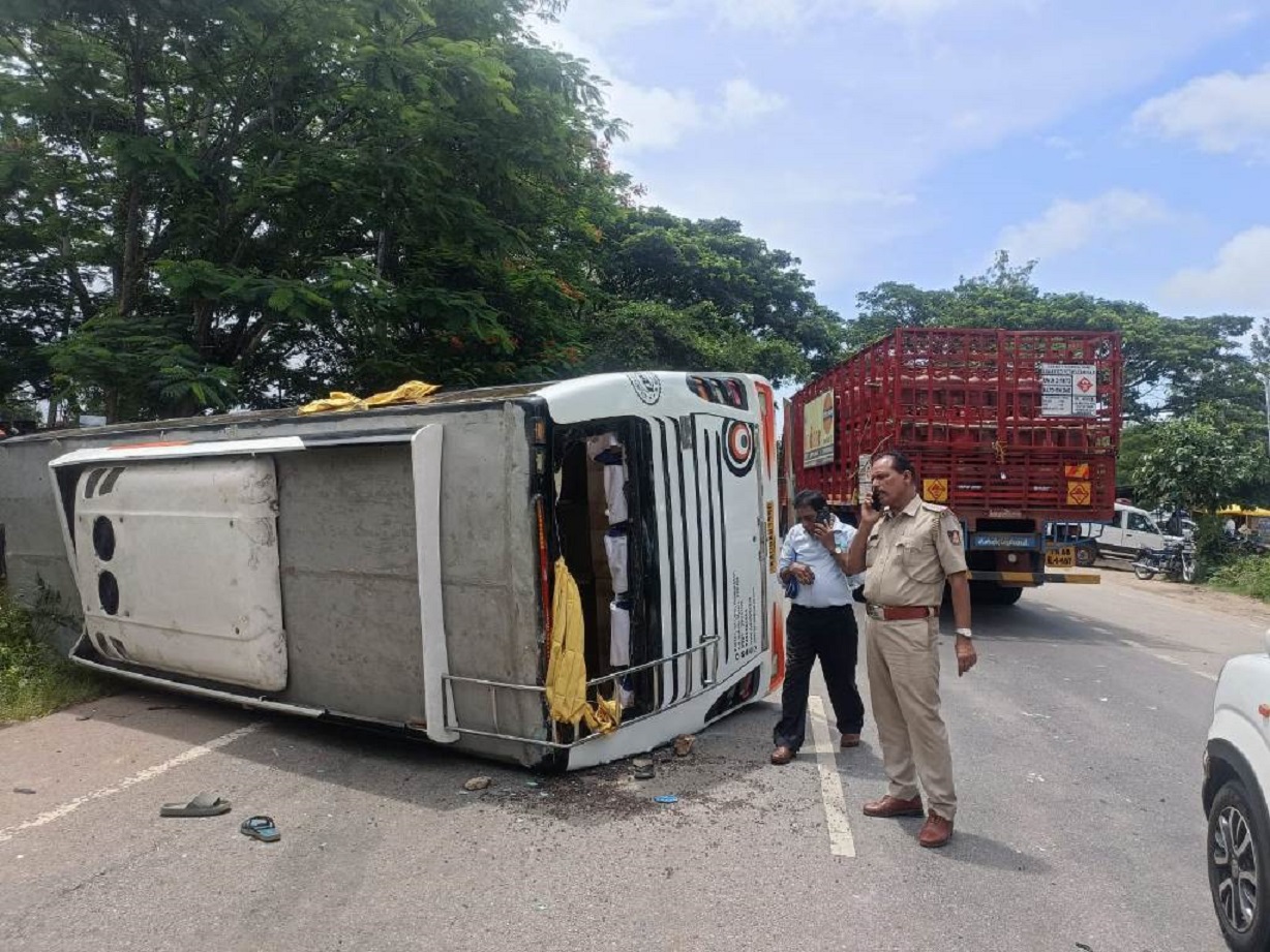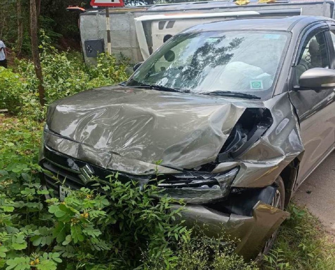 ಮಡಿಕೇರಿ NEWS DESK ಜೂ.22 : ಮೈಸೂರಿನಿಂದ ಮಡಿಕೇರಿಗೆ ವಿವಾಹ ಮಾತುಕತೆಗಾಗಿ ತೆರಳುತ್ತಿದ್ದ ಮಿನಿ ಬಸ್ ಪಲ್ಟಿಯಾದ ಘಟನೆ ಹುಣಸೂರು-ಮಡಿಕೇರಿ ಹೆದ್ದಾರಿಯ ಕಲ್ಬೆಟ್ಟ ಜಂಕ್ಷನ್ನಲ್ಲಿ ಭಾನುವಾರ ನಡೆದಿದೆ. ಮಿನಿ ಬಸ್ ಮತ್ತು ಲಾರಿ ನಡುವೆ ಡಿಕ್ಕಿ ಸಂಭವಿಸಿ ಮಿನಿ ಬಸ್ ಉರುಳಿ ಬಿದ್ದಿದ್ದು, ಐವರು ಗಂಭೀರವಾಗಿ ಗಾಯಗೊಂಡಿದ್ದಾರೆ. 17 ಮಂದಿ ಪ್ರಯಾಣಿಕರು ಸಣ್ಣಪುಟ್ಟ ಗಾಯಗಳೊಂದಿಗೆ ಆಸ್ಪತ್ರೆಯಲ್ಲಿ ಚಿಕಿತ್ಸೆ ಪಡೆದಿದ್ದಾರೆ. ಮೈಸೂರಿನಿಂದ ಮಡಿಕೇರಿಗೆ ವಿವಾಹ ವಿಚಾರದ ಮಾತುಕತೆಗಾಗಿ ಸುಮಾರು 25 ಮಂದಿ ಇದ್ದ ಮಿನಿ ಬಸ್ ತೆರಳುತ್ತಿತ್ತು. ಈ ವೇಳೆ ಕಲ್ ಬೆಟ್ಟ ಜಂಕ್ಷನ್ ಬಳಿ ವಿರಾಜಪೇಟೆ ರಸ್ತೆ ಕಡೆಯಿಂದ ಬಂದ ಲಾರಿ ಮತ್ತು ಮಿನಿ ಬಸ್ ನಡುವೆ ಡಿಕ್ಕಿ ಸಂಭವಿಸಿ ಬಸ್ ಉರುಳಿ ಬಿದ್ದಿದೆ. ಈ ನಡುವೆ ಪಿರಿಯಾಪಟ್ಟಣ ಕಡೆಯಿಂದ ಬರುತ್ತಿದ್ದ ಸುಳ್ಯ ಮೂಲದ ಕಾರು ಕೂಡ ಲಾರಿಗೆ ಡಿಕ್ಕಿಯಾಗಿದೆ. ಕಾರು ಜಖಂಗೊಂಡಿದ್ದು, ಕಾರ್ ಏರ್ ಬ್ಯಾಗ್ ಇದ್ದ ಕಾರಣ ಕಾರಿನಲ್ಲಿದ್ದವರು ಪ್ರಾಣಾಪಾಯದಿಂದ ಪಾರಾಗಿದ್ದಾರೆ. ಚಾಲಕ ಮಂಜು, ಮೈಸೂರಿನ ಉಮೇಶ್, ರಂಜಿತಾ, ರೂಪಾ, ಜ್ಯೋತಿ, ಹರ್ಷಿತ, ಸಿಂಚನ, ರಶ್ಮಿ, ಚಿರಾಗ್, ಪ್ರಶಾಂತ್, ಗಾಯತ್ರಿ, ರಾಘವೇಂದ್ರಸ್ವಾಮಿ, ಉತ್ತಮ್, ಶಶಿಕುಮಾರ್, ಭವನ್, ನಿಶ್ಚಲ, ರಶ್ಮಿ, ಇಲವಾಲದ ಪ್ರಿಯಾ, ಯಶೋಧ, ಹುಣಸೂರಿನ ಭುವನೇಶ್ವರಿ, ಕಡಕೊಳದ ಚಂದನ್ ಗಾಯಗೊಂಡವರು. ಹುಣುಸೂರು ಗ್ರಾಮಾಂತರ ಪೊಲೀಸರು ದೂರು ದಾಖಲಿಸಿಕೊಂಡಿದ್ದಾರೆ.