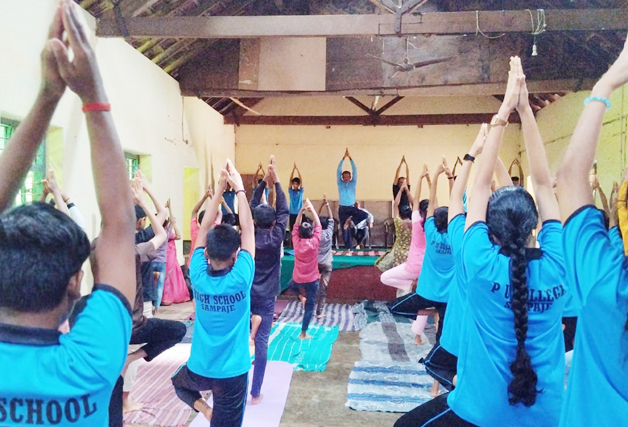 ನಾಪೋಕ್ಲು ಜೂ.23 NEWS DESK : ನಾಪೋಕ್ಲು ವ್ಯಾಪ್ತಿಯ ವಿವಿಧ ಶಾಲೆಗಳಲ್ಲಿ ಅಂತರಾಷ್ಟ್ರೀಯ ಯೋಗ ದಿನವನ್ನು ಆಚರಿಸಲಾಯಿತು. ಶ್ರೀರಾಮ ಟ್ರಸ್ಟ್ ಆಂಗ್ಲ ಮಾಧ್ಯಮ ಶಾಲೆಯಲ್ಲಿ ನಡೆದ ಯೋಗ ದಿನಾಚರಣೆ ಕಾರ್ಯಕ್ರಮದಲ್ಲಿ ಪ್ರಾಂಶುಪಾಲರಾದ ಬಿ.ಎಂ.ಶಾರದ ಮಾತನಾಡಿ ಯೋಗದಿಂದ ದೈಹಿಕ ಹಾಗೂ ಮಾನಸಿಕ ಆರೋಗ್ಯವನ್ನು ಕಾಪಾಡಿಕೊಳ್ಳಬಹುದು. ನಿತ್ಯ ಜೀವನದಲ್ಲಿ ಯೋಗವನ್ನು ಅಳವಡಿಸಿಕೊಂಡು ವಿದ್ಯಾರ್ಥಿಗಳು ಸದೃಢ ಆಗಬೇಕು ಎಂದು ಕರೆ ನೀಡಿದರು. ಕಾರ್ಯಕ್ರಮದಲ್ಲಿ ನಿವೃತ್ತ ಪ್ರಾಂಶುಪಾಲ ಪ್ರೊ.ಕಲ್ಯಾಟಂಡ ಪೂಣಚ್ಚ, ಸಂಸ್ಥೆಯ ನಿರ್ದೇಶಕರು, ಶಿಕ್ಷಕ ವೃಂದದವರು ಹಾಜರಿದ್ದರು. ದೈಹಿಕ ಶಿಕ್ಷಣ ಶಿಕ್ಷಕಿ ಸರಿತ ವಿದ್ಯಾರ್ಥಿಗಳಿಂದ ವಿವಿಧ ಯೋಗಾಸನಗಳನ್ನು ನಡೆಸಿಕೊಟ್ಟರು. ಸಂಪಾಜೆ ಸಂಯುಕ್ತ ಪದವಿ ಪೂರ್ವ ಕಾಲೇಜಿನಲ್ಲಿ ಯೋಗ ದಿನಾಚರಣೆಯ ಅಂಗವಾಗಿ ಯೋಗದ ಐತಿಹಾಸಿಕ ಹಿನ್ನಲೆ ಮತ್ತು ಯುವ ಪೀಳಿಗೆಗೆ ಯೋಗದ ಮಹತ್ವವನ್ನು ಸಂಸ್ಥೆಯ ಆಡಳಿತ ಮಂಡಳಿಯ ಸಂಚಾಲಕ ಎಂ.ಶಂಕರನಾರಾಯಣ ಭಟ್ ವಿದ್ಯಾರ್ಥಿಗಳಿಗೆ ಮಾಹಿತಿ ನೀಡಿದರು. ವಿವಿಧ ಯೋಗಾಸನಗಳ ಪ್ರಾತ್ಯಕ್ಷಿಕೆಯನ್ನು ದೈಹಿಕ ಶಿಕ್ಷಕ ಕುಶಾಲಪ್ಪ ನಡೆಸಿಕೊಟ್ಟರು. ಯೋಗದಿನದ ಮಹತ್ವದ ಬಗ್ಗೆ ವಿದ್ಯಾರ್ಥಿಗಳಿಗೆ ಪ್ರಬಂಧ ಸ್ಪರ್ಧೆಯನ್ನು ಏರ್ಪಡಿಸಲಾಯಿತು. ಸ್ಪರ್ಧೆಯ ಬಹುಮಾನಗಳ ಪ್ರಾಯೋಜಕತ್ವವನ್ನು ಸಂಸ್ಥೆಯ ಆಡಳಿತ ಮಂಡಳಿಯ ಕಾರ್ಯಕಾರಿ ನಿರ್ದೇಶಕ ಯು.ಪಿ.ಜಯರಾಮ ವಹಿಸಿದ್ದರು. ಕಾರ್ಯಕ್ರಮದಲ್ಲಿ ಉಪನ್ಯಾಸಕ, ಅಧ್ಯಾಪಕ ವೃಂದದವರು ಭಾಗವಹಿಸಿದರು. ಮುಖ್ಯ ಶಿಕ್ಷಕ ಎ.ಐತ್ತಪ್ಪ ಸ್ವಾಗತಿಸಿದರು. ಉಪನ್ಯಾಸಕ ಚೆನ್ನಬಸಪ್ಪ ವಂದಿಸಿದರು.