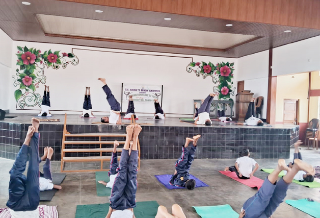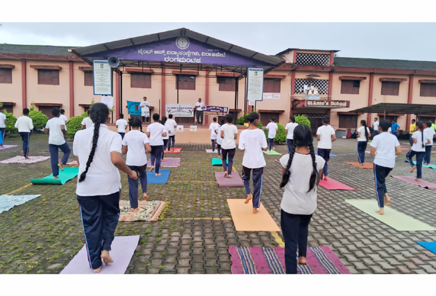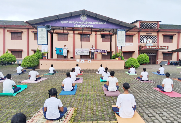 ವಿರಾಜಪೇಟೆ ಜೂ.23 NEWS DESK : ಸಂತ ಅನ್ನಮ್ಮ ಪ್ರೌಢ ಶಾಲೆಯ ಎನ್‍ಸಿಸಿ ಘಟಕದ ವತಿಯಿಂದ ಅಂತರರಾಷ್ಟ್ರೀಯ ಯೋಗ ದಿನವನ್ನು ಆಚರಿಸಲಾಯಿತು. ಕಾರ್ಯಕ್ರಮವನ್ನು ಸಂತ ಅನ್ನಮ್ಮ ವಿದ್ಯಾಸಂಸ್ಥೆಗಳ ವ್ಯವಸ್ಥಾಪಕ ರೆ.ಫಾ.ಜೇಮ್ಸ್ ಡೊಮಿನಿಕ್  ಉದ್ಘಾಟಿಸಿ, ಯೋಗದ ಮಹತ್ವದ ಬಗ್ಗೆ ತಿಳಿಸಿದರು. ಯೋಗ ಗುರುಗಳಾದ ಸವಿತಾ ಉತ್ತಪ್ಪ ಹಾಗೂ ಉತ್ತಮನ್ ವಿದ್ಯಾರ್ಥಿಗಳಿಗೆ ಯೋಗಾಭ್ಯಾಸವನ್ನು ಮಾಡಿಸಿ ಯೋಗದ ಪಾತ್ರವನ್ನು ವಿವರಿಸಿದರು. ವಿವಿಧ ಆಸನಗಳ ಪ್ರಾತ್ಯಕ್ಷಿಕೆಯನ್ನು ನಡೆಸಿಕೊಟ್ಟರು. ಈ ಸಂದರ್ಭ ಪ್ರೌಢ ಶಾಲಾ ಮುಖ್ಯ ಶಿಕ್ಷಕ ಬೆನ್ನಿ ಜೋಸೆಫ್, ಏರ್ ಫೋರ್ಸ್ ಎನ್ ಸಿ ಸಿ ಅಧಿಕಾರಿ ಅಬ್ದುಲ್ ಮುನೀರ್, ಆರ್ಮಿ ಎನ್ ಸಿ ಸಿ ಘಟಕದ ಅಧಿಕಾರಿ ಸಹನಾ, ಶಿಕ್ಷಕರಾದ ರೂಪ, ಲಕ್ಷ್ಮೀಶ ಇತರರು ಹಾಜರಿದ್ದರು.