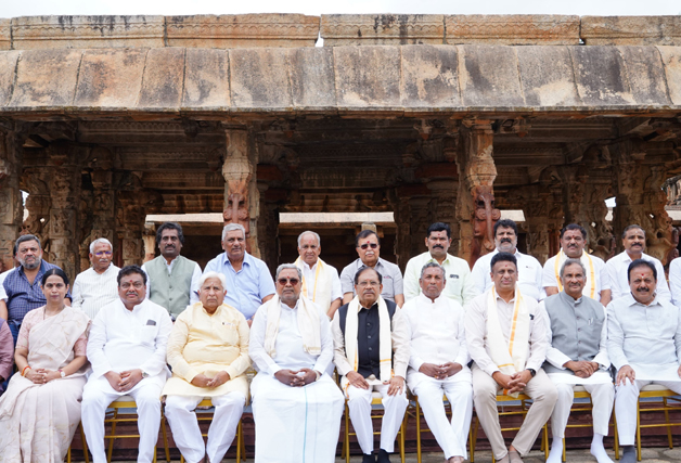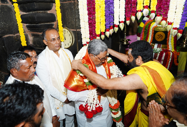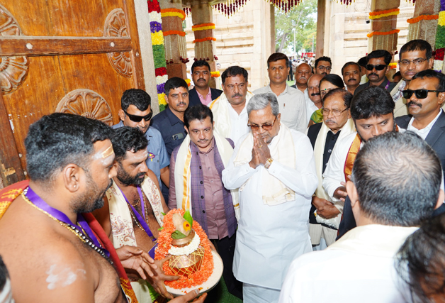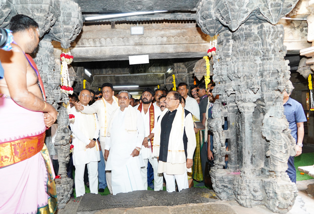 Facebook Twitter WhatsApp Email Telegram Copy Link ಬೆಂಗಳೂರು ಜು.2 NEWS DESK : ಮುಖ್ಯಮಂತ್ರಿ ಸಿದ್ದರಾಮಯ್ಯ ಅವರು ನಂದಿಬೆಟ್ಟದ ವಿಶೇಷ ಸಂಪುಟ ಸಭೆಗೆ ತೆರಳುವ ಮುನ್ನ ಶ್ರೀ ಭೋಗ ನಂದೀಶ್ವರ ದೇವಸ್ಥಾನಕ್ಕೆ ಸಂಪುಟ ಸಹದ್ಯೋಗಿಗಳ ಜೊತೆ ಭೇಟಿ ನೀಡಿ ನಂದೀಶ್ವರನ ದರ್ಶನ ಪಡೆದು, ಪೂಜೆ ಸಲ್ಲಿಸಿದರು.