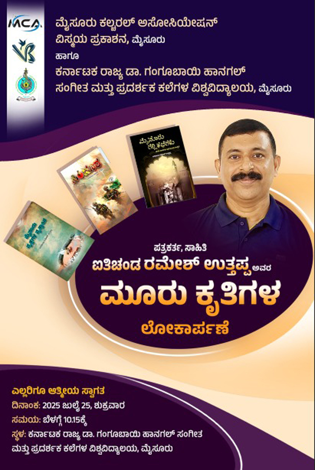 *ಪತ್ರಕರ್ತ ಐತಿಚಂಡ ರಮೇಶ್‌ ಉತ್ತಪ್ಪ ಅವರ 3 ಕೃತಿಗಳ ಬಿಡುಗಡೆ : ಮೊದಲ ಬಾರಿಗೆ ಮೈಸೂರಿನ ಗಲ್ಲಿ, ವೃತ್ತಗಳ ಕುರಿತು ದಾಖಲೆ*