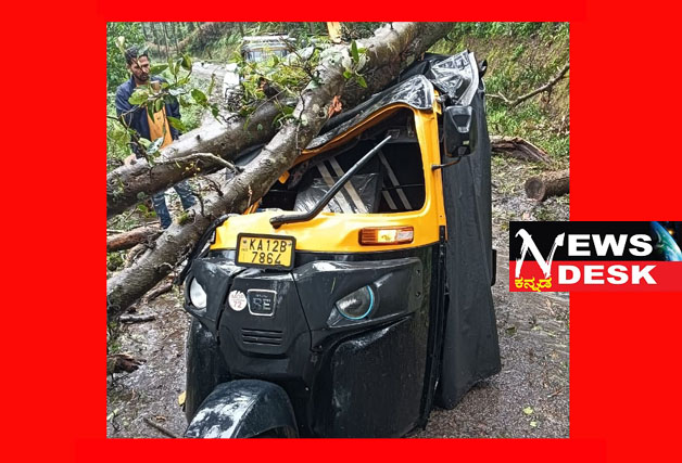 *ಚಲಿಸುತ್ತಿದ್ದ ಆಟೋರಿಕ್ಷಾ ಮೇಲೆ ಮರ ಬಿದ್ದು ಹಾನಿ : ಕುಂಬೂರಿನಲ್ಲಿ ಘಟನೆ*