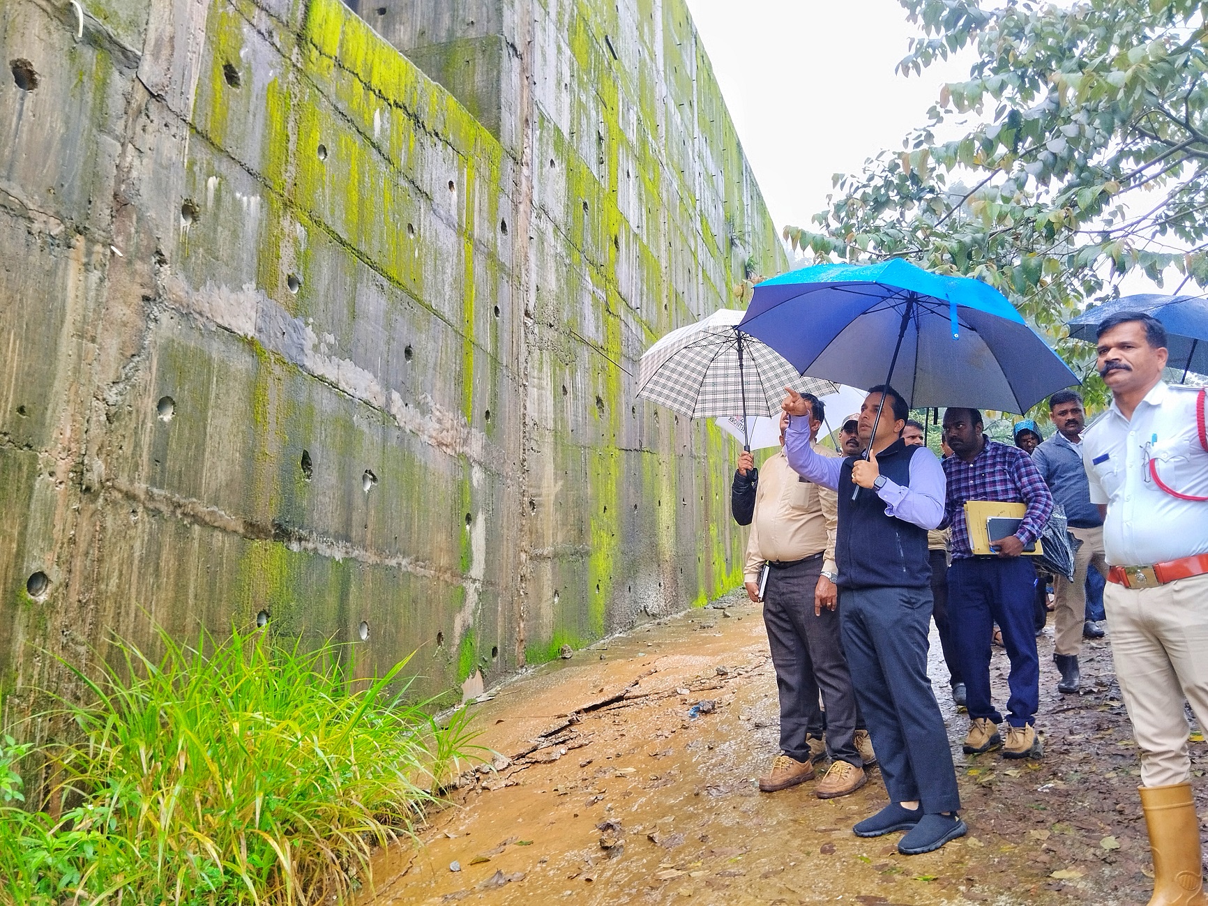 ಮಡಿಕೇರಿ NEWS DESK ಜು.31 : ನಿರಂತರ ಮಳೆಯಿಂದ ಮಡಿಕೇರಿ- ಸಂಪಾಜೆ ಹೆದ್ದಾರಿಯ ಬೃಹತ್ ತಡೆಗೋಡೆಯಲ್ಲಿ ಬಿರುಕು ಕಾಣಿಸಿಕೊಂಡಿದೆ. ಮುಂಜಾಗ್ರತಾ ಕ್ರಮವಾಗಿ ತಡೆಗೋಡೆ ಕೆಳಭಾಗದ ಪ್ರದೇಶದ ನಿವಾಸಿಗಳನ್ನು ಸ್ಥಳಾಂತರಿಸಲಾಗಿದೆ. ಕೊಡಗು ಜಿಲ್ಲೆಯಲ್ಲಿ 2018 ರಲ್ಲಿ ಸಂಭವಿಸಿದ ಜಲಸ್ಫೋಟ ಮತ್ತು ಭೂಕುಸಿತದಲ್ಲಿ ಹಲವು ಪ್ರದೇಶಗಳು ಅಪಾಯಕ್ಕೆ ಸಿಲುಕಿದ್ದವು. ಮಡಿಕೇರಿ ನಗರದ ಸಮೀಪ ಮಂಗಳೂರಿಗೆ ತೆರಳುವ ಹೆದ್ದಾರಿ ಕೂಡ ಕುಸಿದು ವಾಹನ ಸಂಚಾರಕ್ಕೆ ಅಡಚಣೆ ಉಂಟಾಗಿತ್ತು. ಪತ್ರಿವರ್ಷ ಭೂಕುಸಿತ ಉಂಟಾಗುವ ಅಪಾಯವಿದ್ದ ಕಾರಣ ಸರಕಾರ ಬೃಹತ್ ತಡೆಗೋಡೆಯನ್ನು ನಿರ್ಮಿಸಿತ್ತು. ಆದರೆ ಕಳೆದ ಒಂದು ತಿಂಗಳಿನಿಂದ ಮಡಿಕೇರಿ ತಾಲ್ಲೂಕಿನಲ್ಲಿ ಗಾಳಿ ಸಹಿತ ಧಾರಾಕಾರ ಮಳೆಯಾಗುತ್ತಿರುವುದರಿಂದ ಮಂಗಳೂರು ರಸ್ತೆಯ ತಡೆಗೋಡೆಯಲ್ಲಿ ಬಿರುಕು ಕಾಣಿಸಿಕೊಂಡಿದೆ. ಇಂದು ಸ್ಥಳಕ್ಕೆ ಭೇಟಿ ನೀಡಿದ ಅಧಿಕಾರಿಗಳು ಸುರಕ್ಷತೆಯ ದೃಷ್ಟಿಯಿಂದ ತಡೆಗೋಡೆ ಕೆಳಭಾಗದ ನಿವಾಸಿಗಳನ್ನು ರೆಡ್ ಕ್ರಾಸ್ ಸಂಸ್ಥೆಯ ಭವನಕ್ಕೆ ಸ್ಥಳಾಂತರಿಸಿದ್ದಾರೆ. ರೆಡ್ ಕ್ರಾಸ್ ಭವನದಲ್ಲಿ ಆಶ್ರಯ ಪಡೆದಿರುವ ನಿವಾಸಿಗಳನ್ನು ಕಂದಾಯ ಇಲಾಖೆ ಹಾಗೂ ನಗರಸಭೆಯ ಅಧಿಕಾರಿಗಳು ಭೇಟಿ ಮಾಡಿ ಧೈರ್ಯ ತುಂಬಿದರು. ಊಟ, ಉಪಹಾರ ಸೇರಿದಂತೆ ಮೂಲಭೂತ ಸೌಲಭ್ಯವನ್ನು ಕಲ್ಪಿಸಲಾಗಿದೆ. *ಜಿಲ್ಲಾಧಿಕಾರಿ ಭೇಟಿ* ತಡೆಗೋಡೆಯಲ್ಲಿ ಬಿರುಕು ಕಾಣಿಸಿಕೊಂಡ ಹಿನ್ನೆಲೆ ಜಿಲ್ಲಾಧಿಕಾರಿ ವೆಂಕಟ್ ರಾಜಾ ಅವರು ಸ್ಥಳಕ್ಕೆ ಭೇಟಿ ನೀಡಿ ಪರಿಶೀಲನೆ ನಡೆಸಿದರು. ಅಗತ್ಯ ಮುಂಜಾಗ್ರತಾ ಕ್ರಮಗಳನ್ನು ಕೈಗೊಳ್ಳುವಂತೆ ಅಧಿಕಾರಿಗಳಿಗೆ ಸೂಚನೆ ನೀಡಿದರು. ಪೊಲೀಸ್ ಅಧಿಕಾರಿಗಳು ಕೂಡ ಸ್ಥಳಕ್ಕೆ ಭೇಟಿ ನೀಡಿ ಬ್ಯಾರಿಕೇಡ್ ಗಳನ್ನು ಅಳವಡಿಸುವ ಮೂಲಕ ವಾಹನಗಳ ಸುರಕ್ಷಿತ ಮತ್ತು ಸುಗಮ ಸಂಚಾರಕ್ಕೆ ಕ್ರಮ ಕೈಗೊಂಡಿದ್ದಾರೆ. ಭಾರೀ ವಾಹನಗಳ ಸಂಚಾರವನ್ನು ಜಿಲ್ಲಾಡಳಿತ ಈಗಾಗಲೇ ನಿಷೇಧಿಸಿದೆ.