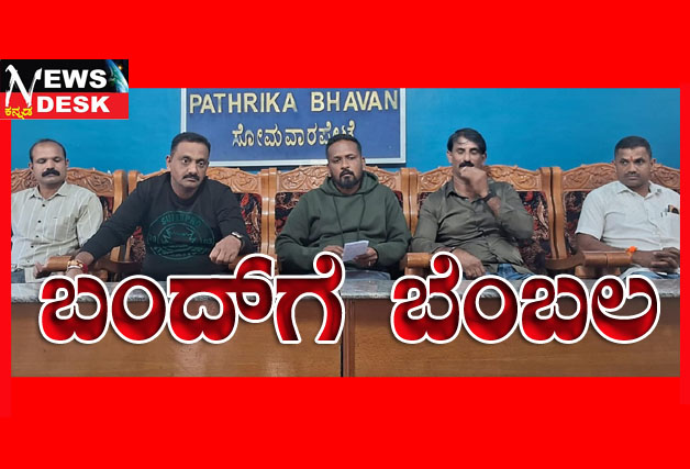 ಸೋಮವಾರಪೇಟೆ NEWS DESK ಆ.10 : ಸಿ ಮತ್ತು ಡಿ ಕೃಷಿ ಭೂಮಿ ಹಕ್ಕಿಗಾಗಿ ರೈತ ಹೋರಾಟ ಸಮಿತಿ ಆ.12ರಂದು ಕರೆ ನೀಡಿರುವ ಸೋಮವಾರಪೇಟೆ ತಾಲ್ಲೂಕು ಬಂದ್ಗೆ ಬಿಜೆಪಿ ಕೃಷಿಮೋರ್ಚಾ ಹಾಗೂ ಮಂಡಲ ಬಿಜೆಪಿ ಸಂಪೂರ್ಣ ಬೆಂಬಲ ಸೂಚಿಸಿದೆ. ಸುದ್ದಿಗೋಷ್ಠಿಯಲ್ಲಿ ಮಾತನಾಡಿದ ಕೃಷಿಮೋರ್ಚಾದ ಜಿಲ್ಲಾ ಕಾರ್ಯದರ್ಶಿ ಶರತ್ಚಂದ್ರ ಅವರು ಬಿಜೆಪಿ ಶಕ್ತಿ ಕೇಂದ್ರ, ಕೃಷಿ ಮೋರ್ಚಾದ ಸದಸ್ಯರುಗಳು ಬಂದ್ ಹಾಗೂ ಪ್ರತಿಭಟನೆಯಲ್ಲಿ ಸ್ವಯಂಪ್ರೇರಿತರಾಗಿ ಭಾಗವಹಿಸಲಿದ್ದಾರೆ ಎಂದು ತಿಳಿಸಿದರು. ಕಳೆದ ಎರಡೂವರೆ ವರ್ಷಗಳಿಂದ ಕಾಂಗ್ರೆಸ್ ಸರ್ಕಾರ ರೈತ ವಿರೋಧಿ ಕಾನೂನುಗಳನ್ನು ತರುವ ಮೂಲಕ ಗೊಂದಲ ಸೃಷ್ಟಿಸುತ್ತಿದೆ ಎಂದು ಆರೋಪಿಸಿದರು. ಹೋರಾಟವನ್ನು ತೀವ್ರಗೊಳಿಸುವ ಎಚ್ಚರಿಕೆ ನೀಡಿದರು. ಸುದ್ದಿಗೋಷ್ಠಿಯಲ್ಲಿ ಬಿಜೆಪಿ ಮಂಡಲ ಕಾರ್ಯದರ್ಶಿ ಎಸ್.ಆರ್.ಸೋಮೇಶ್, ಪ್ರಮುಖರಾದ ಭಾನುಪ್ರಕಾಶ್, ರವಿ, ಕಿಬ್ಬೆಟ್ಟ ಮಧು ಇದ್ದರು.
