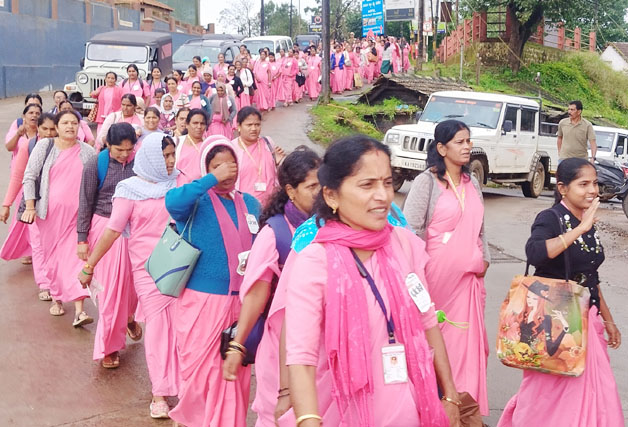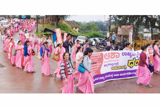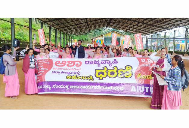 ಮಡಿಕೇರಿ ಆ.12 NEWS DESK : ಮಾಸಿಕ ಕನಿಷ್ಟ 10 ಸಾವಿರ ರೂ. ಗೌರವಧನ ಸೇರಿದಂತೆ ವಿವಿಧ ಬೇಡಿಕೆಗಳ ಈಡೇರಿಕೆಗಾಗಿ ಒತ್ತಾಯಿಸಿ ರಾಜ್ಯ ಸಂಯುಕ್ತ ಆಶಾ ಕಾರ್ಯಕರ್ತೆಯರ ಸಂಘ ಕೊಡಗು ಜಿಲ್ಲಾ ಸಮಿತಿ ಮಡಿಕೇರಿಯಲ್ಲಿ ಪ್ರತಿಭಟನೆ ನಡೆಸಿತು. ಆ.12 ರಿಂದ 14ರ ವರೆಗೆ ರಾಜ್ಯಾದ್ಯಂತ ಅಹೋರಾತ್ರಿ ಪ್ರತಿಭಟನೆಯ ಭಾಗವಾಗಿ ನಗರದ ಗಾಂಧಿ ಮೈದಾನದಿಂದ ಬಾಲಭವನದವರೆಗೆ ಪ್ರತಿಭಟನಾ ಮೆರವಣಿಗೆ ನಡೆಸಿದ ಆಶಾ ಕಾರ್ಯಕರ್ತರು ಸರ್ಕಾರದ ವಿರುದ್ಧ ಘೋಷಣೆಯನ್ನು ಕೂಗಿ, ಬೇಡಿಕೆಗಳ ಈಡೇರಿಕೆಗಾಗಿ ಆಗ್ರಹಿಸಿದರು. ಕಳೆದ ಜನವರಿಯಲ್ಲಿ ನಡೆದ ಹೋರಾಟದ ಸಂದರ್ಭ ಮುಖ್ಯಮಂತ್ರಿ ಸಿದ್ದರಾಮಯ್ಯ ಅವರು ಸಂಘದ ಪದಾಧಿಕಾರಿಗಳೊಂದಿಗೆ ಸಭೆ ನಡೆಸಿ 10 ಸಾವಿರ ರೂ. ಗೌರವಧನ ನೀಡುವುದಾಗಿ ಭರವಸೆ ನೀಡಿದ್ದರು. ಆದರೆ ಏಳು ತಿಂಗಳು ಕಳೆದರೂ ಯಾವುದೇ ಆದೇಶವಾಗಿಲ್ಲ ಎಂದು ಆಶಾ ಕಾರ್ಯಕರ್ತರು ದೂರಿದರು. ಸರ್ಕಾರವು ತನ್ನ ಭರವಸೆಗಳನ್ನು ಈಡೇರಿಸದಿದ್ದರೆ ಉಗ್ರ ಹೋರಾಟ ಮಾಡುವುದಾಗಿ ಎಚ್ಚರಿಕೆ ನೀಡಿದರು. ಆಶಾ ಕಾರ್ಯಕರ್ತೆಯರಿಗೆ ಪ್ರೋತ್ಸಾಹಧನ ಹೆಚ್ಚಳ ಮಾಡಬೇಕು, ಯಾವುದೇ ಆಶಾ ಕಾರ್ಯಕರ್ತೆಯರನ್ನು ಕೆಲಸದಿಂದ ತೆಗೆಯಬಾರದು, ಅವೈಜ್ಞಾನಿಕವಾಗಿರುವ ಕಾರ್ಯನಿರ್ವಹಣಾ ಮೌಲ್ಯಮಾಪನ ಕೈಬಿಡಬೇಕು, ಆಶಾ ಸುಗಮಕಾರರನ್ನು ಸೂಕ್ತ ವೇತನದೊಂದಿಗೆ ಮುಂದುವರೆಸಬೇಕು, ನಿವೃತ್ತ ಆಶಾಗಳಿಗೆ ಪಶ್ಚಿಮ ಬಂಗಾಳ ಮಾದರಿಯಲ್ಲಿ ಇಡಿಗಂಟು ನೀಡಬೇಕು, ನಗರ ಆಶಾಗಳಿಗೆ ರೂ.2 ಸಾವಿರ ಗೌರವಧನ ಹೆಚ್ಚಿಸಬೇಕೆಂದು ಒತ್ತಾಯಿಸಿದರು. ಸಂಘದ ಜಿಲ್ಲಾಧ್ಯಕ್ಷೆ ತೆಕ್ಕಡೆ ಪೂರ್ಣಿಮಾ, ಜಿಲ್ಲಾ ಕಾರ್ಯದರ್ಶಿ ಕೆ.ಎಂ.ನಾಗಮಣಿ, ಸೋಮವಾರಪೇಟೆ ತಾಲ್ಲೂಕು ಅಧ್ಯಕ್ಷೆ ಐಮುಡಿಯಂಡ ಶಾಂತಿ ಗಣೇಶ್, ಸದಸ್ಯರಾದ ಬಿ.ವಿ.ವನಿತಾ ಹಾಗೂ ಎನ್.ಶ್ರೀಮತಿ ಸೇರಿದಂತೆ ವಿವಿಧೆಡೆಯ ಆಶಾ ಕಾರ್ಯಕರ್ತರು ಪಾಲ್ಗೊಂಡಿದ್ದರು.