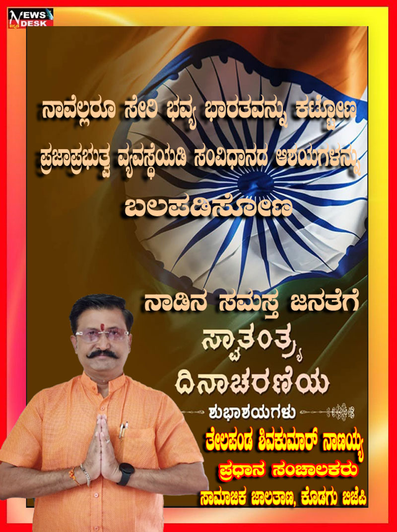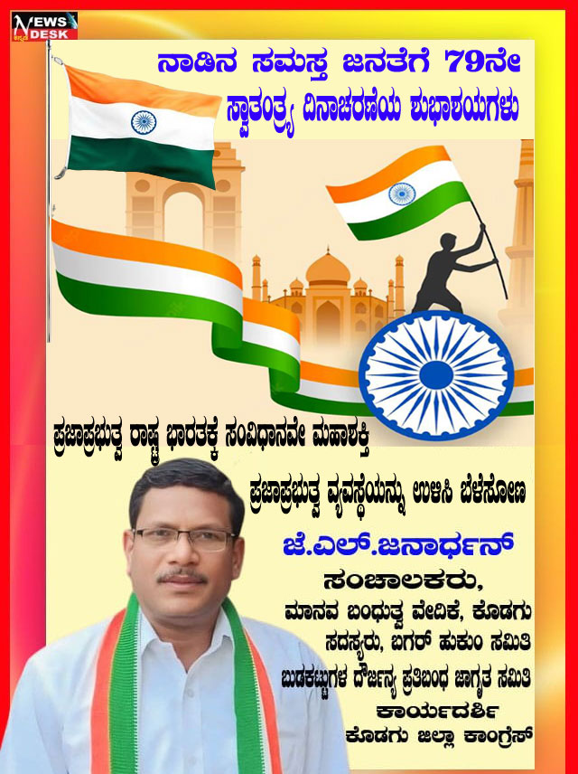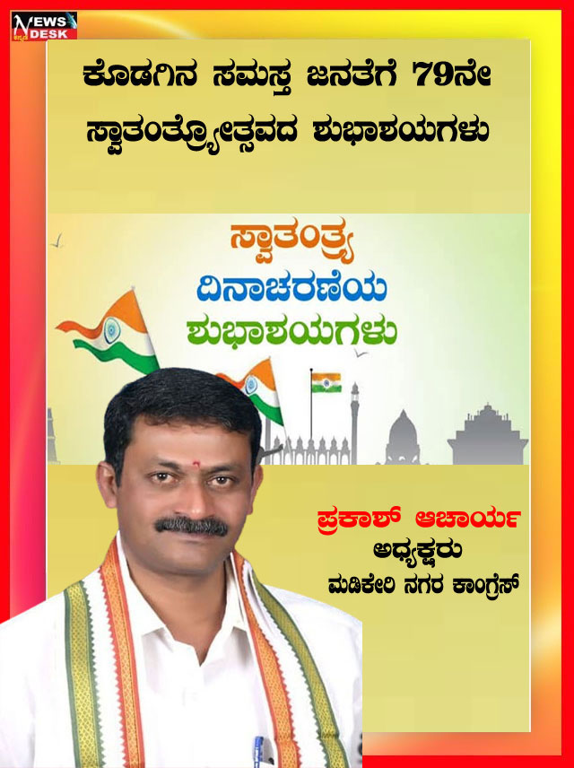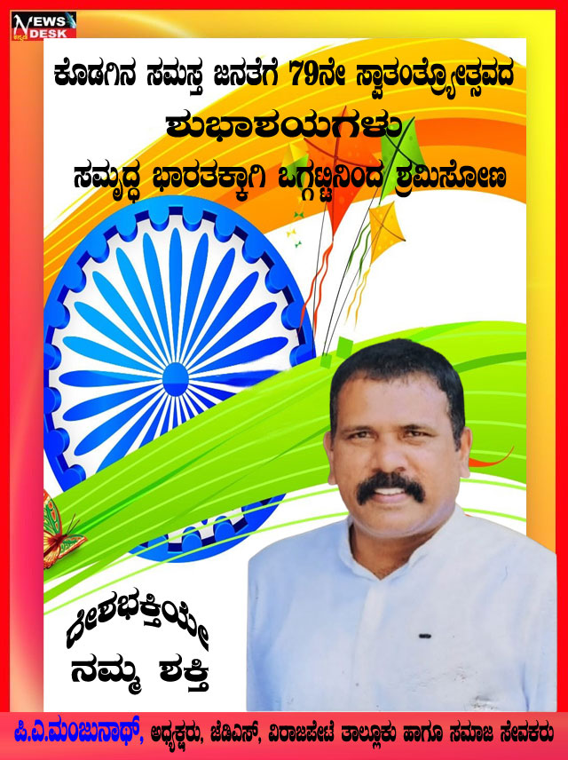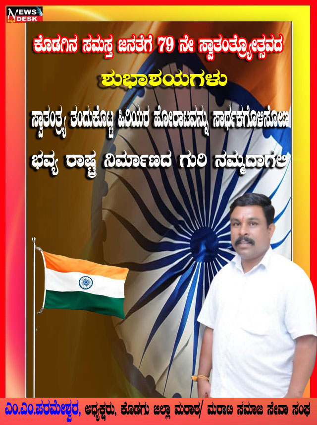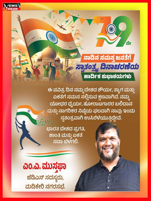 ಮಡಿಕೇರಿ NEWS DESK ಆ.15 : ಮಡಿಕೇರಿ ನಗರದ ಮಲ್ಲಿಕಾರ್ಜುನ ನಗರದಲ್ಲಿ 79ನೇ ಸ್ವಾತಂತ್ರ್ಯೋತ್ಸವವನ್ನು ಸಂಭ್ರಮದಿಂದ ಆಚರಿಸಲಾಯಿತು. ಮಲ್ಲಿಕಾರ್ಜುನ ನಗರದ ಶ್ರೀ ಕೋದಂಡರಾಮ ದೇವಾಲಯದ ಆವರಣದಲ್ಲಿ ನಗರಸಭಾ ಸದಸ್ಯ ಮುಸ್ತಫ ಅವರು ಧ್ವಜಾರೋಹಣ ನೆರವೇರಿಸಿದರು. ನಂತರ ಮಾತನಾಡಿದ ಅವರು ಪ್ರತಿಯೊಬ್ಬರು ದೇಶಭಕ್ತಿಯನ್ನು ಮೈಗೂಡಿಸಿಕೊಳ್ಳಬೇಕು ಎಂದು ಕರೆ ನೀಡಿದರು. ನಂತರ ಸಿಹಿ ಹಂಚಿದರು. ದೇವಾಲಯ ಟ್ರಸ್ಟ್ ನ ಪದಾಧಿಕಾರಿಗಳು, ಶ್ರೀರಾಮ ಸೇವಾ ಸಮಿತಿಯ ಪದಾಧಿಕಾರಿಗಳು, ಜ್ಯೋತಿ ಯುವಕ ಸಂಘದ ಸದಸ್ಯರು ಹಾಗೂ ಸ್ಥಳೀಯ ನಿವಾಸಿಗಳು ಪಾಲ್ಗೊಂಡಿದ್ದರು.