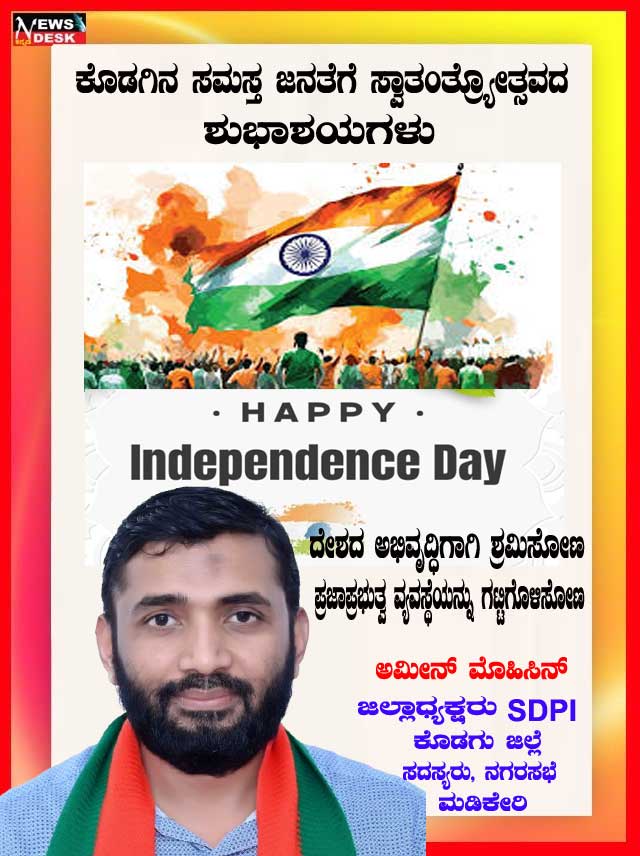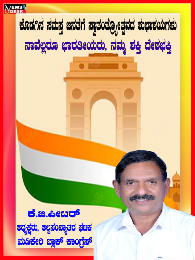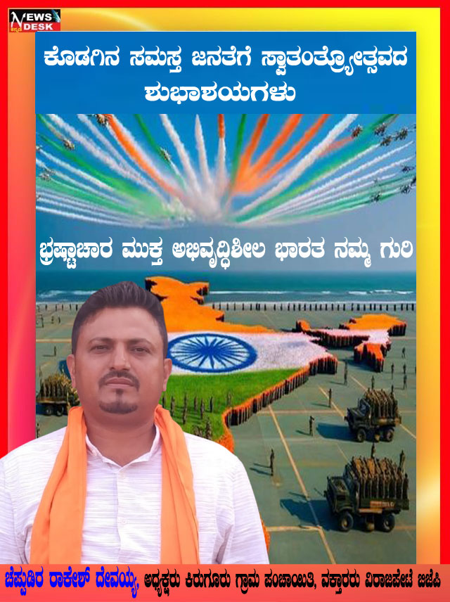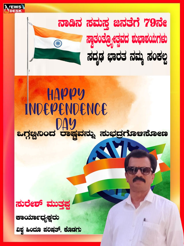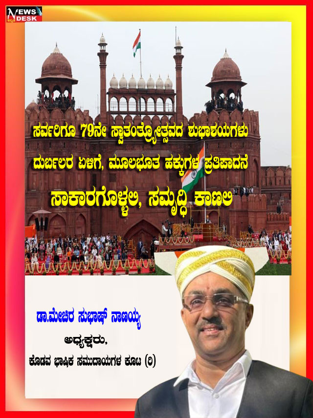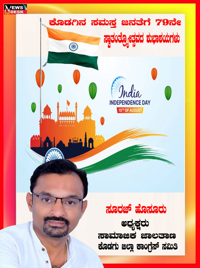 ಮಡಿಕೇರಿ NEWS DESK ಆ.15 : ಮಡಿಕೇರಿ ನಗರದ ಮಲ್ಲಿಕಾರ್ಜುನ ನಗರದಲ್ಲಿ 79ನೇ ಸ್ವಾತಂತ್ರ್ಯೋತ್ಸವವನ್ನು ಸಂಭ್ರಮದಿಂದ ಆಚರಿಸಲಾಯಿತು. ಮಲ್ಲಿಕಾರ್ಜುನ ನಗರದ ಶ್ರೀ ಕೋದಂಡರಾಮ ದೇವಾಲಯದ ಆವರಣದಲ್ಲಿ ನಗರಸಭಾ ಸದಸ್ಯ ಮುಸ್ತಫ ಅವರು ಧ್ವಜಾರೋಹಣ ನೆರವೇರಿಸಿದರು. ನಂತರ ಮಾತನಾಡಿದ ಅವರು ಪ್ರತಿಯೊಬ್ಬರು ದೇಶಭಕ್ತಿಯನ್ನು ಮೈಗೂಡಿಸಿಕೊಳ್ಳಬೇಕು ಎಂದು ಕರೆ ನೀಡಿದರು. ನಂತರ ಸಿಹಿ ಹಂಚಿದರು. ದೇವಾಲಯ ಟ್ರಸ್ಟ್ ನ ಪದಾಧಿಕಾರಿಗಳು, ಶ್ರೀರಾಮ ಸೇವಾ ಸಮಿತಿಯ ಪದಾಧಿಕಾರಿಗಳು, ಜ್ಯೋತಿ ಯುವಕ ಸಂಘದ ಸದಸ್ಯರು ಹಾಗೂ ಸ್ಥಳೀಯ ನಿವಾಸಿಗಳು ಪಾಲ್ಗೊಂಡಿದ್ದರು.