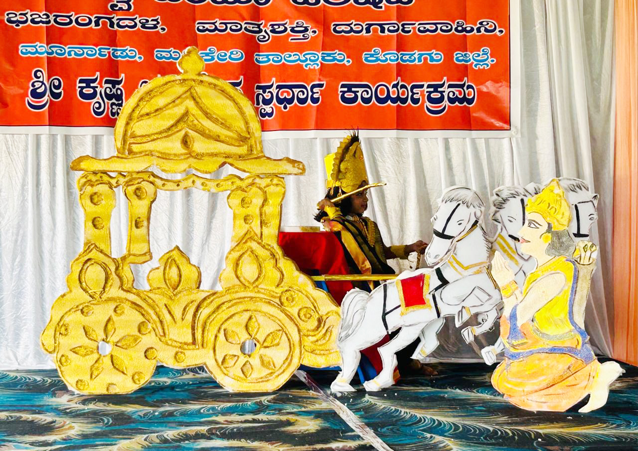 ಮಡಿಕೇರಿ ಆ.18 NEWS DESK : ವಿಶ್ವ ಹಿಂದೂ ಪರಿಷತ್, ಭಜರಂಗದಳ, ಮಾತೃಶಕ್ತಿ ಮತ್ತು ದುರ್ಗಾವಾಹಿನಿ ವತಿಯಿಂದ ಮೂರ್ನಾಡಿನಲ್ಲಿ ಶ್ರೀಕೃಷ್ಣ ಜನ್ಮಾಷ್ಟಮಿಯನ್ನು ಅರ್ಥಪೂರ್ಣವಾಗಿ ಆಚರಿಸಲಾಯಿತು. ಮೈಕೊರೆಯುವ ಚಳಿ, ಮಳೆಯ ನಡುವೆ ನೂರಾರು ಪುಟಾಣಿಗಳು ಬಾಲಕೃಷ್ಣರಾಗಿ ಮಿಂಚಿದರು. ಮೂರ್ನಾಡಿನ ಪ್ರಕೃತಿ ಕಾಂಪ್ಲೆಕ್ಸ್ ಸಭಾಂಗಣದಲ್ಲಿ ನಡೆದ ಶ್ರೀಕೃಷ್ಣ ಛದ್ಮವೇಷ ಸ್ಪರ್ಧೆಯಲ್ಲಿ 3 ತಿಂಗಳಿನಿಂದ 6 ವರ್ಷದವರೆಗಿನ 93 ಮಕ್ಕಳು ಶ್ರೀಕೃಷ್ಣ ವೇಷಧಾರಿಗಳಾಗಿ ಗಮನ ಸೆಳೆದರು. ಕುಶಾಲನಗರ, ಪೊನ್ನಂಪೇಟೆ, ನಾಪೋಕ್ಲು ಮತ್ತಿತರ ಭಾಗಗಳಿಂದ ಹೆಚ್ಚಿನ ಸಂಖ್ಯೆಯ ಪುಟಾಣಿ ಸ್ಪರ್ಧಿಗಳು ಪಾಲ್ಗೊಂಡು ಕಾರ್ಯಕ್ರಮವನ್ನು ಅರ್ಥಪೂರ್ಣಗೊಳಿಸಿದರು. ವಿಶ್ವ ಹಿಂದೂ ಪರಿಷತ್ ನ ಮೂರ್ನಾಡು ಘಟಕದ ಅಧ್ಯಕ್ಷ ಚಾರಿಮಂಡ ಚಂಗಪ್ಪ ಅವರ ಅಧ್ಯಕ್ಷತೆಯಲ್ಲಿ ನಡೆದ ಕಾರ್ಯಕ್ರಮದಲ್ಲಿ ಬಾಲವಾಗ್ಮಿ ಸುಂಟಿಕೊಪ್ಪದ ಶ್ರೀಷ ದಿಕ್ಸೂಚಿ ಭಾಷಣ ಮಾಡಿದರು. ಮಡಿಕೇರಿ ಸಂತ ಜೋಸೆಫರ ಶಾಲೆಯ ಉಪನ್ಯಾಸಕರಾದ ಜಯಲಕ್ಷ್ಮಿ ಕೆ. ಮುಖ್ಯ ಭಾಷಣ ಮಾಡಿದರು. ಮೂರ್ನಾಡು ಪದವಿ ಕಾಲೇಜ್ ನ ಕಲ್ಪನಾ ಸಾಮ್ರಾಟ್ ತೀರ್ಪುಗಾರರಾಗಿ ಕಾರ್ಯನಿರ್ವಹಿಸಿದರು. ಕಾರ್ಯಕ್ರಮದಲ್ಲಿ ವಿಶ್ವ ಹಿಂದೂ ಪರಿಷತ್ ನ ಜಿಲ್ಲಾ ಕಾರ್ಯಾಧ್ಯಕ್ಷ ಸುರೇಶ್ ಮುತ್ತಪ್ಪ, ಕಾರ್ಯದರ್ಶಿ ಪುದಿಯೊಕ್ಕಡ ರಮೇಶ್, ಉಪಾಧ್ಯಕ್ಷ ಪರಮೇಶ್ ಕೂತಿ, ಮಠಮಂದಿರ ಪ್ರಮುಖ್ ಮಹಾಬಲೇಶ್ವರ ಭಟ್, ಧರ್ಮ ಪ್ರಸಾರ ಪ್ರಮುಖ್ ರಮೇಶ್ ಬೊಟ್ಟುಮನೆ, ಪ್ರಸಾರ ಪ್ರಚಾರ ಪ್ರಮುಖ್ ಸೋಮಣ್ಣ, ಸೋಮವಾರಪೇಟೆ ಅಧ್ಯಕ್ಷ ಮಲ್ಲೇಶ್, ಭಜರಂಗದಳದ ಮಡಿಕೇರಿ ತಾಲ್ಲೂಕು ಪ್ರಮುಖ್ ಪ್ರವೀಣ್ ಮೂರ್ನಾಡು, ಮಾತೃಶಕ್ತಿ ಸೇವಾ ಪ್ರಮುಖ್ ಮಮತಾ ಶ್ರೀಹರಿ ಉಪಸ್ಥಿತರಿದ್ದರು. ವಿಶ್ವ ಹಿಂದೂ ಪರಿಷತ್ ತಾಲ್ಲೂಕು ಪ್ರಮುಖ್ ಸಜೀವ ಸ್ವಾಗತಿಸಿ, ಮಾತೃಶಕ್ತಿ ಜಿಲ್ಲಾ ಪ್ರಮುಖ್ ಪೂರ್ಣಿಮಾ ಸುರೇಶ್ ನಿರೂಪಿಸಿದರು, ಭಜರಂಗದಳದ ಮಂಜು ವಂದಿಸಿದರು.