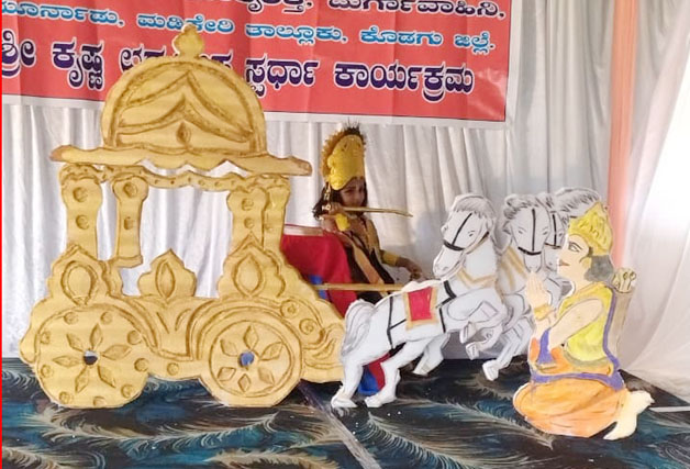 ಮಡಿಕೇರಿ NEWS DESK ಆ.19 : ವಿಶ್ವ ಹಿಂದೂ ಪರಿಷತ್, ಭಜರಂಗದಳ, ಮಾತೃಶಕ್ತಿ ಮತ್ತು ದುರ್ಗಾವಾಹಿನಿ ವತಿಯಿಂದ ಮೂರ್ನಾಡಿನಲ್ಲಿ ಶ್ರೀಕೃಷ್ಣ ಜನ್ಮಾಷ್ಟಮಿ ಪ್ರಯುಕ್ತ ನಡೆದ ಜಿಲ್ಲಾ ಮಟ್ಟದ ಶ್ರೀಕೃಷ್ಣ ಛದ್ಮವೇಷ ಸ್ಪರ್ಧೆಯಲ್ಲಿ ಸ್ಮೃತಿ ಎಸ್.ಭಾರದ್ವಾಜ್ ಪ್ರಥಮ ಬಹುಮಾನ ಗೆದ್ದಿದ್ದಾಳೆ. 5 ರಿಂದ 6 ವರ್ಷದೊಳಗಿನ ಮಕ್ಕಳ ವಿಭಾಗದ ಸ್ಪರ್ಧೆಯಲ್ಲಿ ಅರ್ಜುನನಿಗೆ ಗೀತೋಪದೇಶ ಮಾಡುವ ಶ್ರೀಕೃಷ್ಣನಾಗಿ ಮಿಂಚಿದ ಸ್ಮೃತಿ ನೆರೆದಿದ್ದವರ ಮೆಚ್ಚುಗೆಗೆ ಪಾತ್ರಳಾಗಿ ಪ್ರಥಮ ಬಹುಮಾನ ಪಡೆದಳು. 5 ವರ್ಷದ ಸ್ಮೃತಿ ಪೊನ್ನಂಪೇಟೆ ಸಮೀಪದ ಬೇಗೂರು ಶ್ರೀ ಪೂಳೆಮಾಡು ಈಶ್ವರ ದೇವಸ್ಥಾನದ ಅರ್ಚಕರಾದ ಸುಂದರೇಶ ಭಾರದ್ವಾಜ್ ಹಾಗೂ ಆಶಿಕಾ ದಂಪತಿಯ ಪುತ್ರಿ.