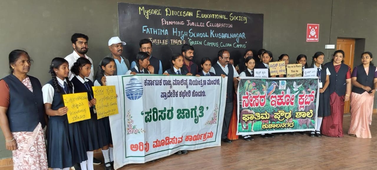 ಜನಜಾಗೃತಿ ಮೂಡಿಸುವಂತೆ ಪ್ರೇಮಕುಮಾರ್ ವಿದ್ಯಾರ್ಥಿಗಳಿಗೆ ತಿಳಿಸಿದರು. ಜೇಡಿಮಣ್ಣಿನಿಂದ ತಯಾರಿಸಿದ ಪರಿಸರ ಸ್ನೇಹಿ ಗಣೇಶ ಮೂರ್ತಿಯನ್ನು ಪ್ರತಿಷ್ಠಾಪಿಸುವ ಮೂಲಕ ಮಾಲಿನ್ಯ ತಡೆಗಟ್ಟಿ ಪರಿಸರ ಸಂರಕ್ಷಣೆಗೆ ಒತ್ತು ನೀಡಬೇಕು. ಫಾತಿಮ ಪ್ರೌಢಶಾಲಾ ಮುಖ್ಯ ಶಿಕ್ಷಕ ಕೆ.ಎ.ಜಾನ್ಸನ್ ಮಾತನಾಡಿ, ವಿದ್ಯಾರ್ಥಿಗಳು ಜನರಲ್ಲಿ ಪರಿಸರ ಜಾಗೃತಿ ಮೂಡಿಸಬೇಕು ಎಂದರು. ಶಾಲೆಯ ಶಿಕ್ಷಕಿ ಅನಿತಾ ಸುಪ್ರಿಯ ಪ್ರಾಸ್ತಾವಿಕವಾಗಿ ಮಾತನಾಡಿದರು. ಮಾಲಿನ್ಯ ನಿಯಂತ್ರಣ ಮಂಡಳಿಯ ಯೋಜನಾ ಸಹಾಯಕ ಆಸ್ಟಿನ್, ಗೈಡ್ಸ್ ಶಿಕ್ಷಕಿ ಬಿ.ಎಂ.ಶಿಫಾನತ್, ಶಾಲಾ ಶಿಕ್ಷಕರು ಮತ್ತು ವಿದ್ಯಾರ್ಥಿಗಳು ಇದ್ದರು.