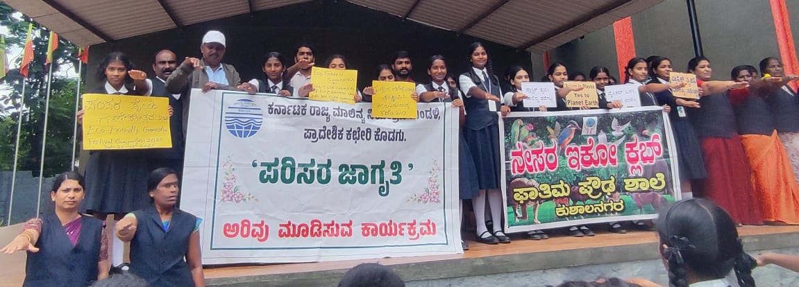 ಕುಶಾಲನಗರ ಆ.26 NEWS DESK : ಕುಶಾಲನಗರ ಫಾತಿಮ ಪ್ರೌಢಶಾಲೆಯಲ್ಲಿ ಕರ್ನಾಟಕ ರಾಜ್ಯ ಮಾಲಿನ್ಯ ನಿಯಂತ್ರಣ ಕೊಡಗು ಪ್ರಾದೇಶಿಕ ಕಛೇರಿ, ಮಡಿಕೇರಿ ವತಿಯಿಂದ ಕರ್ನಾಟಕ ರಾಜ್ಯ ವಿಜ್ಞಾನ ಪರಿಷತ್ತು ಕೊಡಗು ಜಿಲ್ಲಾ ಸಮಿತಿ, ಶಾಲಾ ಶಿಕ್ಷಣ ಇಲಾಖೆ, ಭಾರತ್ ಸ್ಕೌಟ್ಸ್, ಗೈಡ್ಸ್ ಸಂಸ್ಥೆ, ರಾಷ್ಟ್ರೀಯ ಸೇವಾ ಯೋಜನೆ ( ಎನ್.ಎಸ್.ಎಸ್.,) ಶಾಲೆಯ ನೇಸರ ಇಕೋ ಕ್ಲಬ್ ಸಹಯೋಗದೊಂದಿಗೆ ಪರಿಸರ ಸ್ನೇಹಿ ಗಣೇಶೋತ್ಸವ ಜಾಗೃತಿ ಆಂದೋಲನ: 2025 ನಡೆಸಲಾಯಿತು. ಪರಿಸರ ಸ್ನೇಹಿ ಗಣೇಶೋತ್ಸವ ಆಚರಣೆಯ ಮಹತ್ವದ ಕುರಿತು ಮಾಹಿತಿ ನೀಡಿದ ಪರಿಸರ ಜಾಗೃತಿ ಆಂದೋಲನದ ಜಿಲ್ಲಾ ಸಂಚಾಲಕ ಹಾಗೂ ಕೂಡುಮಂಗಳೂರು ಸರ್ಕಾರಿ ಪ್ರೌಢಶಾಲೆಯ ಮುಖ್ಯ ಶಿಕ್ಷಕ ಟಿ.ಜಿ.ಪ್ರೇಮಕುಮಾರ್,