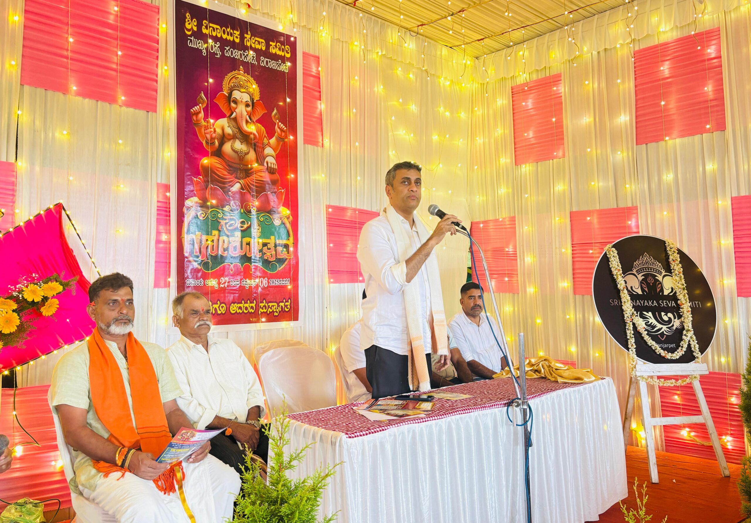 ಮಡಿಕೇರಿ ಆ.28 NEWS DESK : ವಿರಾಜಪೇಟೆ ಪುರಸಭೆ ವ್ಯಾಪ್ತಿಯ ಪಂಜರಪೇಟೆಯಲ್ಲಿ ಶ್ರೀ ವಿನಾಯಕ ಸೇವಾ ಸಮಿತಿ ವತಿಯಿಂದ ಗೌರಿ-ಗಣೇಶೋತ್ಸವವನ್ನು ಶ್ರದ್ಧಾಭಕ್ತಿಯಿಂದ ಆಚರಿಸಲಾಯಿತು. ಕಾರ್ಯಕ್ರಮಕ್ಕೆ ಮುಖ್ಯಮಂತ್ರಿಗಳ ಕಾನೂನು ಸಲಹೆಗಾರರು ಹಾಗೂ ವಿರಾಜಪೇಟೆ ಕ್ಷೇತ್ರದ ಶಾಸಕರಾದ ಎ.ಎಸ್.ಪೊನ್ನಣ್ಣ ಭೇಟಿ ನೀಡಿ ವಿಶೇಷ ಪೂಜೆ, ಪ್ರಾರ್ಥನೆ ಸಲ್ಲಿಸಿದರು. ನಂತರ ಮಾತನಾಡಿದ ಶಾಸಕರು ಪ್ರತಿ ವರ್ಷದಂತೆ ಈ ಸಾಲಿನಲ್ಲಿಯೂ ಅತ್ಯಂತ ವಿಜೃಂಭಣೆಯಿಂದ ಆಚರಿಸಲ್ಪಡುವ ಈ ಹಬ್ಬವು ನಾಡಿನ ಸರ್ವ ಜನತೆಗೆ ಸುಖ, ಶಾಂತಿ ಹಾಗೂ ಸಮೃದ್ಧಿಯನ್ನು ಕರುಣಿಸಲಿ ಎಂದು ಹಾರೈಸಿದರು. ಈ ಸಂದರ್ಭ ಸಮಿತಿಯ ಅಧ್ಯಕ್ಷರು, ಪದಾಧಿಕಾರಿಗಳು ಹಾಗೂ ಪ್ರಮುಖರು ಉಪಸ್ಥಿತರಿದ್ದರು.