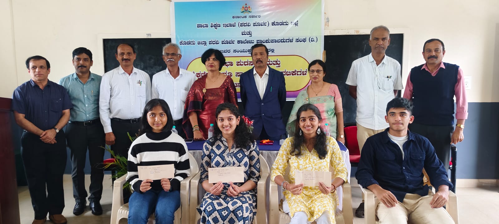 ಅತಿ ಹೆಚ್ಚು ಅಂಕ ಪಡೆದ ವಿದ್ಯಾರ್ಥಿಗಳಾದ ವೈಷ್ಣವಿ ಹಾಗೂ ಚಿತ್ರ ತನ್ನ ಅಭಿಪ್ರಾಯವನ್ನು ತಿಳಿಸಿ ಕಂಬನಿ ಮಿಡಿದರು. ಶೇ.100 ಫಲಿತಾಂಶವನ್ನು ಪಡೆದಿರುವ ಕೊಡಗು ಜಿಲ್ಲೆಯ ಪದವಿ ಪೂರ್ವ ಕಾಲೇಜುಗಳಾದ ಪದವಿ ಪೂರ್ವ ಕಾಲೇಜು ಗೋಣಿಕೊಪ್ಪಲು, ಸಂತ ಅಂತೋಣಿ ಪದವಿ ಪೂರ್ವ ಕಾಲೇಜು ಪೊನ್ನಂಪೇಟೆ, ಕೂರ್ಗ್ ಇನ್ಸಿಟ್ಯೂಟ್ ಆಫ್ ಪದವಿ ಪೂರ್ವ ಕಾಲೇಜು ಹಳ್ಳಿಗಟ್ಟು, ಐಶ್ವರ್ಯ ಸಂಯುಕ್ತ ಪದವಿ ಪೂರ್ವ ಕಾಲೇಜು, ಕುಶಾಲನಗರ, ಎಪಿಜೆ ಅಬ್ದುಲ್ ಕಲಾಂ ವಸತಿ ಶಾಲೆ ಕೊಡ್ಲಿಪೇಟೆ, ಲಯನ್ಸ್ ಪದವಿ ಪೂರ್ವ ಕಾಲೇಜು ಗೋಣಿಕೊಪ್ಪಲು, ಅಟಲ್ ಬಿಹಾರಿ ವಾಜಪೇಯಿ ವಸತಿ ಪದವಿ ಪೂರ್ವ ಕಾಲೇಜು ಭಾಗಮಂಡಲ ಕಾಲೇಜುಗಳ ಪ್ರಾಂಶುಪಾಲರಿಗೆ ಸ್ಮರಣಿಕೆ ವಿತರಿಸಲಾಯಿತು. ಸರ್ಕಾರಿ ಪದವಿ ಪೂರ್ವ ಕಾಲೇಜು ಪ್ರಾಂಶುಪಾಲರಾದ ಪಿ.ಆರ್.ವಿಜಯನ್, ಸರ್ಕಾರಿ ಪದವಿ ಪೂರ್ವ ಕಾಲೇಜುಗಳ ಪ್ರಾಂಶುಪಾಲ ಸಂಘದ ಖಜಾಂಚಿ ಅಂತೋನಿ ವಿಜಯನ್ ಅಲ್ವಾರೀಸ್, ಪ್ರಾಂಶುಪಾಲರ ಸಂಘದ ಕಾರ್ಯದರ್ಶಿ ಎನ್.ಕೆ ಜ್ಯೋತಿ, ಪ್ರಾಂಶುಪಾಲ ಸಂಘದ ಅಧ್ಯಕ್ಷರಾದ ಪಿ.ಎಂ.ದೇವಕಿ, ಶಾಲಾ ಶಿಕ್ಷಣ ಇಲಾಖೆಯ ಉಪನಿರ್ದೇಶಕರಾದ ಚಿದಾನಂದ ಕುಮಾರ್ ಎಂಎಲ್ ಮತ್ತಿತರರು ಇದ್ದರು. ದಿವ್ಯ ಮತ್ತು ತಂಡದವರು ಪ್ರಾರ್ಥಿಸಿದರು. ಪ್ರಾಧ್ಯಾಪಕ ದಿವಾಕರ್ ಅವರು ನಿರೂಪಿಸಿದರು. ಪ್ರಾಂಶುಪಾಲರ ಸಂಘದ ಅಧ್ಯಕ್ಷರಾದ ಪಿ.ಎಂ.ದೇವಕಿ ಸ್ವಾಗತಿಸಿ, ಕಾರ್ಯದರ್ಶಿ ಎನ್.ಕೆ.ಜ್ಯೋತಿ ವಂದಿಸಿದರು.