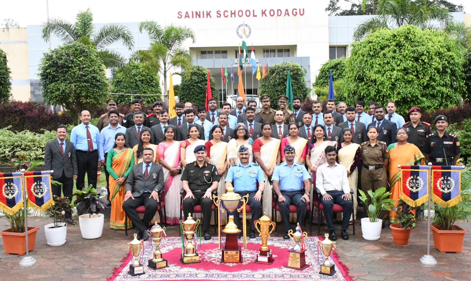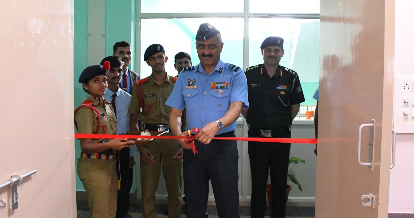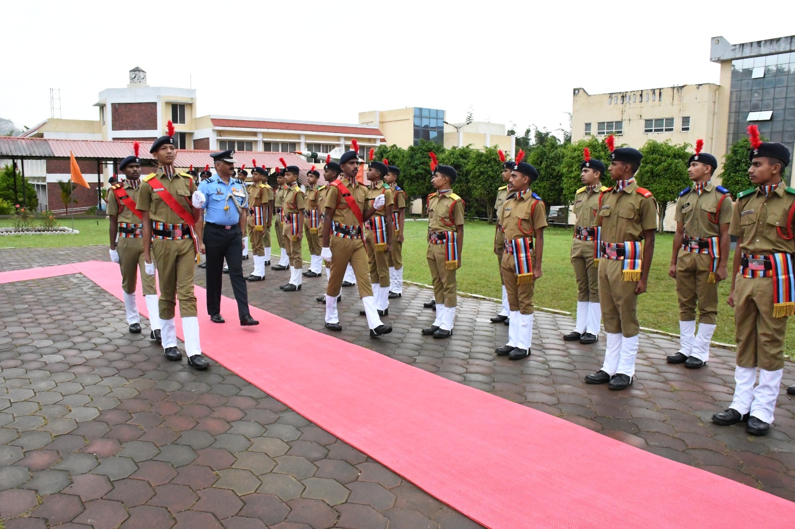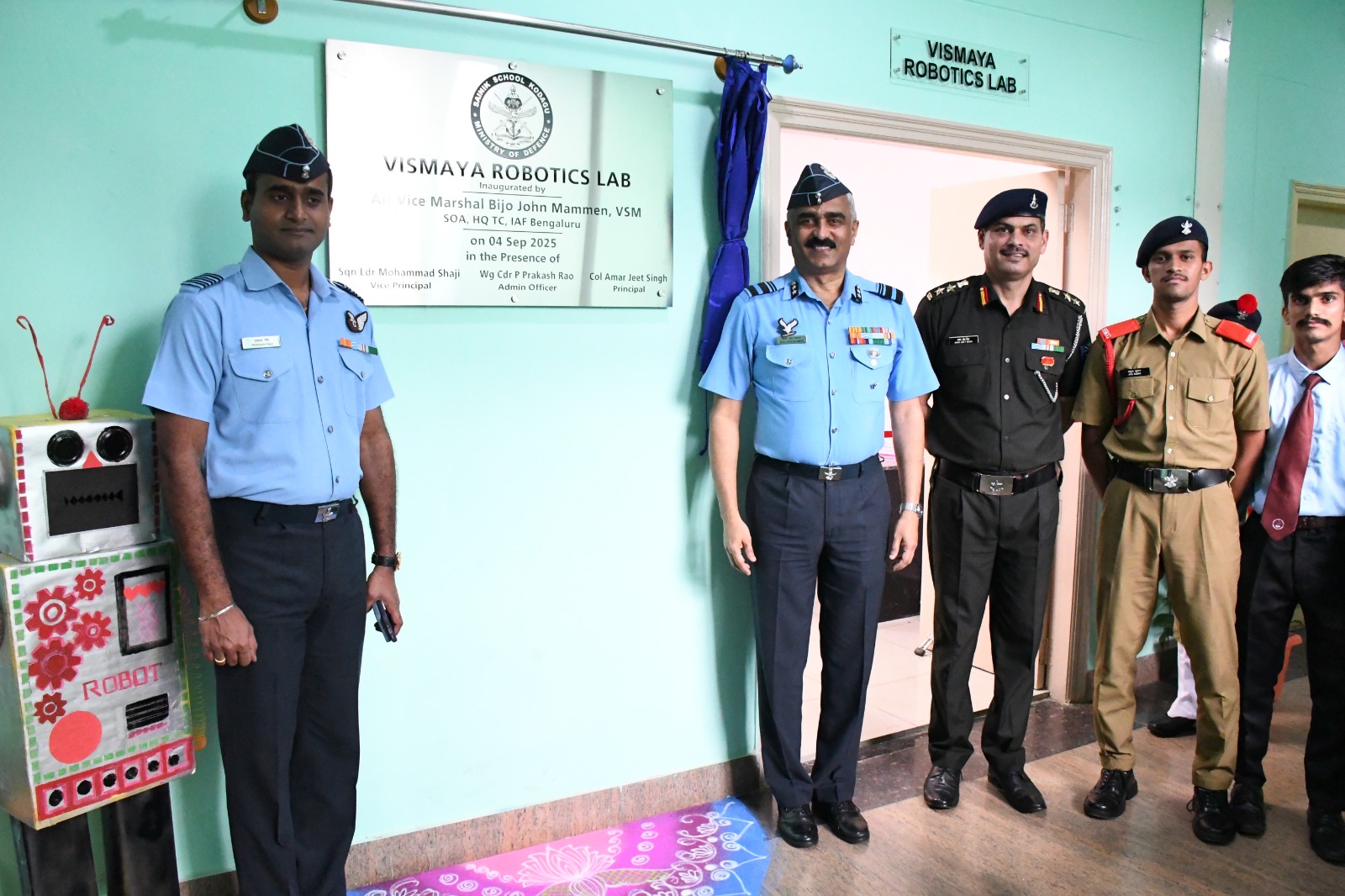 ಸಭೆಗೂ ಮುನ್ನ ಏರ್ ವೈಸ್ ಮಾರ್ಷಲ್ ಬಿಜೊ ಜಾನ್ ಮೆಮನ್ ಶಾಲೆಯ ಯುದ್ಧ ಸ್ಮಾರಕಕ್ಕೆ ಪುಷ್ಪ ನಮನ ಸಲ್ಲಿಸಿದರು. ನಂತರ ಯುದ್ಧವೀರರ ಸ್ಮಾರಕದ ಆವರಣದಲ್ಲಿ ನೂತನವಾಗಿ ನಿರ್ಮಿಸಲ್ಪಟ್ಟ ಧ್ವಜ ಸ್ತಂಭವನ್ನು ಉದ್ಘಾಟಿಸಿದರು. ಶಾಲೆಯ ಪರೇಡ್ ಮೈದಾನದಲ್ಲಿ ವಿದ್ಯಾರ್ಥಿಗಳು ನೀಡಿದ ಗಾರ್ಡ್ ಆಫ್ ಹಾನರ್ ನ ಗೌರವ ವಂದನೆ ಸ್ವೀಕರಿಸಿದರು. ವಿಶೇಷ ಸಭೆಯ ನಂತರ ಆಸಕ್ತ ಎನ್ ಡಿ ಎ ವಿದ್ಯಾರ್ಥಿಗಳಿಗೆ ಸಂಪನ್ಮೂಲ ಕೇಂದ್ರವಾಗಿ ಕುವೆಂಪು ವಿವಿದೊದ್ಧೇಶ ಸಭಾಂಗಣದಲ್ಲಿ ನೂತನವಾಗಿ ನಿರ್ಮಿಸಲ್ಪಟ್ಟಿರುವ “ಶಿಖರ್” ಎಂಬ ಹೆಸರಿನ ಹೊಸ ತರಗತಿ ಕೊಠಡಿಯನ್ನು ಹಾಗೂ ಆಡಳಿತ ಮಂಡಳಿಯ ಕಟ್ಟಡದಲ್ಲಿ ನೂತನವಾಗಿ ನಿರ್ಮಿಸಲ್ಪಟ್ಟ ರೋಬೋಟಿಕ್ ಪ್ರಯೋಗಾಲಯವನ್ನು ಉದ್ಘಾಟಿಸಿದರು. ಈ ಸಂದರ್ಭದಲ್ಲಿ ರೇರ್ ಆಡ್ಮಿರಲ್ ಆರ್.ಎಂ.ಪುರಂದರೆ ವಿ ಎಸ್ ಎಂ (ನಿವೃತ್ತ), ಎಲಿಜಾ ಮೆಮನ್ ಹಾಗೂ ದಿವ್ಯಾಸಿಂಗ್ ಹಾಜರಿದ್ದರು. :: ಸಂವಾದ :: ಮಧ್ಯಾಹ್ನದ ಅವಧಿಯಲ್ಲಿ ಮುಖ್ಯ ಅಥಿತಿಗಳು 12ನೇ ತರಗತಿಯ ವಿದ್ಯಾರ್ಥಿಗಳೊಂದಿಗೆ ಸಂವಾದ ನಡೆಸಿ, ತಮಟೆ ಕಲಾ ಪ್ರದರ್ಶನ, ಲೇಝಿಂ ನೃತ್ಯ ಕೌಶಲ್ಯ ಹಾಗೂ ಕೇರಳದ ಪ್ರಸಿದ್ಧ ಯುದ್ಧ ಕಲೆ ಕಳರಿಪಾಯಟ್ಟು ಪ್ರದರ್ಶನಗಳನ್ನು ವೀಕ್ಷಿಸಿದರು. ಈ ಸಂದರ್ಭ ಮುಖ್ಯ ಅತಿಥಿಗಳು ವಿದ್ಯಾರ್ಥಿಗಳ ಶಿಸ್ತು, ಸಂಸ್ಕೃತಿಯ ಕುರಿತಾದ ಹಮ್ಮೆ ಹಾಗೂ ನವೀನತೆಯನ್ನು ಮೆಚ್ಚಿ, ಎಲ್ಲ ಕ್ಷೇತ್ರಗಳಲ್ಲಿಯೂ ಶ್ರೇಷ್ಠತೆಯನ್ನು ಸಾಧಿಸಲು ಅವರನ್ನು ಪ್ರೋತ್ಸಾಹಿಸಿದರು.