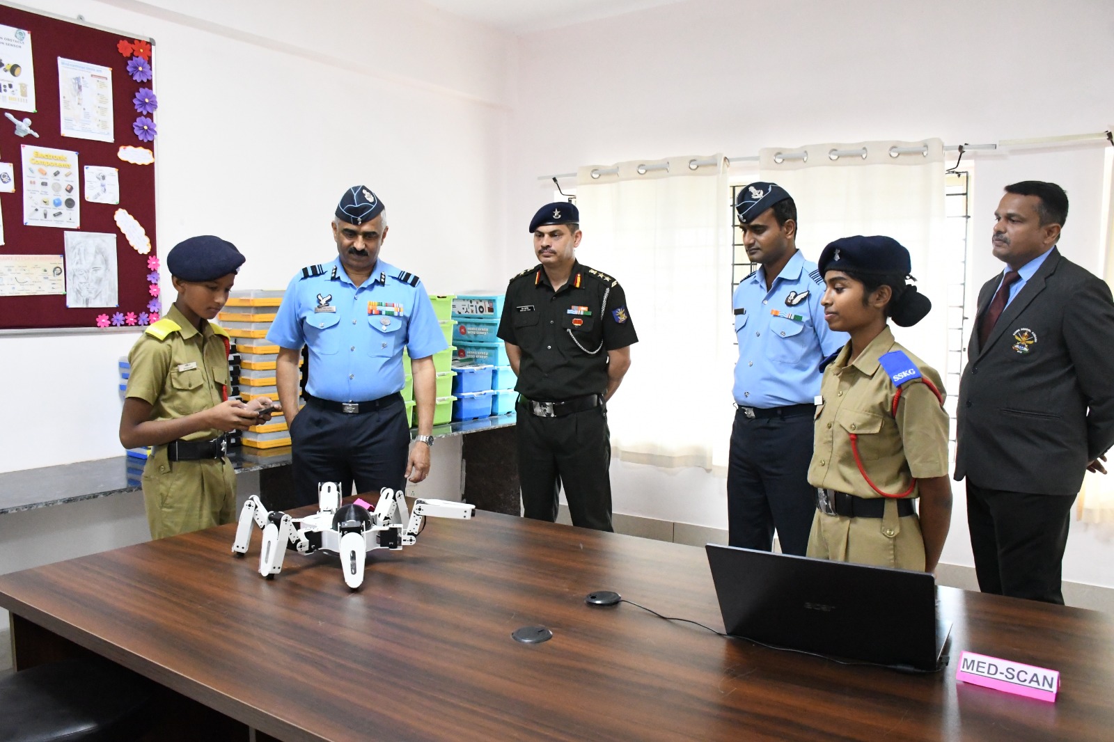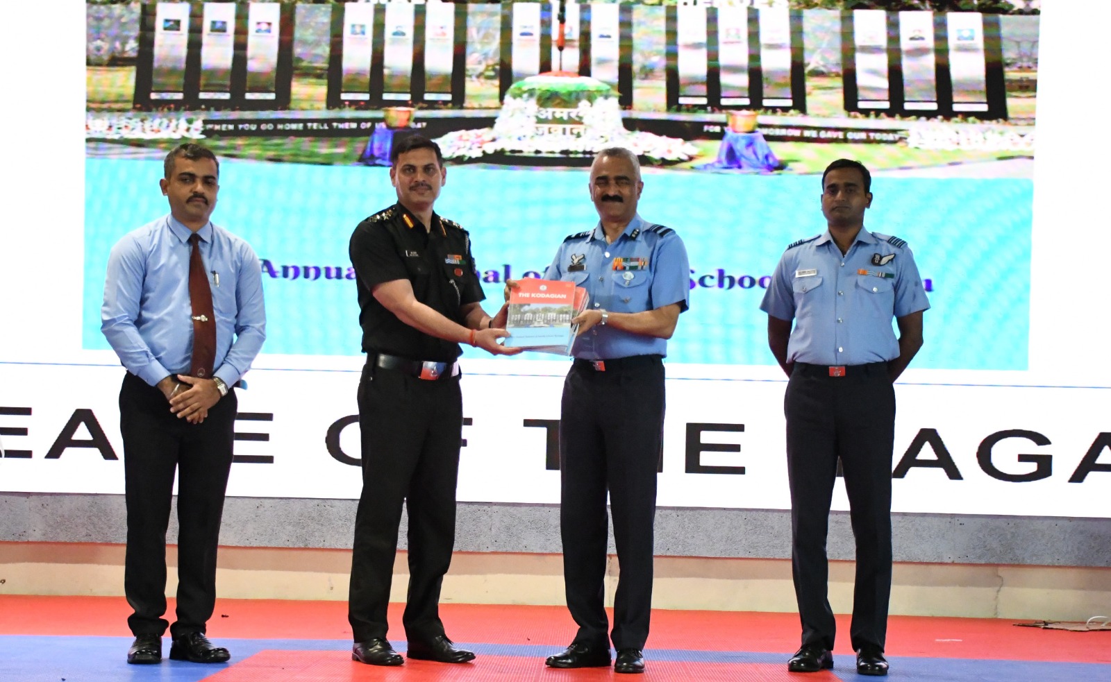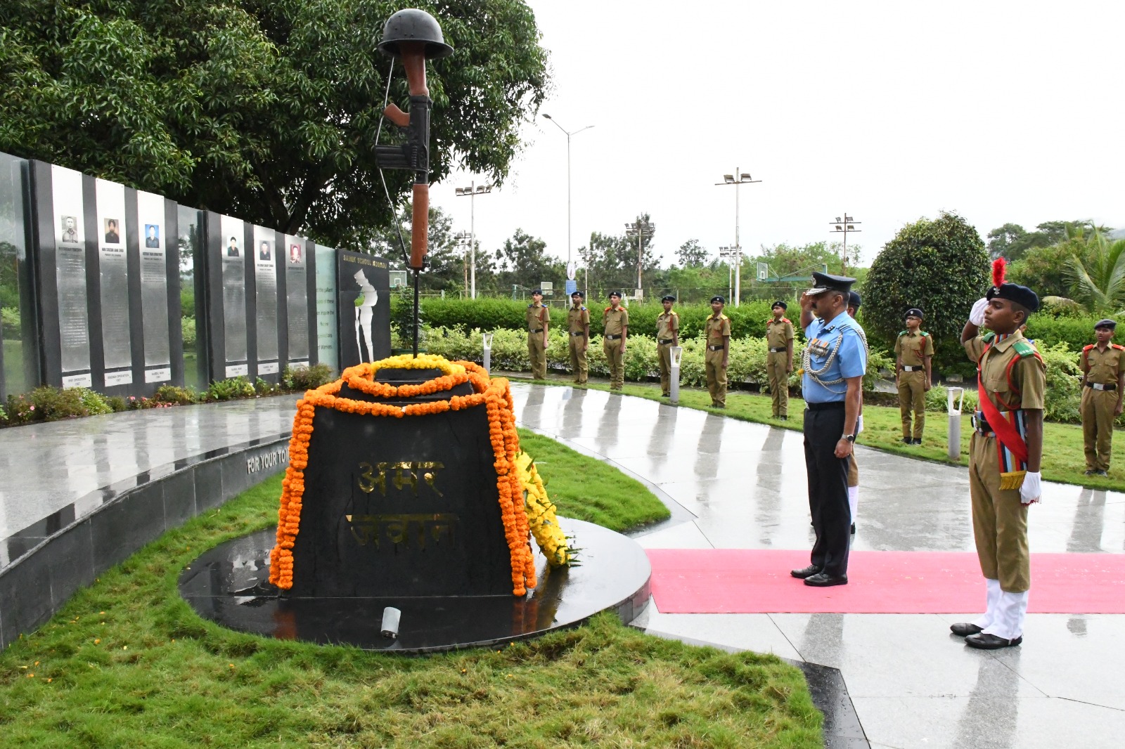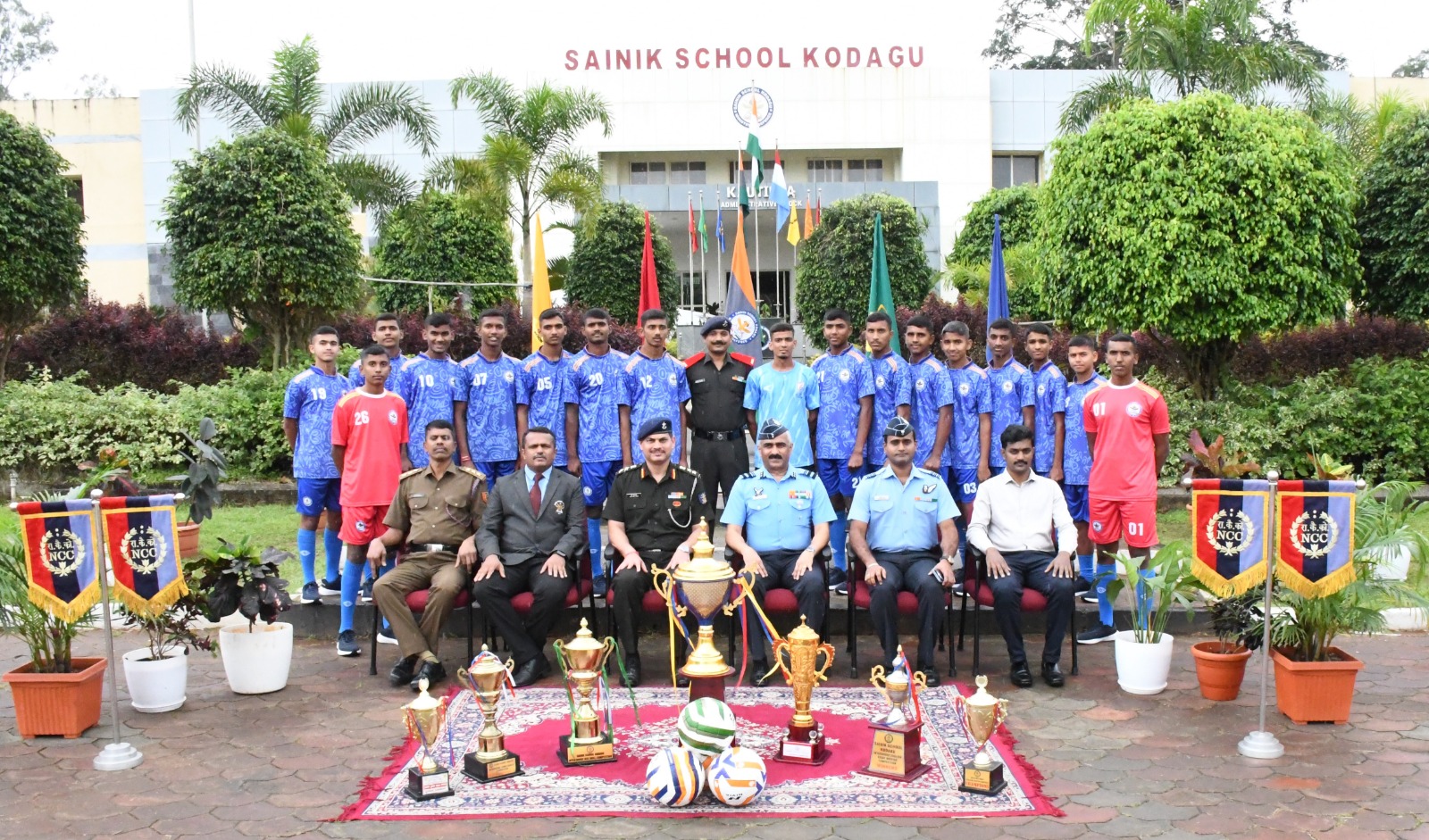 ಸಭೆಗೂ ಮುನ್ನ ಏರ್ ವೈಸ್ ಮಾರ್ಷಲ್ ಬಿಜೊ ಜಾನ್ ಮೆಮನ್ ಶಾಲೆಯ ಯುದ್ಧ ಸ್ಮಾರಕಕ್ಕೆ ಪುಷ್ಪ ನಮನ ಸಲ್ಲಿಸಿದರು. ನಂತರ ಯುದ್ಧವೀರರ ಸ್ಮಾರಕದ ಆವರಣದಲ್ಲಿ ನೂತನವಾಗಿ ನಿರ್ಮಿಸಲ್ಪಟ್ಟ ಧ್ವಜ ಸ್ತಂಭವನ್ನು ಉದ್ಘಾಟಿಸಿದರು. ಶಾಲೆಯ ಪರೇಡ್ ಮೈದಾನದಲ್ಲಿ ವಿದ್ಯಾರ್ಥಿಗಳು ನೀಡಿದ ಗಾರ್ಡ್ ಆಫ್ ಹಾನರ್ ನ ಗೌರವ ವಂದನೆ ಸ್ವೀಕರಿಸಿದರು. ವಿಶೇಷ ಸಭೆಯ ನಂತರ ಆಸಕ್ತ ಎನ್ ಡಿ ಎ ವಿದ್ಯಾರ್ಥಿಗಳಿಗೆ ಸಂಪನ್ಮೂಲ ಕೇಂದ್ರವಾಗಿ ಕುವೆಂಪು ವಿವಿದೊದ್ಧೇಶ ಸಭಾಂಗಣದಲ್ಲಿ ನೂತನವಾಗಿ ನಿರ್ಮಿಸಲ್ಪಟ್ಟಿರುವ “ಶಿಖರ್” ಎಂಬ ಹೆಸರಿನ ಹೊಸ ತರಗತಿ ಕೊಠಡಿಯನ್ನು ಹಾಗೂ ಆಡಳಿತ ಮಂಡಳಿಯ ಕಟ್ಟಡದಲ್ಲಿ ನೂತನವಾಗಿ ನಿರ್ಮಿಸಲ್ಪಟ್ಟ ರೋಬೋಟಿಕ್ ಪ್ರಯೋಗಾಲಯವನ್ನು ಉದ್ಘಾಟಿಸಿದರು. ಈ ಸಂದರ್ಭದಲ್ಲಿ ರೇರ್ ಆಡ್ಮಿರಲ್ ಆರ್.ಎಂ.ಪುರಂದರೆ ವಿ ಎಸ್ ಎಂ (ನಿವೃತ್ತ), ಎಲಿಜಾ ಮೆಮನ್ ಹಾಗೂ ದಿವ್ಯಾಸಿಂಗ್ ಹಾಜರಿದ್ದರು. :: ಸಂವಾದ :: ಮಧ್ಯಾಹ್ನದ ಅವಧಿಯಲ್ಲಿ ಮುಖ್ಯ ಅಥಿತಿಗಳು 12ನೇ ತರಗತಿಯ ವಿದ್ಯಾರ್ಥಿಗಳೊಂದಿಗೆ ಸಂವಾದ ನಡೆಸಿ, ತಮಟೆ ಕಲಾ ಪ್ರದರ್ಶನ, ಲೇಝಿಂ ನೃತ್ಯ ಕೌಶಲ್ಯ ಹಾಗೂ ಕೇರಳದ ಪ್ರಸಿದ್ಧ ಯುದ್ಧ ಕಲೆ ಕಳರಿಪಾಯಟ್ಟು ಪ್ರದರ್ಶನಗಳನ್ನು ವೀಕ್ಷಿಸಿದರು. ಈ ಸಂದರ್ಭ ಮುಖ್ಯ ಅತಿಥಿಗಳು ವಿದ್ಯಾರ್ಥಿಗಳ ಶಿಸ್ತು, ಸಂಸ್ಕೃತಿಯ ಕುರಿತಾದ ಹಮ್ಮೆ ಹಾಗೂ ನವೀನತೆಯನ್ನು ಮೆಚ್ಚಿ, ಎಲ್ಲ ಕ್ಷೇತ್ರಗಳಲ್ಲಿಯೂ ಶ್ರೇಷ್ಠತೆಯನ್ನು ಸಾಧಿಸಲು ಅವರನ್ನು ಪ್ರೋತ್ಸಾಹಿಸಿದರು.