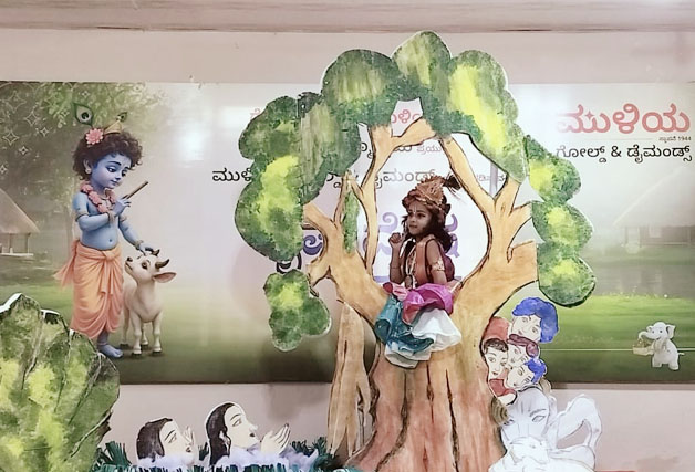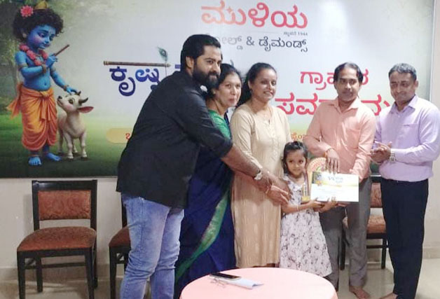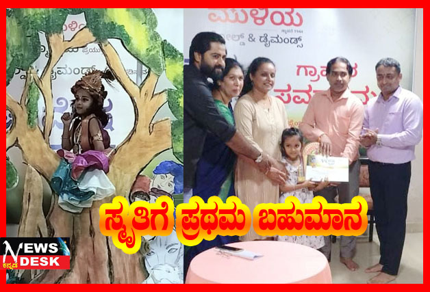 ಮಡಿಕೇರಿ NEWS DESK ಸೆ.5 : ಶ್ರೀಕೃಷ್ಣ ಜನ್ಮಾಷ್ಟಮಿ ಪ್ರಯುಕ್ತ ಮುಳಿಯ ಗೋಲ್ಡ್ ಮತ್ತು ಡೈಮಂಡ್ಸ್ ವತಿಯಿಂದ ಗೋಣಿಕೊಪ್ಪಲುವಿನಲ್ಲಿ ನಡೆದ ಶ್ರೀಕೃಷ್ಣ ಛದ್ಮವೇಷ ಸ್ಪರ್ಧೆಯಲ್ಲಿ ಸ್ಮೃತಿ ಎಸ್. ಭಾರದ್ವಾಜ್ ಪ್ರಥಮ ಬಹುಮಾನ ಗೆದ್ದಿದ್ದಾಳೆ. 4 ರಿಂದ 7 ವರ್ಷದೊಳಗಿನ ಮಕ್ಕಳ ವಿಭಾಗದ ಸ್ಪರ್ಧೆಯಲ್ಲಿ ಶ್ರೀಕೃಷ್ಣನ ಬಾಲಲೀಲೆಯ ಕೃಷ್ಣನಾಗಿ ಮಿಂಚಿದ ಸ್ಮೃತಿ ನೆರೆದಿದ್ದವರ ಮೆಚ್ಚುಗೆಗೆ ಪಾತ್ರಳಾಗಿ ಪ್ರಥಮ ಬಹುಮಾನ ಪಡೆದಳು. 5 ವರ್ಷದ ಸ್ಮೃತಿ ಪೊನ್ನಂಪೇಟೆ ಸಮೀಪದ ಬೇಗೂರು ಶ್ರೀ ಪೂಳೆಮಾಡು ಈಶ್ವರ ದೇವಸ್ಥಾನದ ಅರ್ಚಕರಾದ ಸುಂದರೇಶ ಭಾರದ್ವಾಜ್ ಹಾಗೂ ಆಶಿಕಾ ದಂಪತಿಯ ಪುತ್ರಿ.
